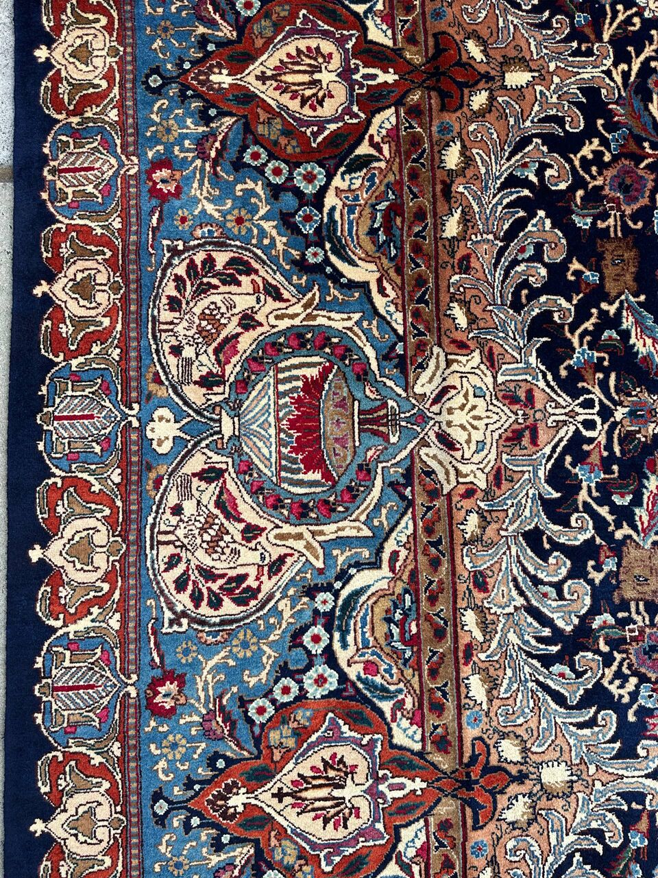 Elevate your space with this Large Room Size Authentic Handmade Treasure Design Persian Kashmar Rug, exclusively from RugMaster, your trusted handmade Persian Rugs and Runners specialist in Sydney and beyond.