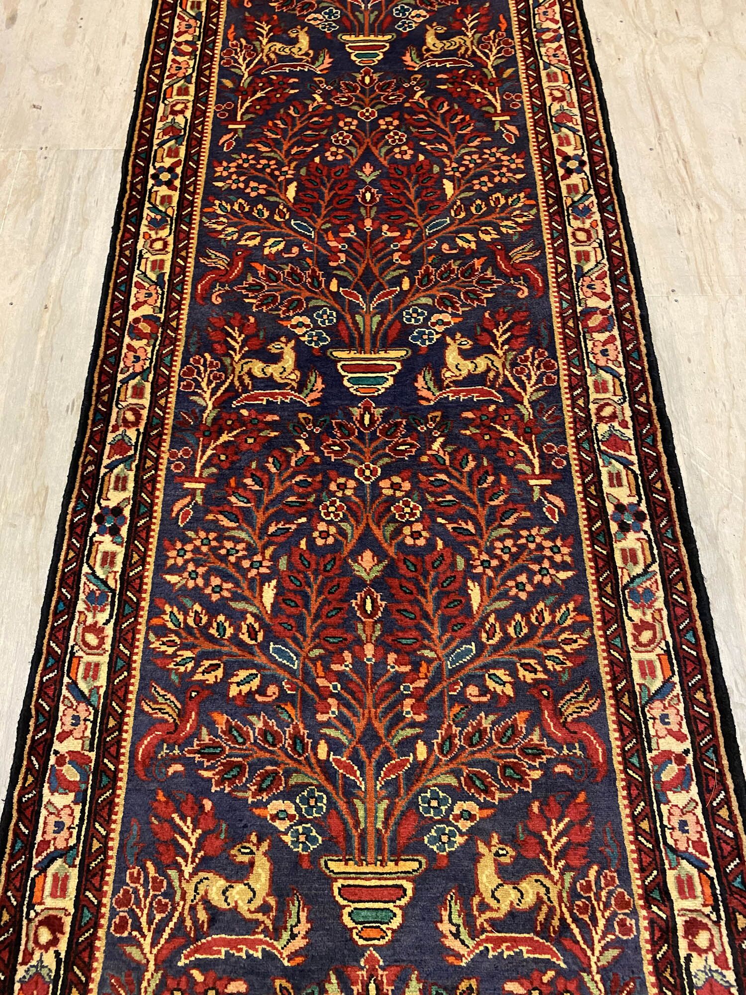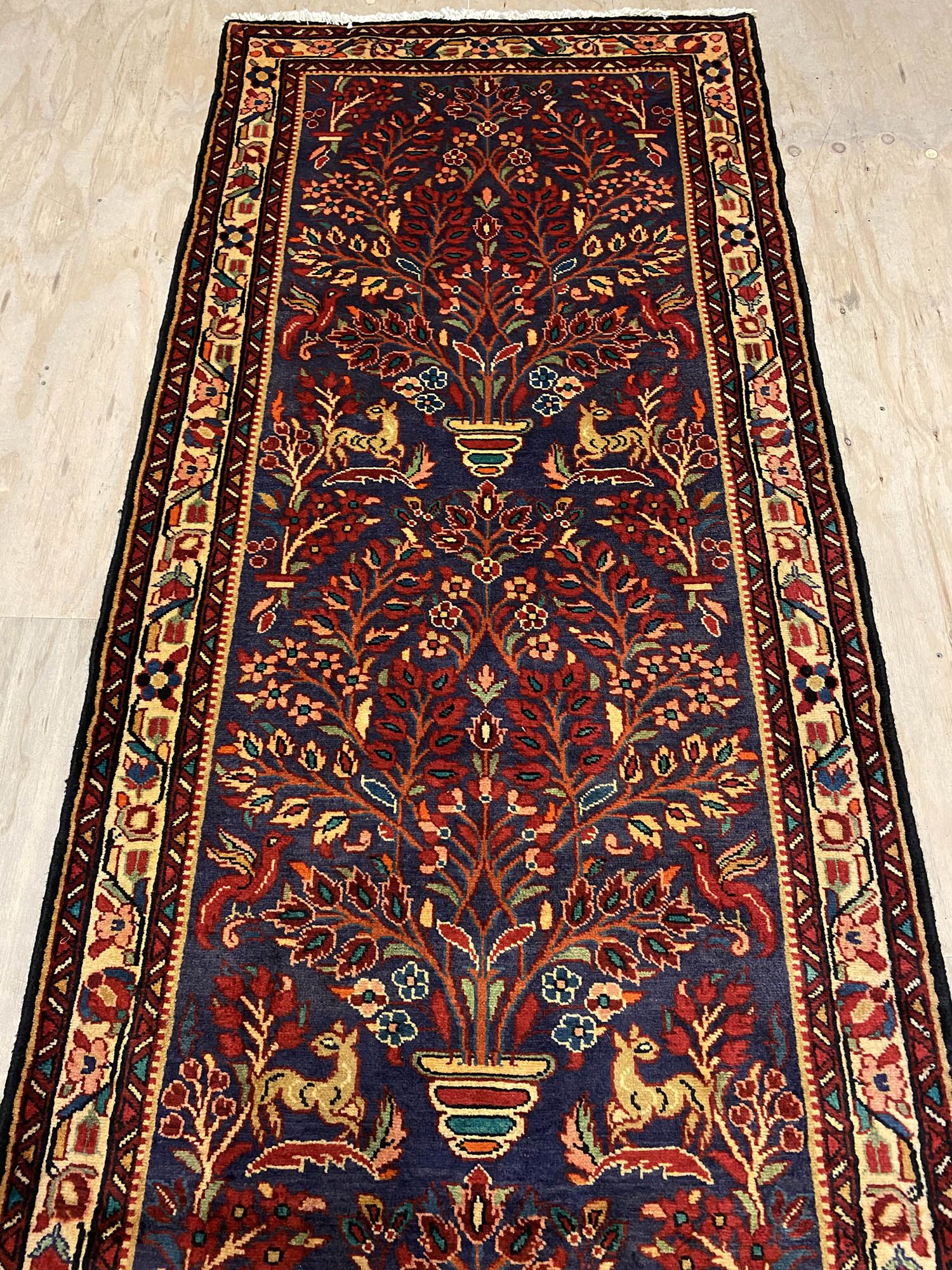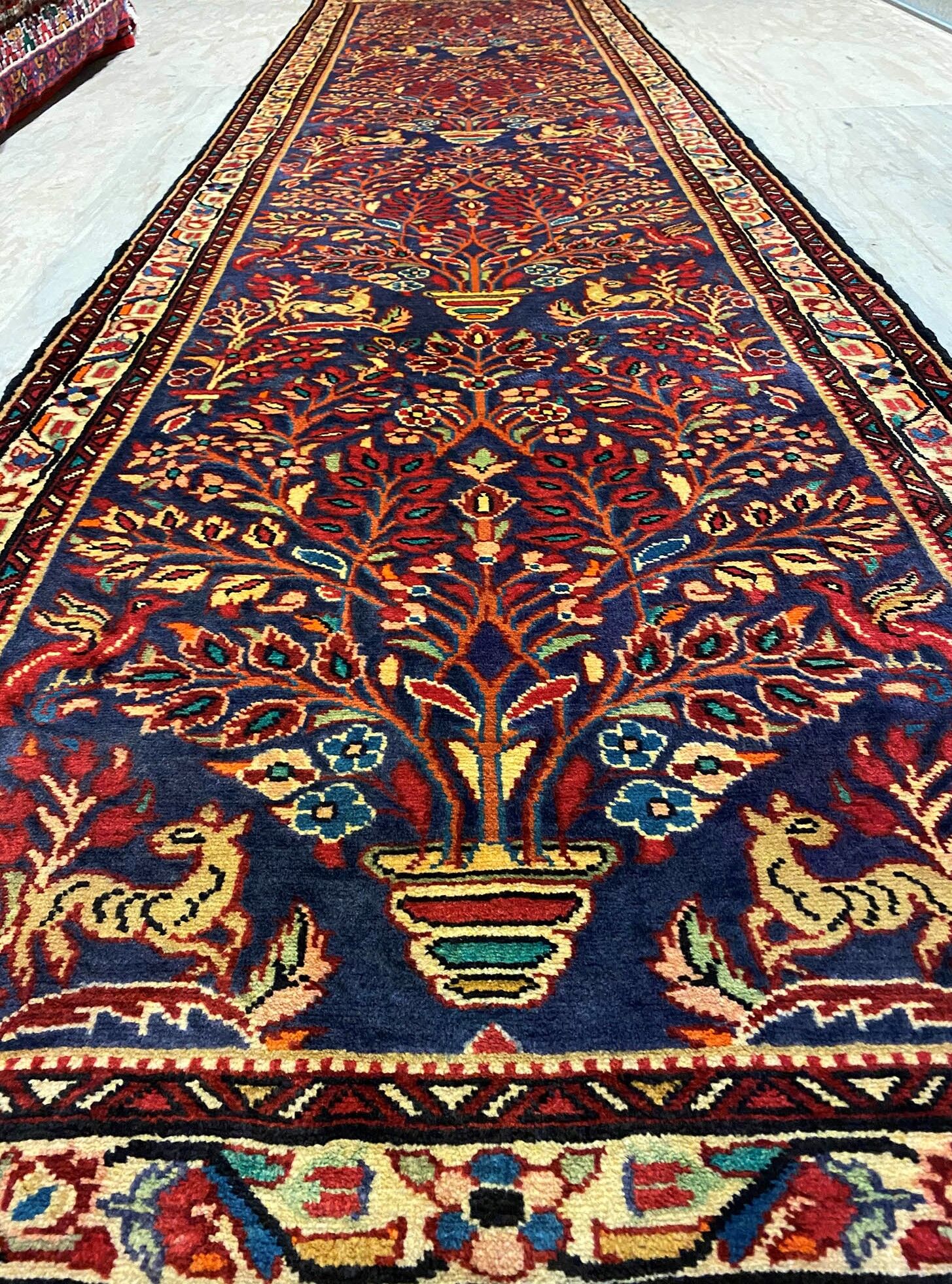 – Origin: Elevate your hallway with the enduring charm of this rare 3.8m handmade village Persian Hamedan runner, featuring a beautiful floral design.