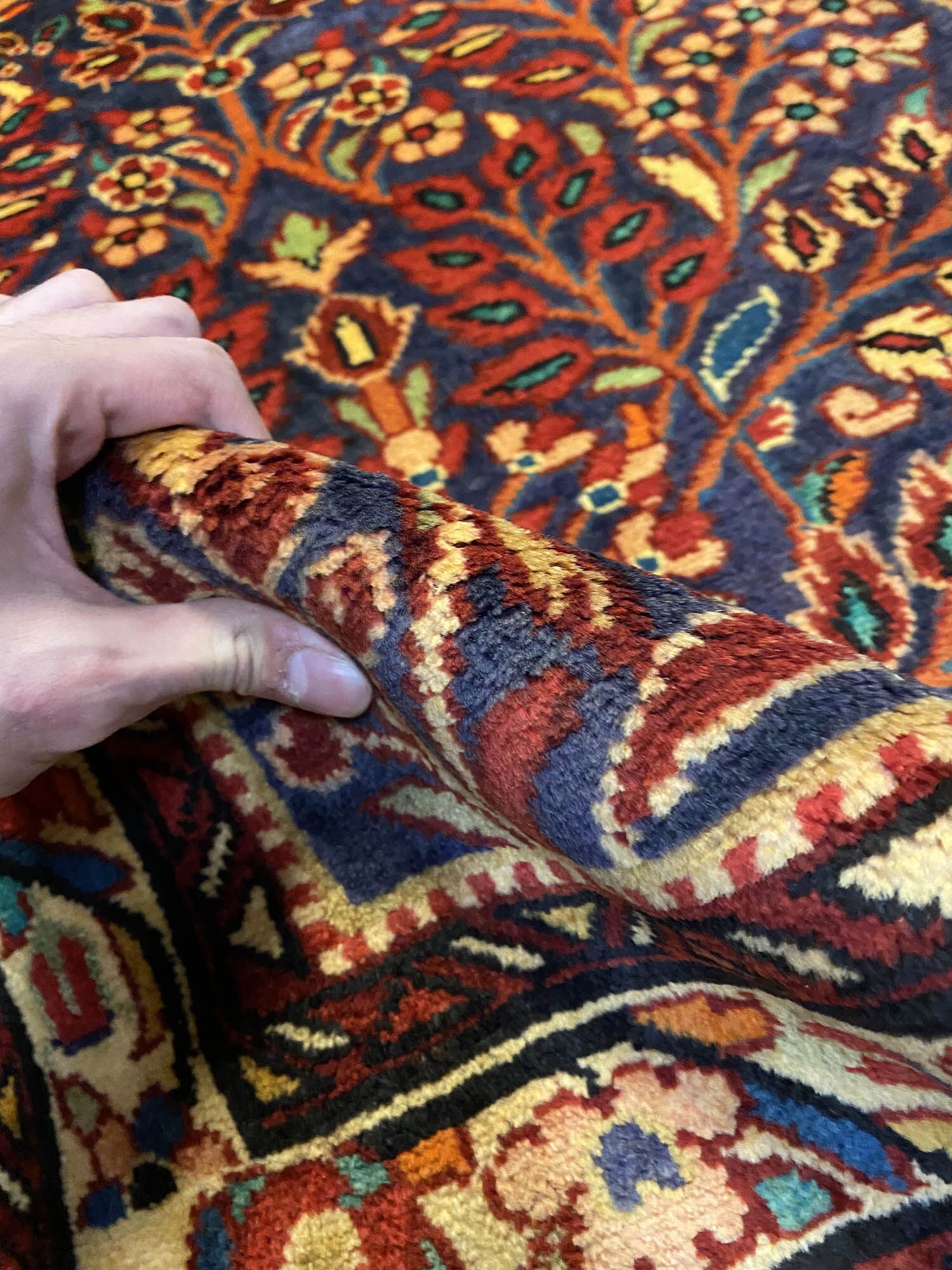 – Material: Crafted with pure hand-spun wool pile on a cotton base, ensuring durability and quality.