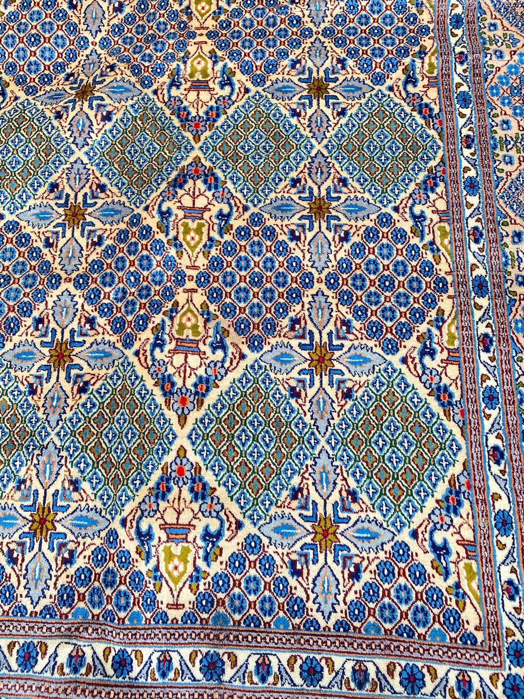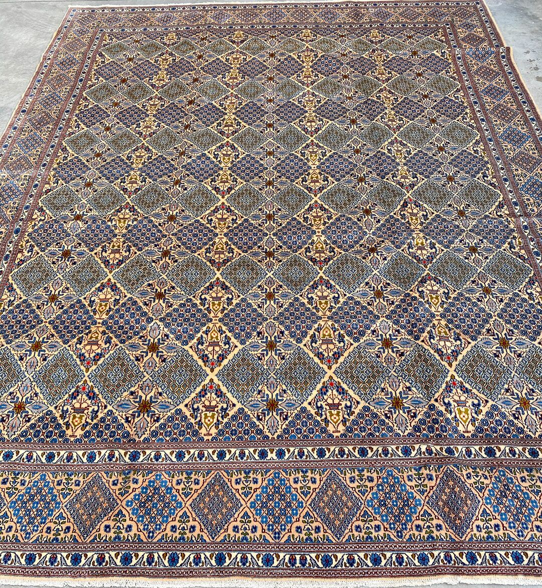 – Origin: Experience the luxury of this full room-size fine hand-knotted Persian Birjand rug, meticulously crafted in the city of Birjand in East Persia.