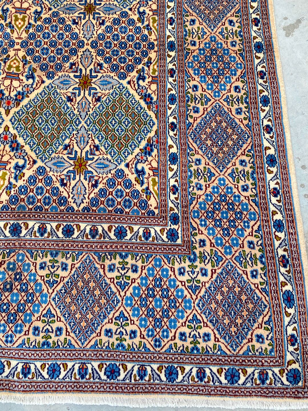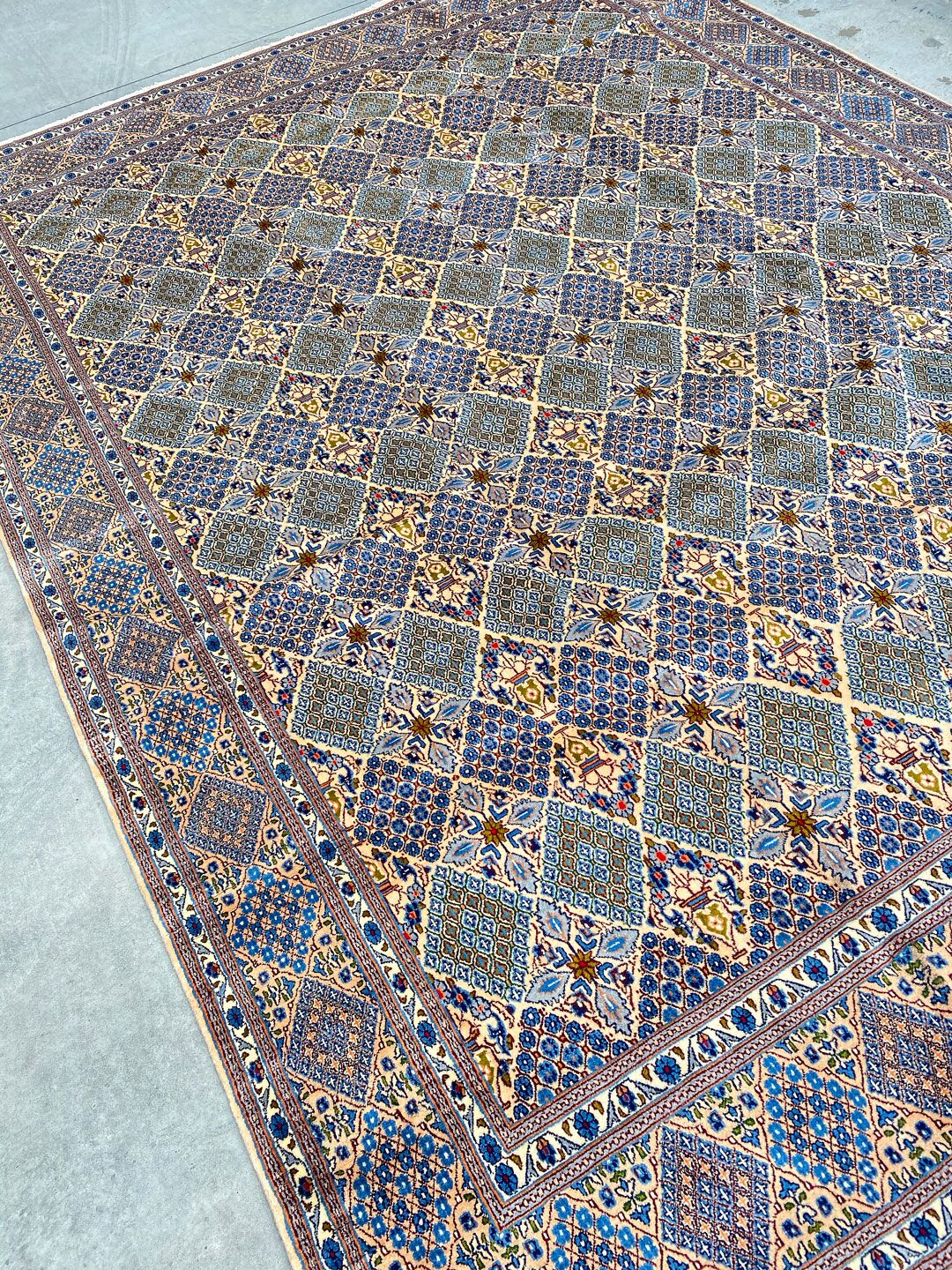 – Semi Geometric Semi Floral Design: Featuring a one-off semi-geometric semi-floral design, this rug is a unique masterpiece.