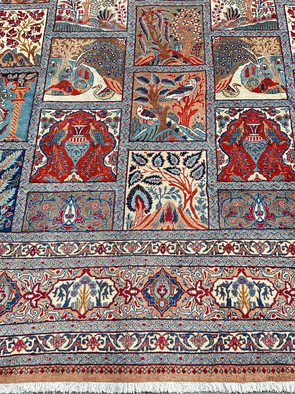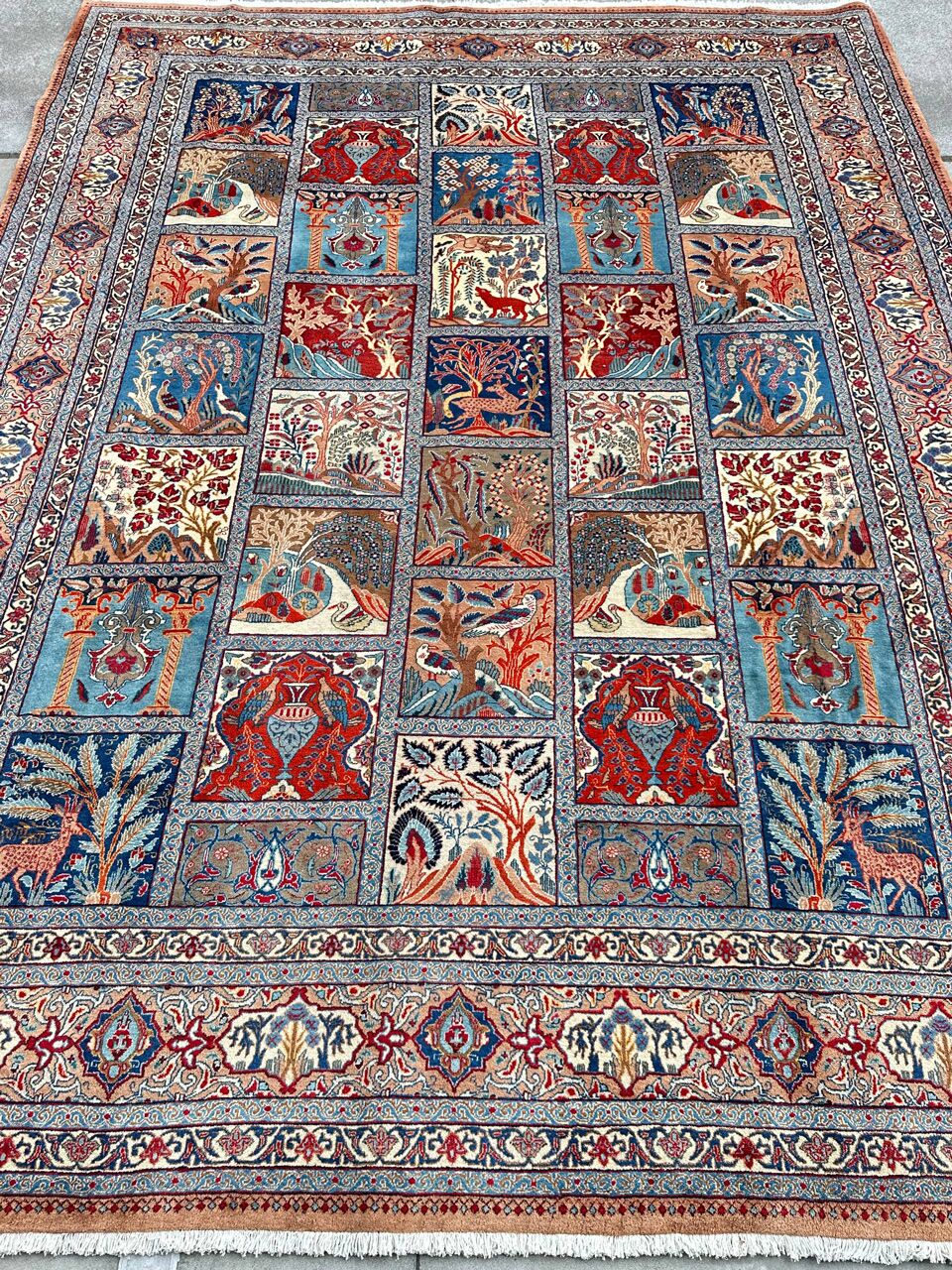– Compartment Design: Renowned as the Garden Pattern or Window Scene, the superb compartment design enhances the rug’s uniqueness.