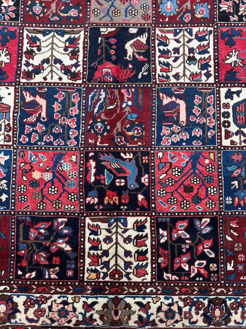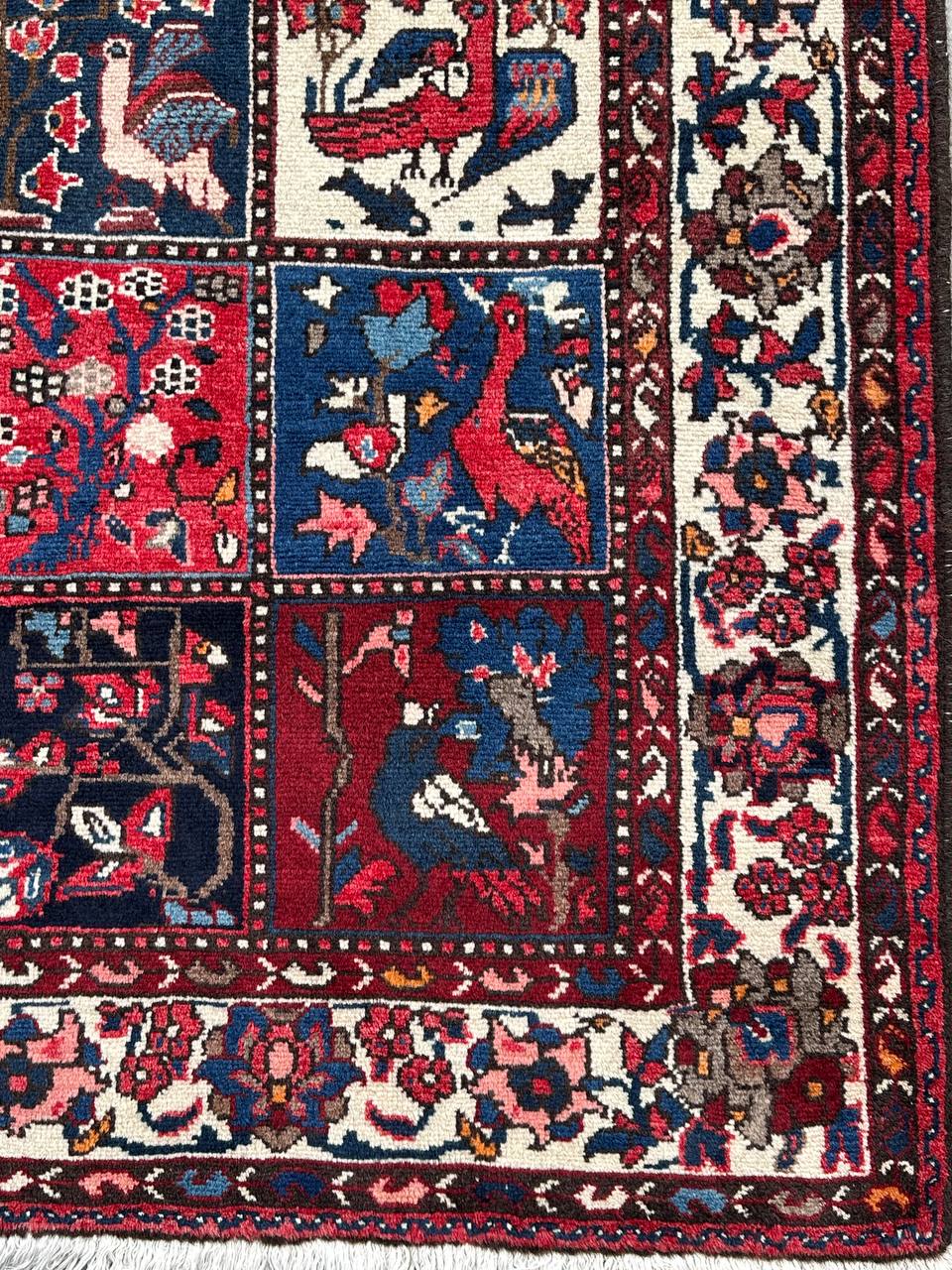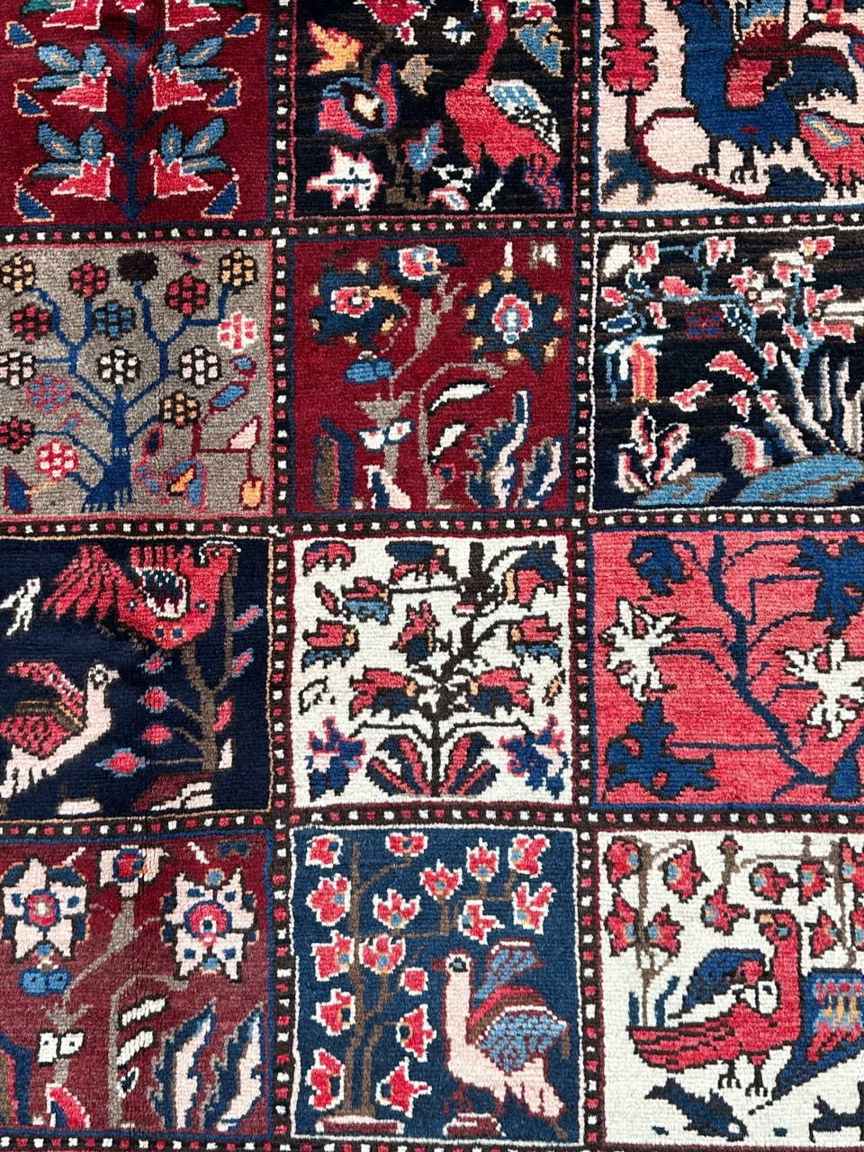 – Origin: Immerse yourself in the beauty of this amazing full room size Garden Design Handmade Persian Bakhtiari Rug, handwoven in South Persia by the Tribe of Bakhtiari.