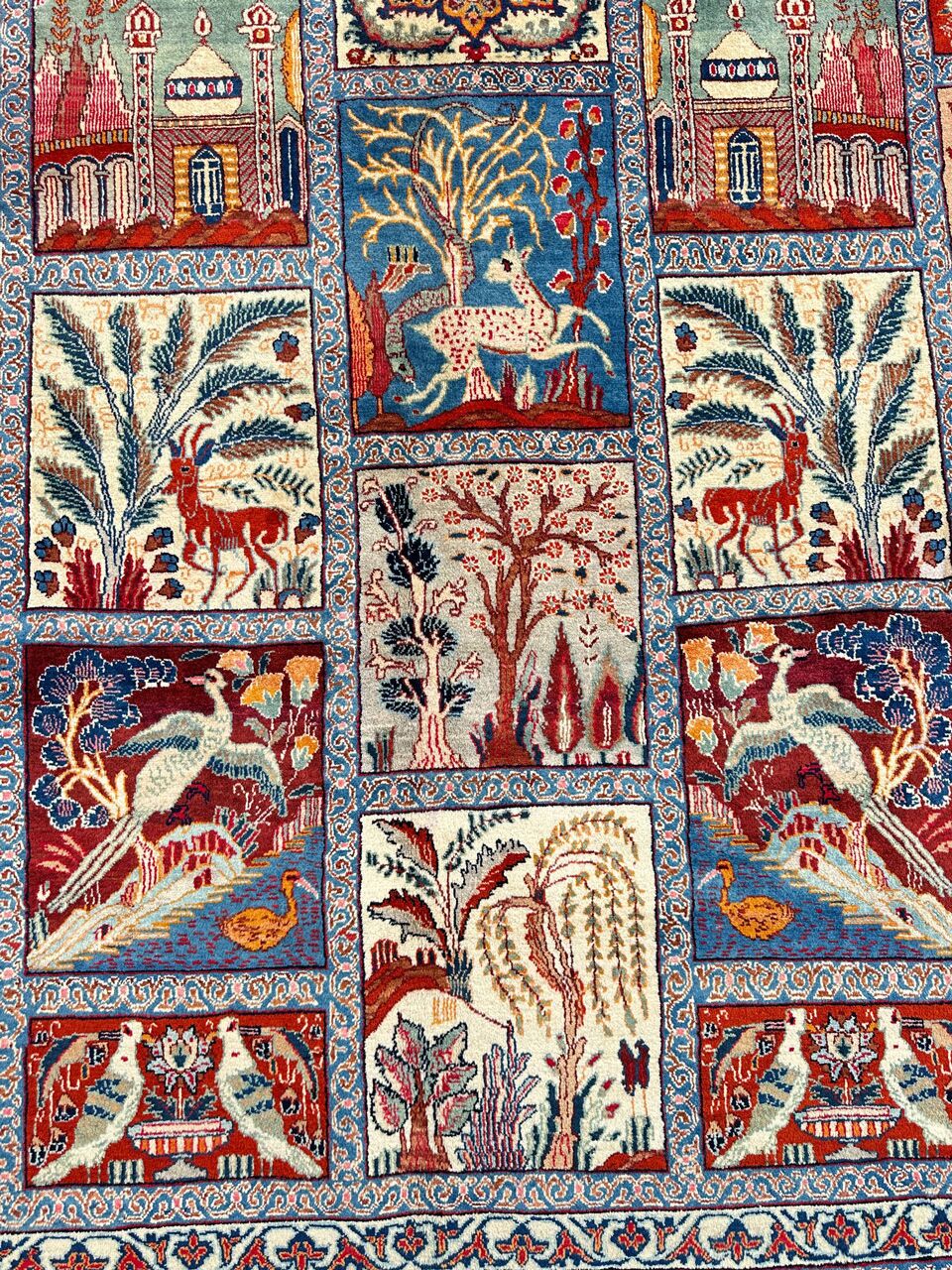 – Compartment Design: Renowned as the Garden Pattern or Window Scene, the superb compartment design enhances the rug’s uniqueness.