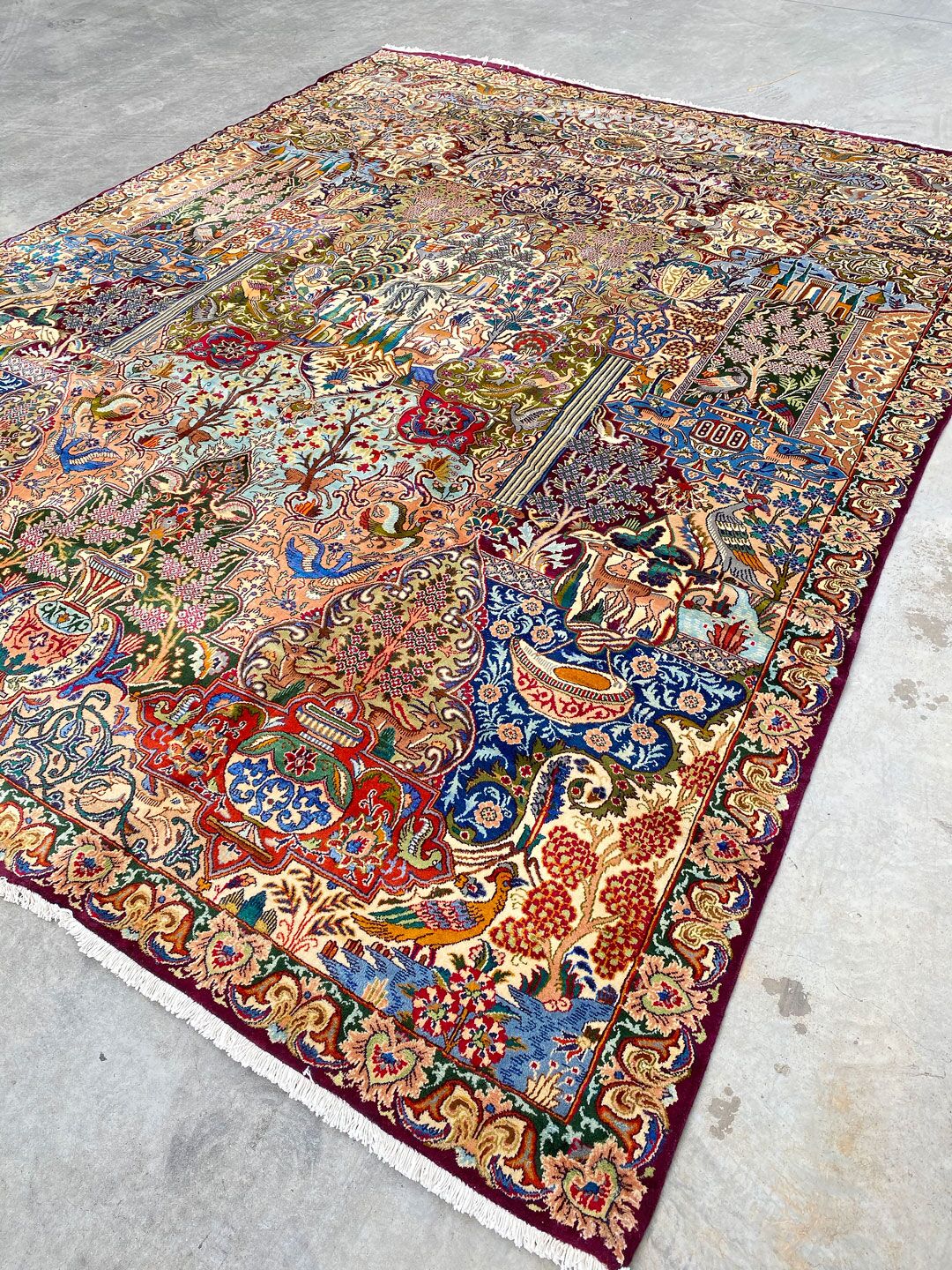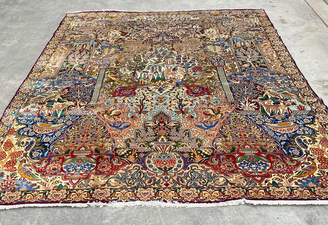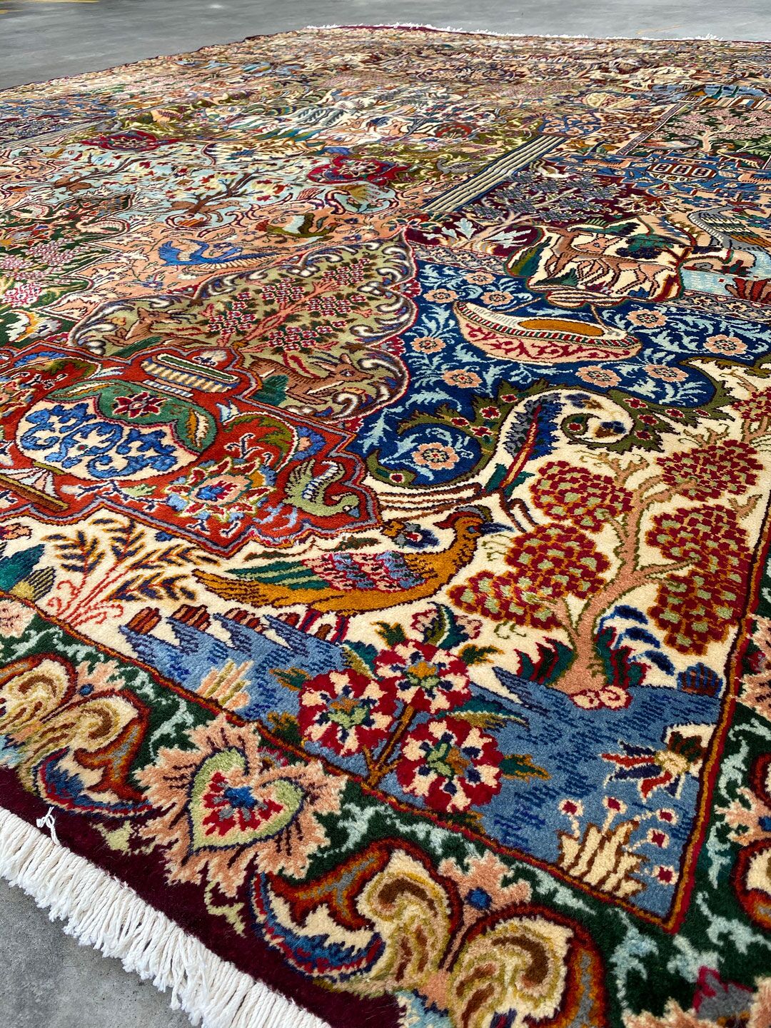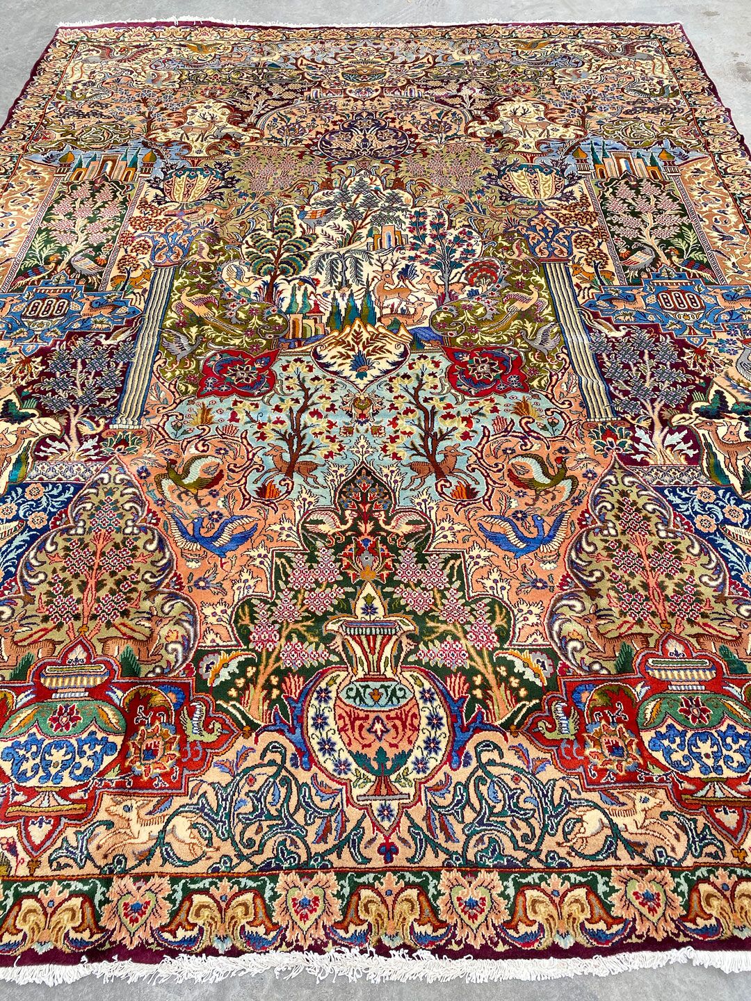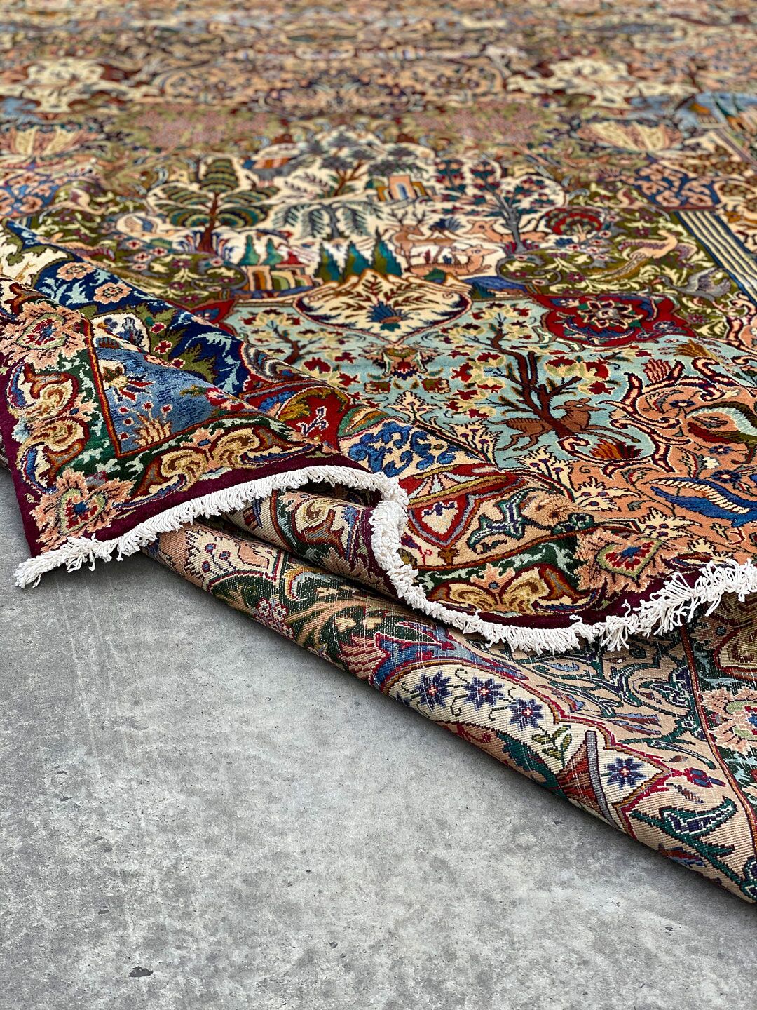 High Quality Massive Room Size Garden Of Eden Authentic Persian Kashmar Rug. Above All This Rug Would Look Like a Painting on Your Floor. It Also Has a Pure Lamb’s Wool Pile on Cotton Base. Multi-Color Tones Dyed Using Traditional Methods. It Is Fine Quality Piece Which Would Last A Life Time.