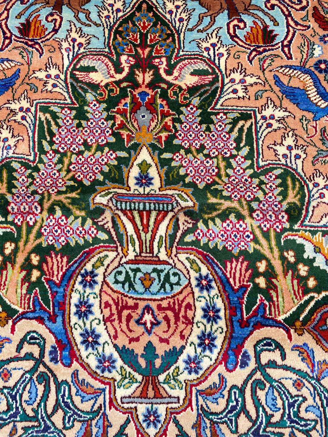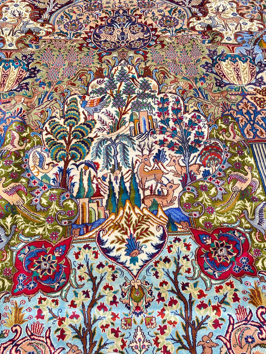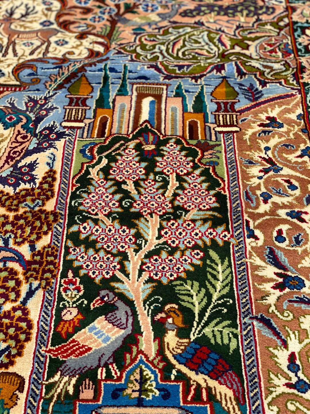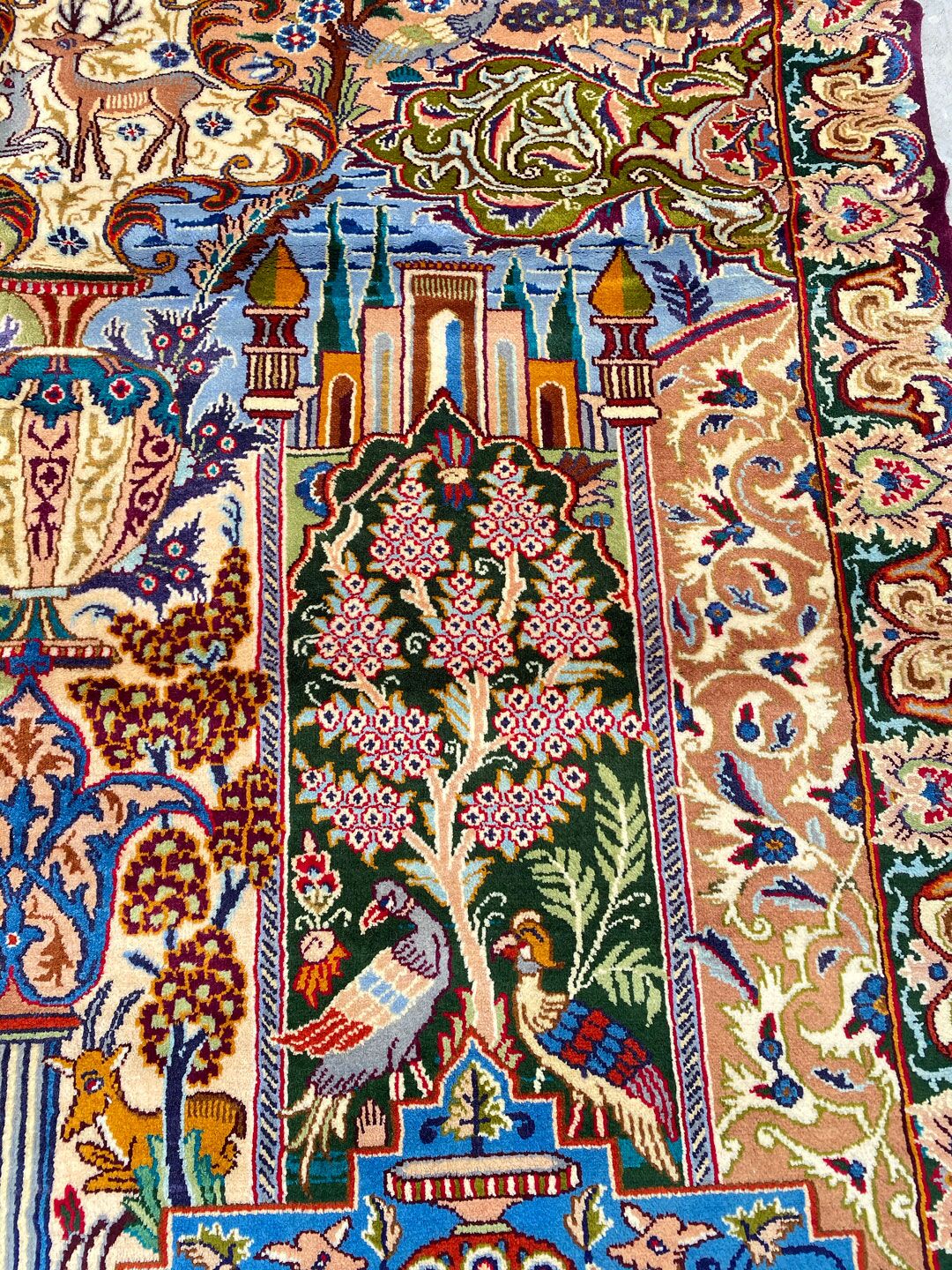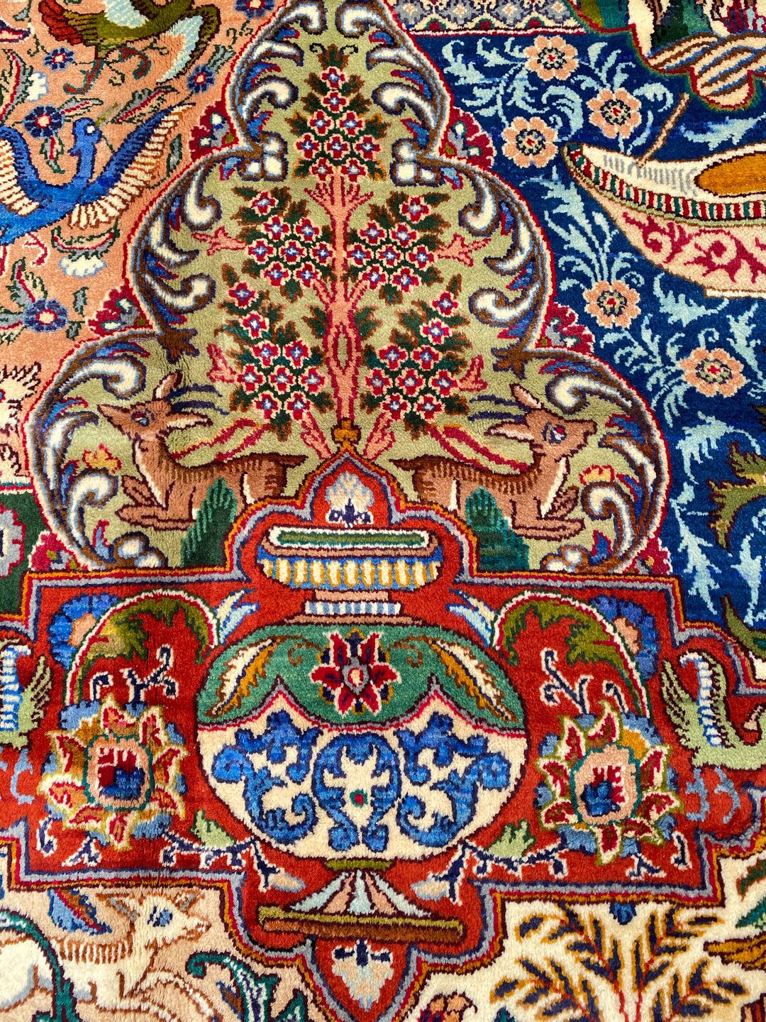 High Quality Massive Room Size Garden Of Eden Authentic Persian Kashmar Rug. Above All This Rug Would Look Like a Painting on Your Floor. It Also Has a Pure Lamb’s Wool Pile on Cotton Base. Multi-Color Tones Dyed Using Traditional Methods. It Is Fine Quality Piece Which Would Last A Life Time.