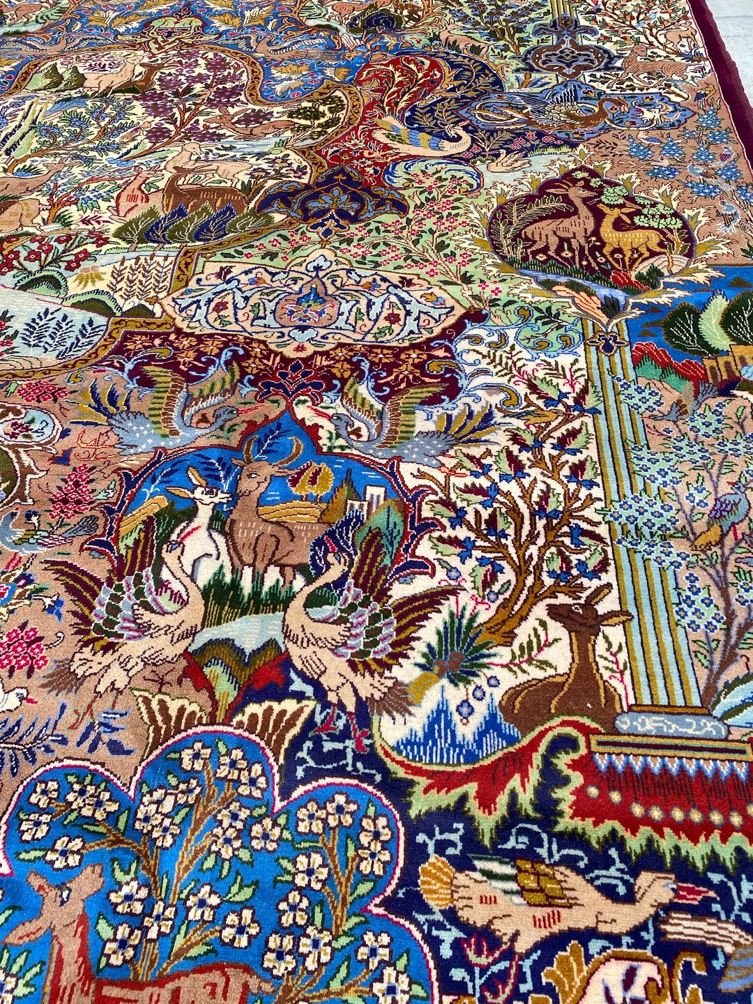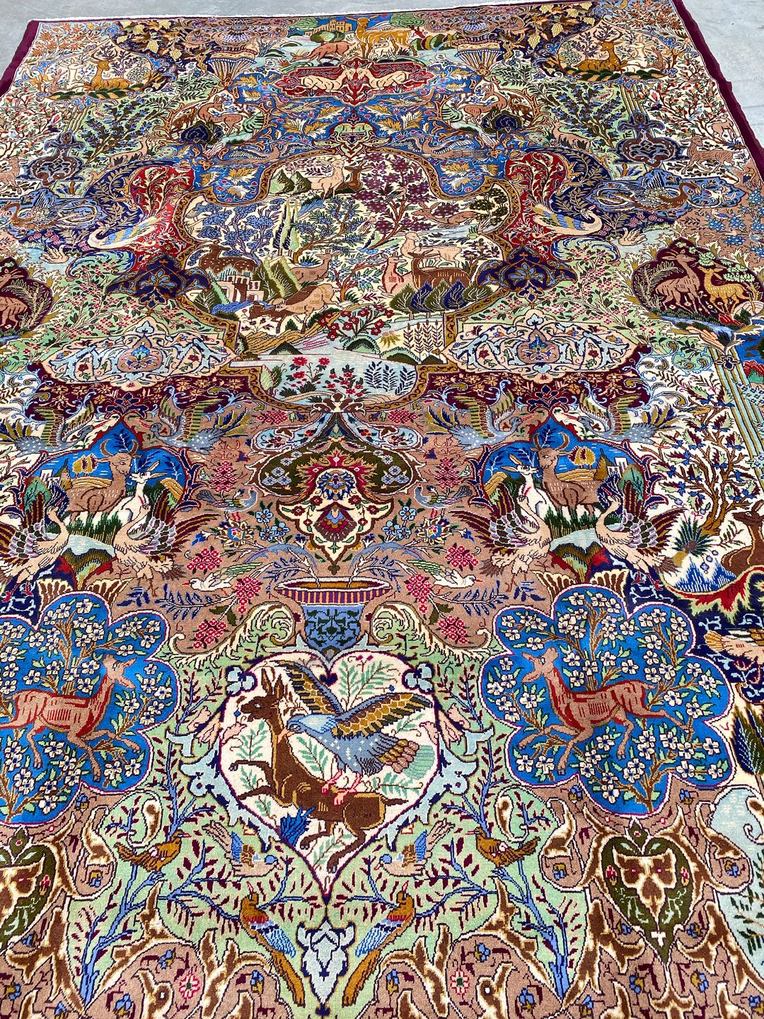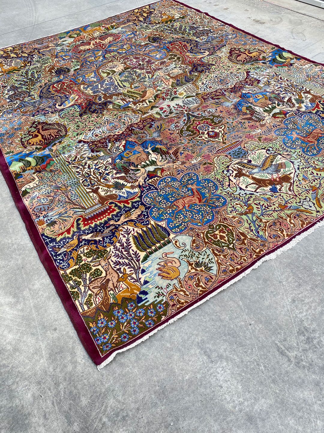 High Quality Massive Room Size Garden Of Eden Authentic Persian Kashmar Rug. Above All This Rug Would Look Like a Painting on Your Floor. It Also Has a Pure Lamb’s Wool Pile on Cotton Base. Multi-Color Tones Dyed Using Traditional Methods. It Is Fine Quality Piece Which Would Last A Life Time.