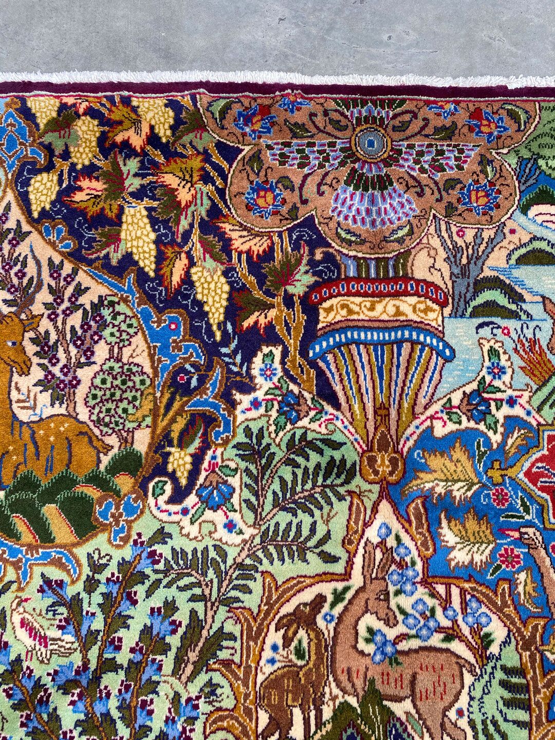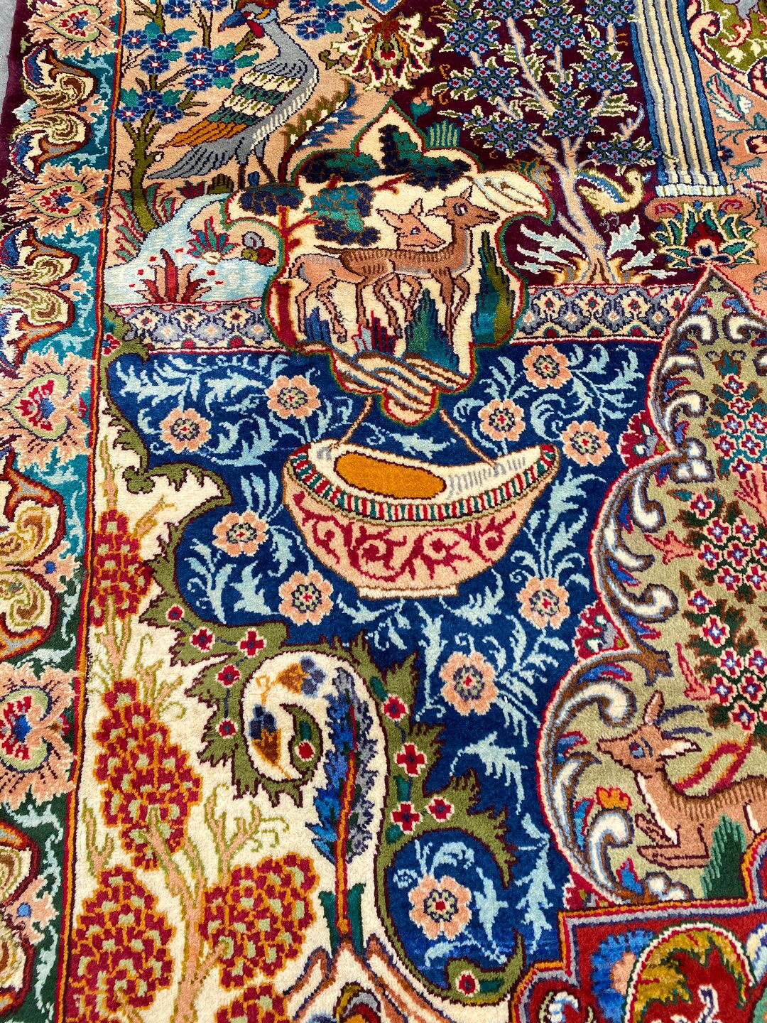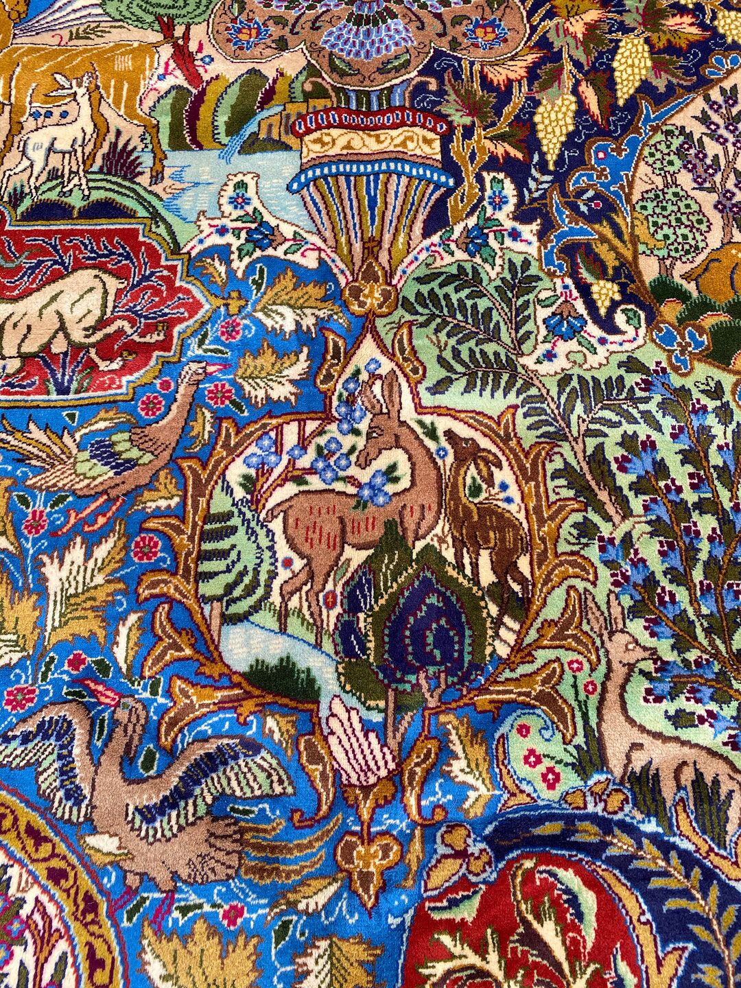 High Quality Massive Room Size Garden Of Eden Authentic Persian Kashmar Rug. Above All This Rug Would Look Like a Painting on Your Floor. It Also Has a Pure Lamb’s Wool Pile on Cotton Base. Multi-Color Tones Dyed Using Traditional Methods. It Is Fine Quality Piece Which Would Last A Life Time.