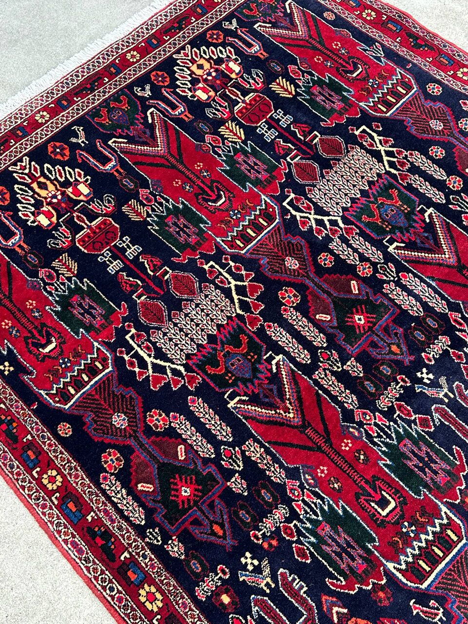– Origin: Experience the charm of this handmade Persian Kerman rug, celebrated for its durability and unique one-off tribal art work, woven in Southern Persia, Village of Sirjan.