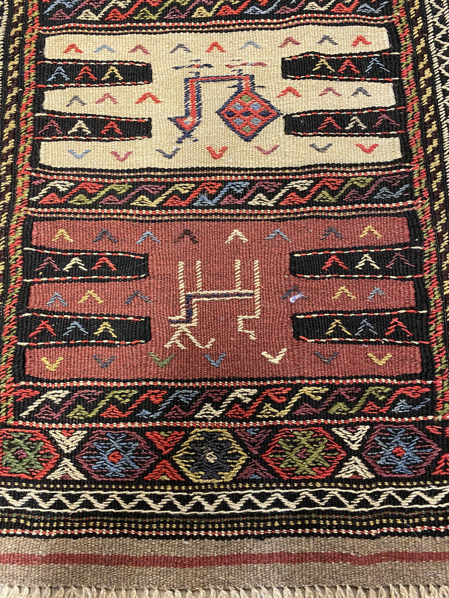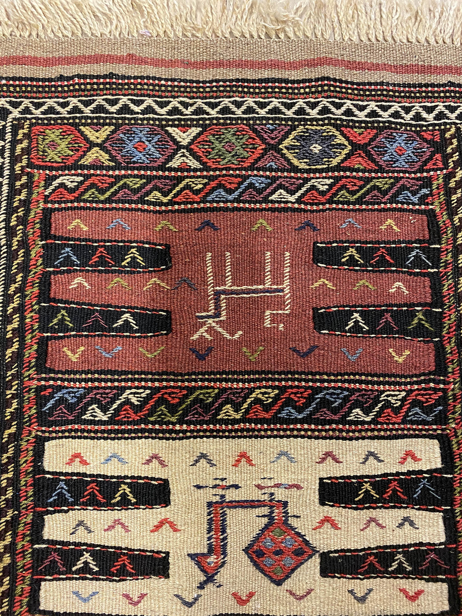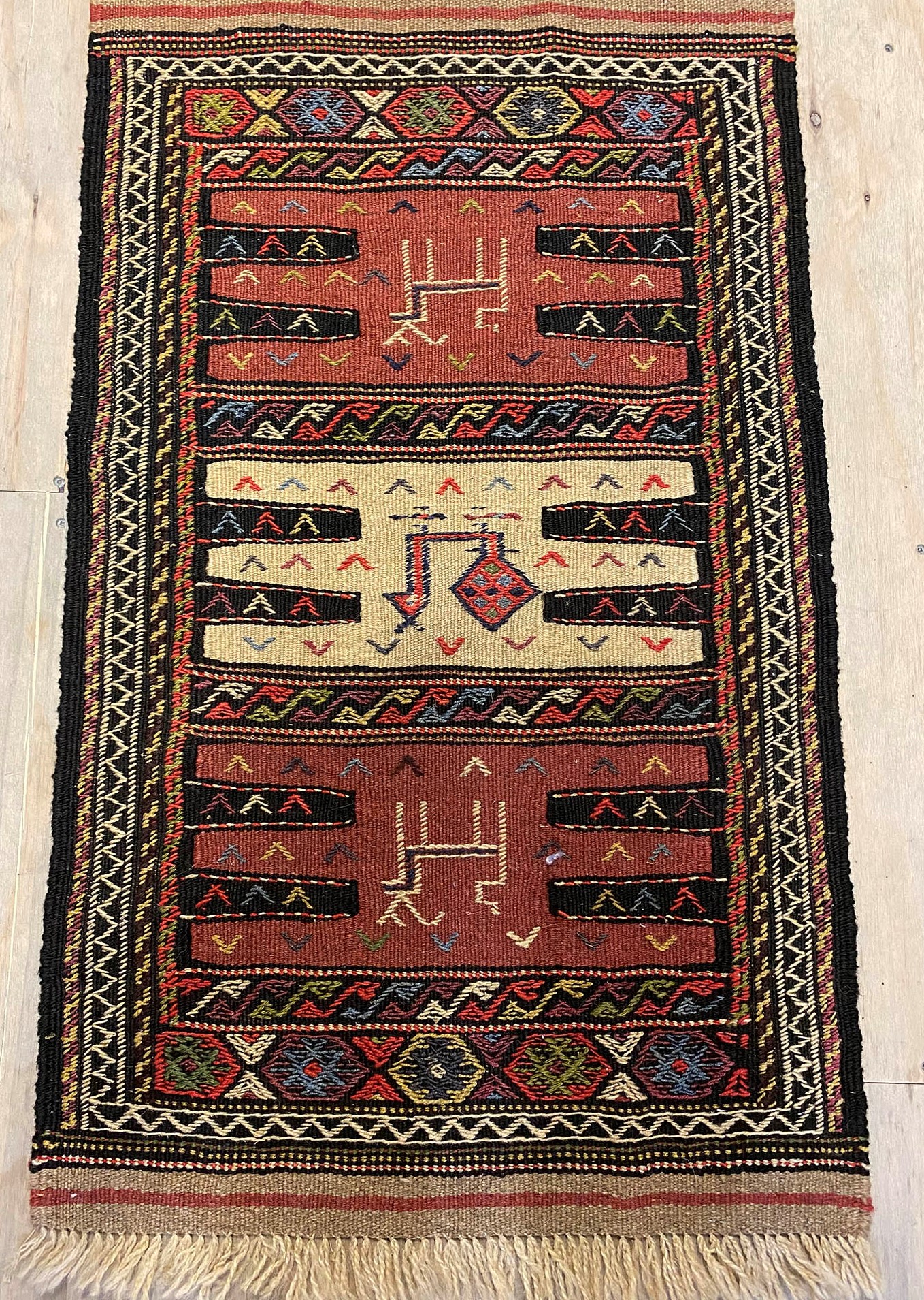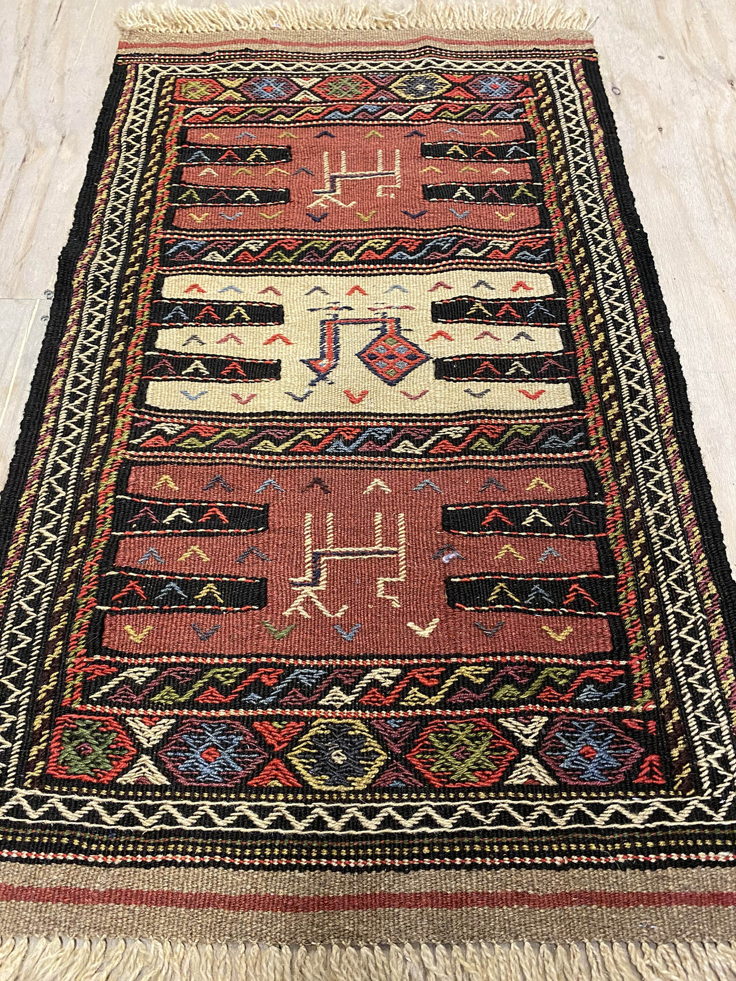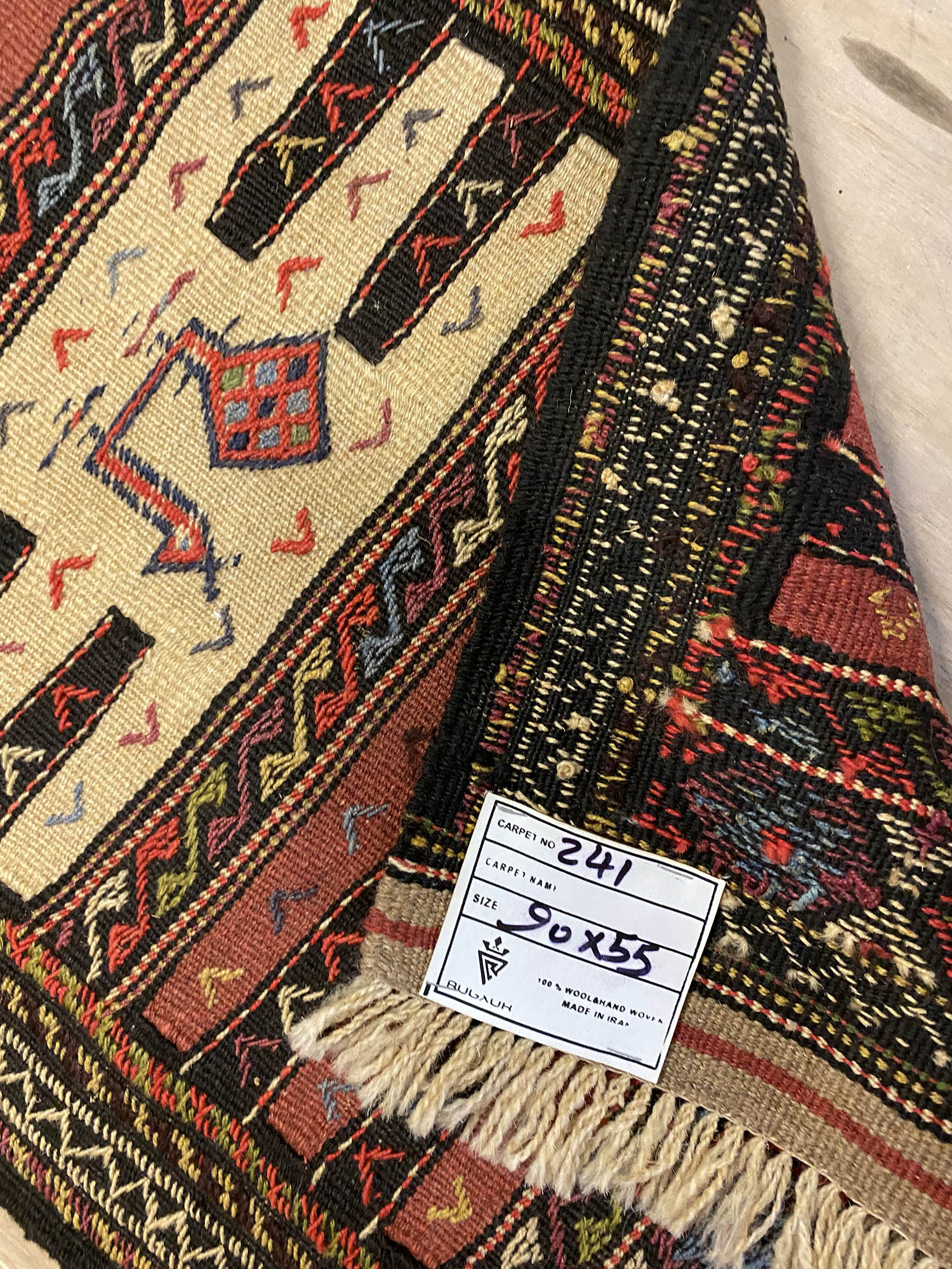 Certified Hand Woven Persian Sofreh Tapestry Kilim Rug 90x55cm