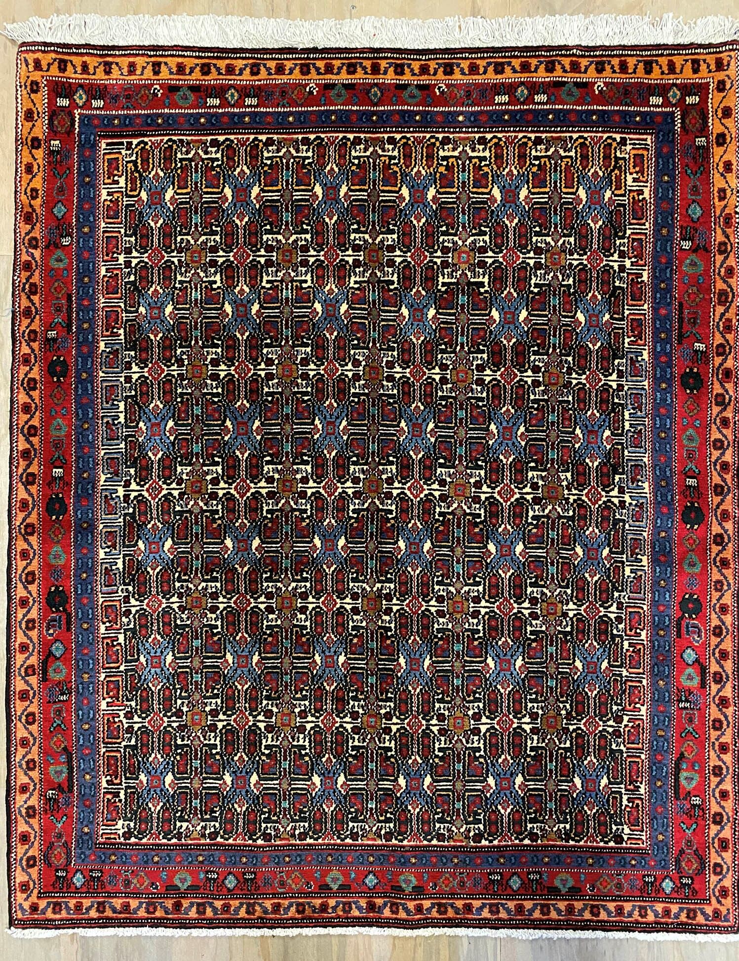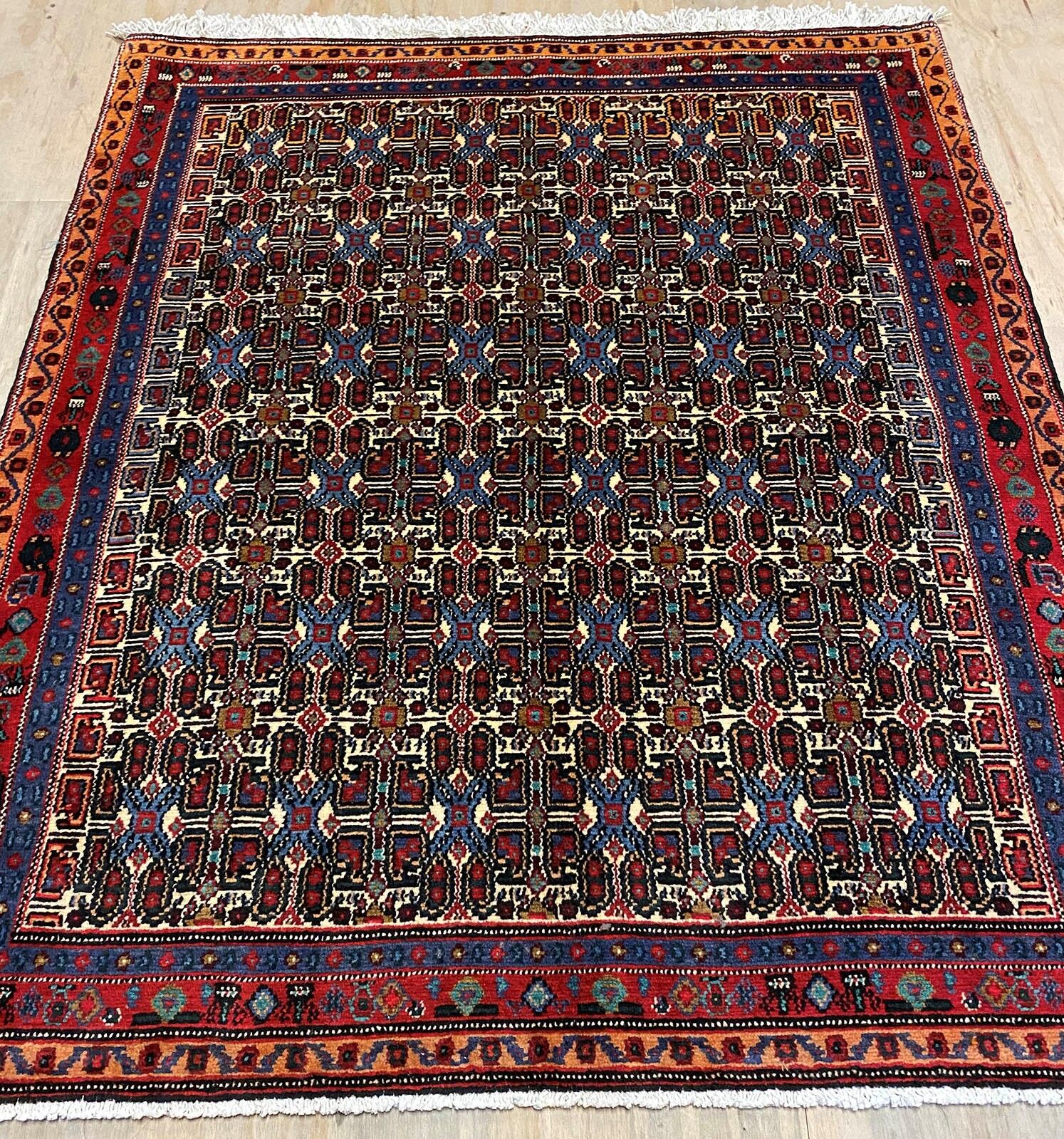 – Crafted in Kurdish Province: Handwoven in the West Persia, Kurdish Province, this rug reflects the skilled artistry of Kurdish rug making.
