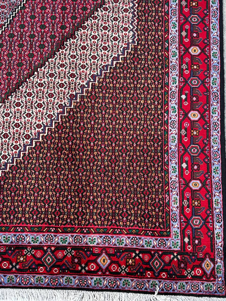 – Superb Craftsmanship: Discover the quality of a superb hand-knotted Senneh Bijar rug, a rare find from the Kurdish Province. Crafted with pure lamb’s wool pile on fine cotton, it offers a dense and luxurious feel.