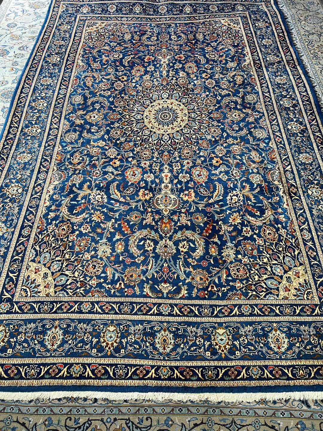 – Origin: Transform your living space with this amazing large room size authentic handmade Persian Kashmar rug, a rare gem known for its quality and craftsmanship.