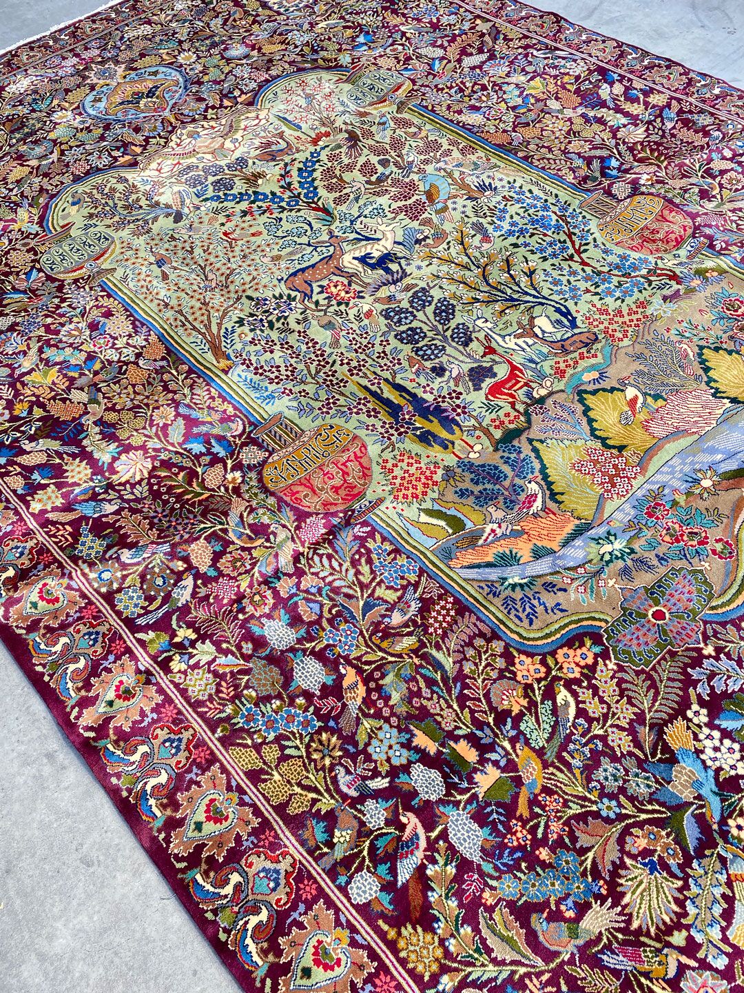 Experience the enchantment of the Garden of Eden with this certified handmade pictorial Kashmar rug, exclusively from RugMaster, your trusted handmade Persian Rugs and Runners specialist in Sydney.