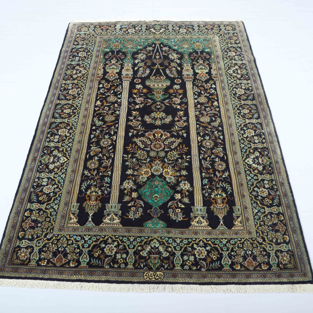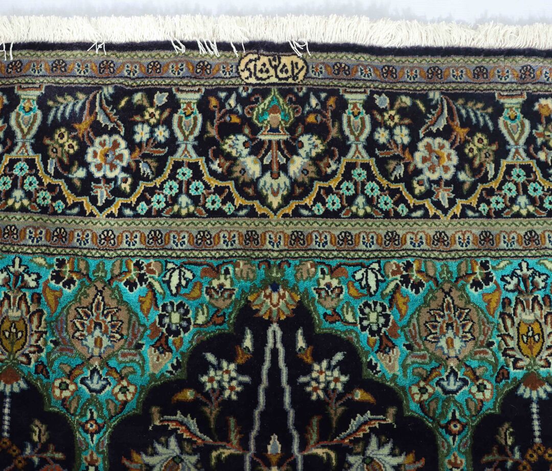 Signed and Certified hand knotted Persian Kashan Rug 213×138 cm