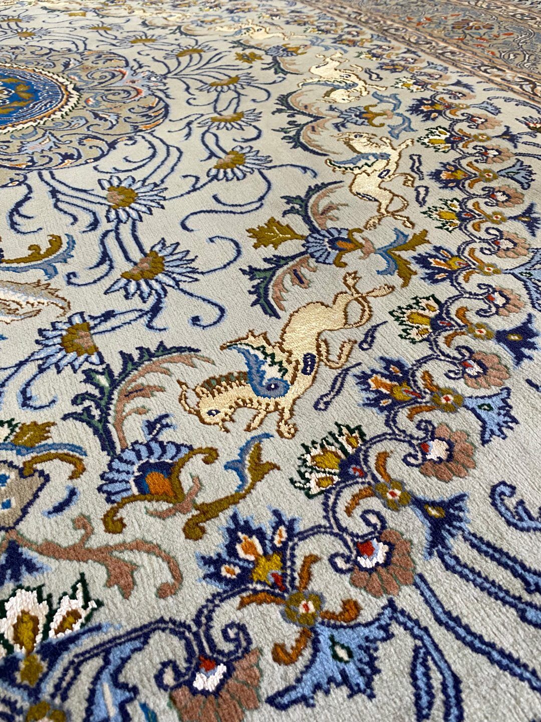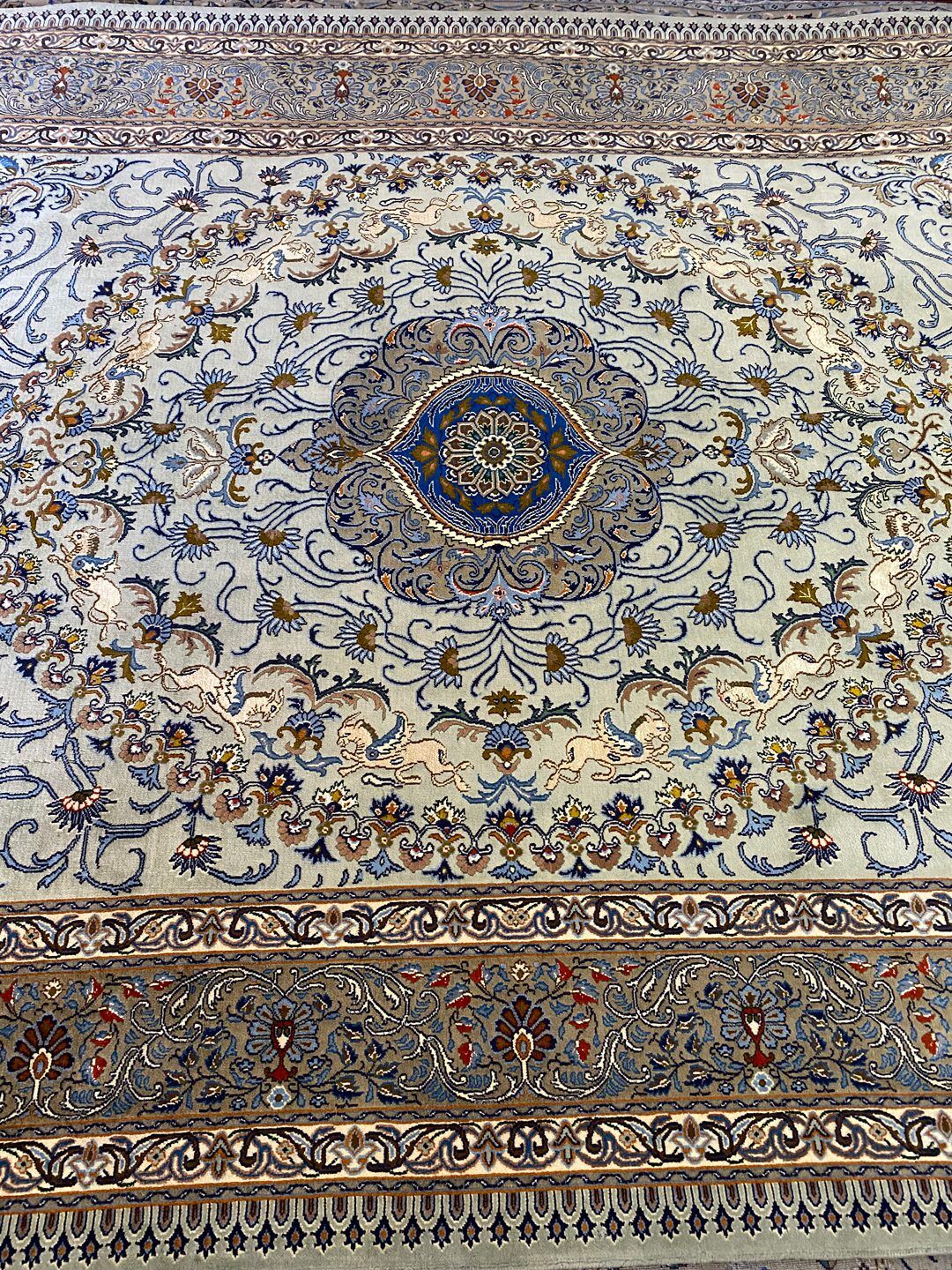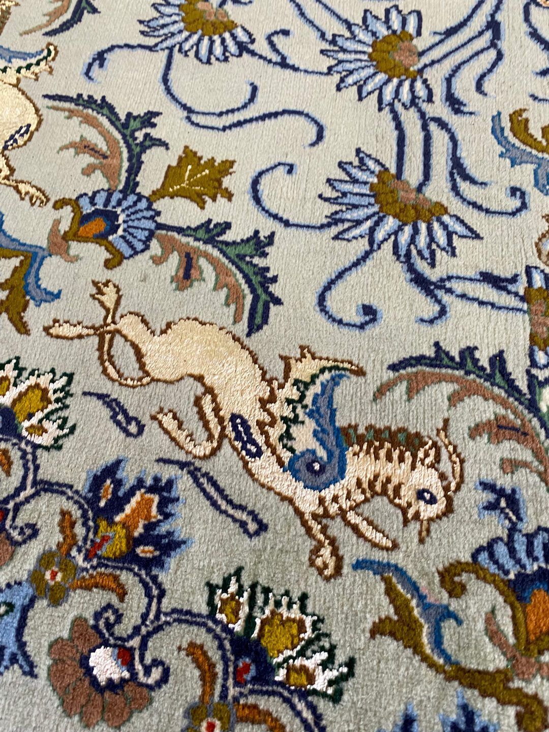 This rug has a same pair as well. The unicorn motifs throughout the rug are full silk, offering a delicate and soft touch.
