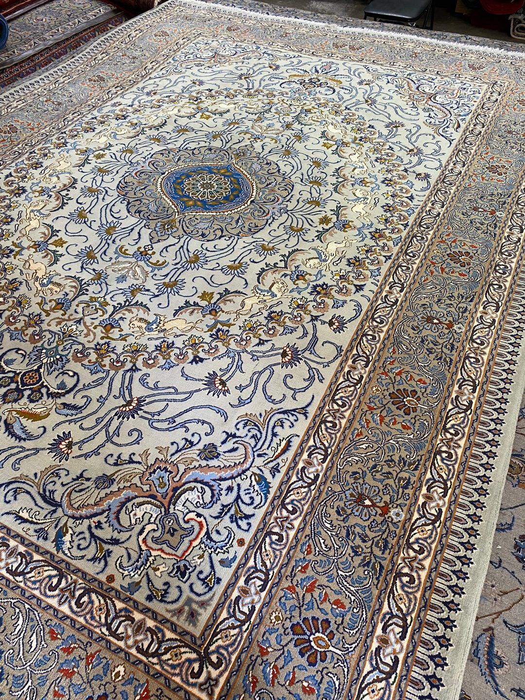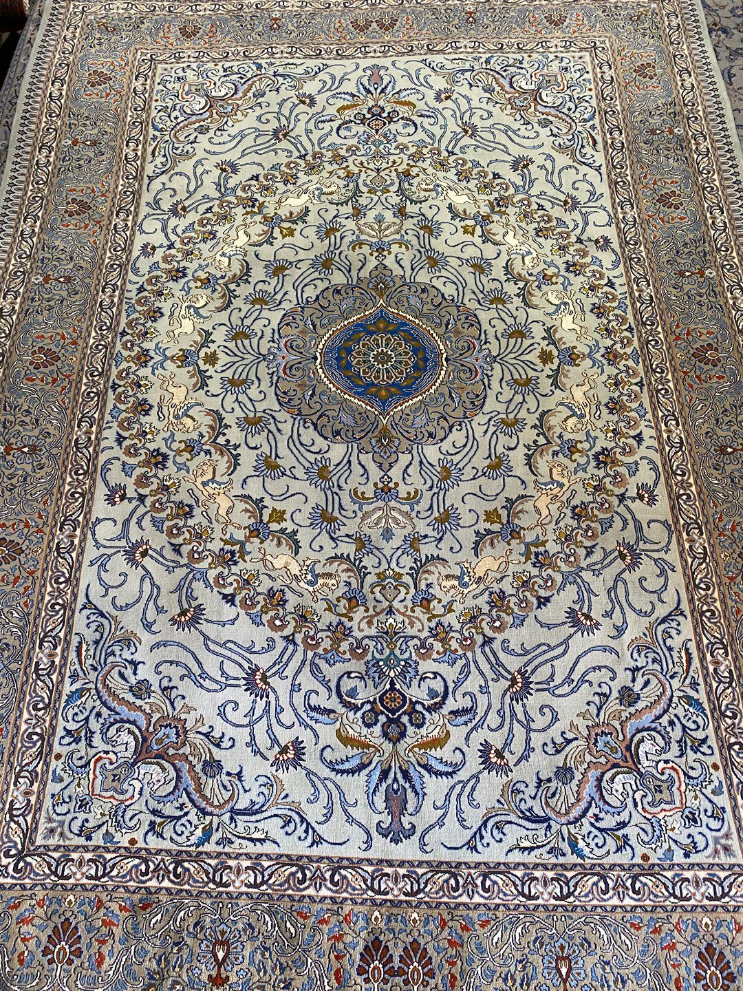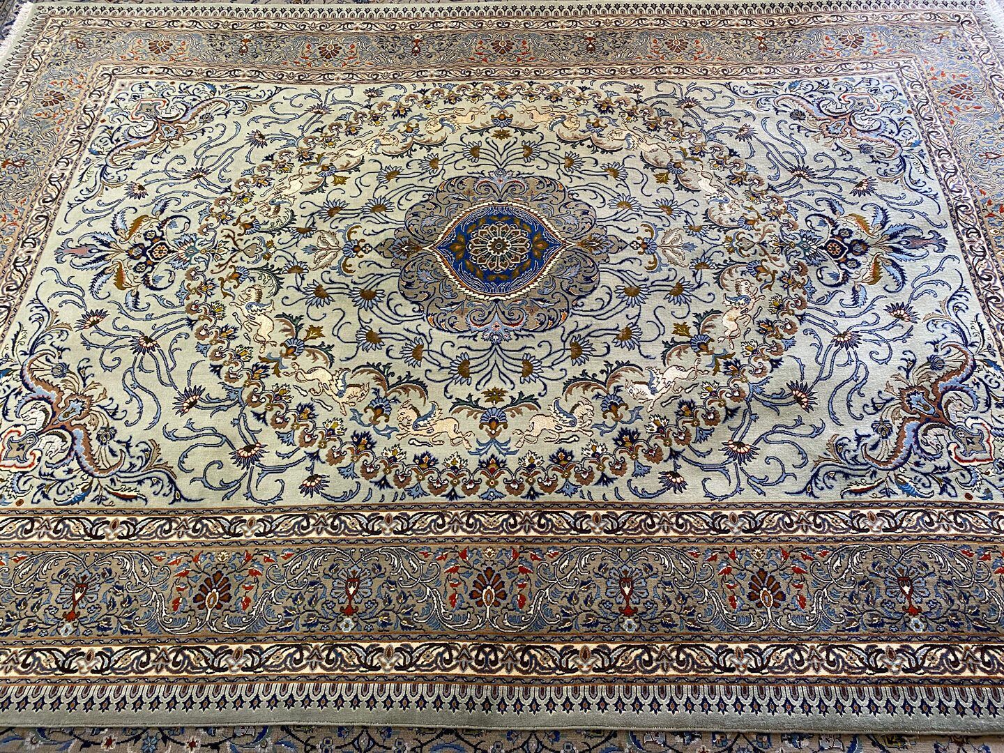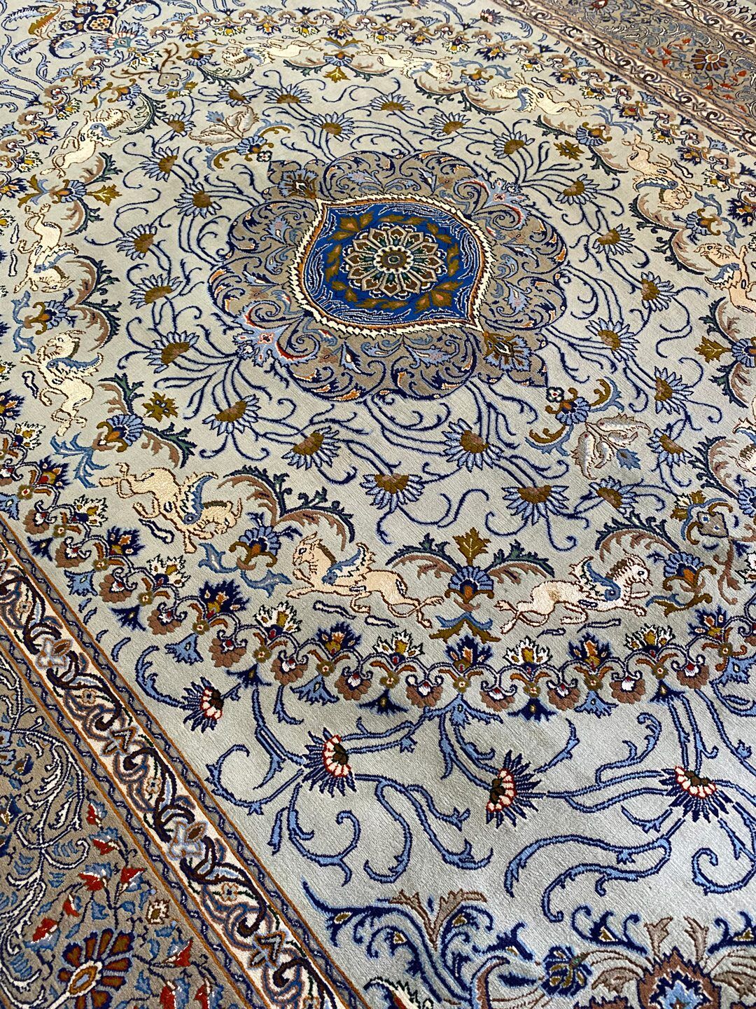 This rug has a same pair as well. The unicorn motifs throughout the rug are full silk, offering a delicate and soft touch.