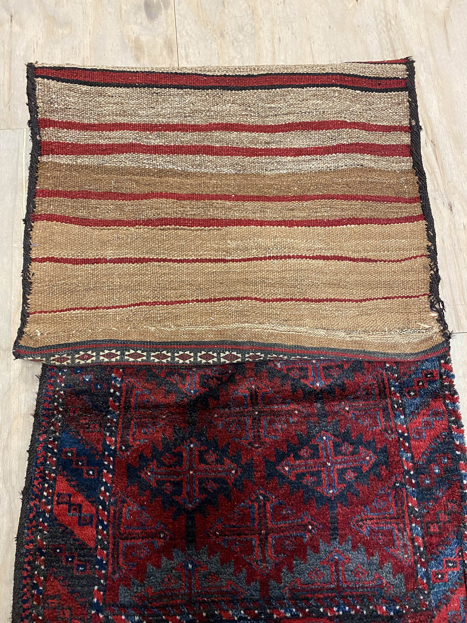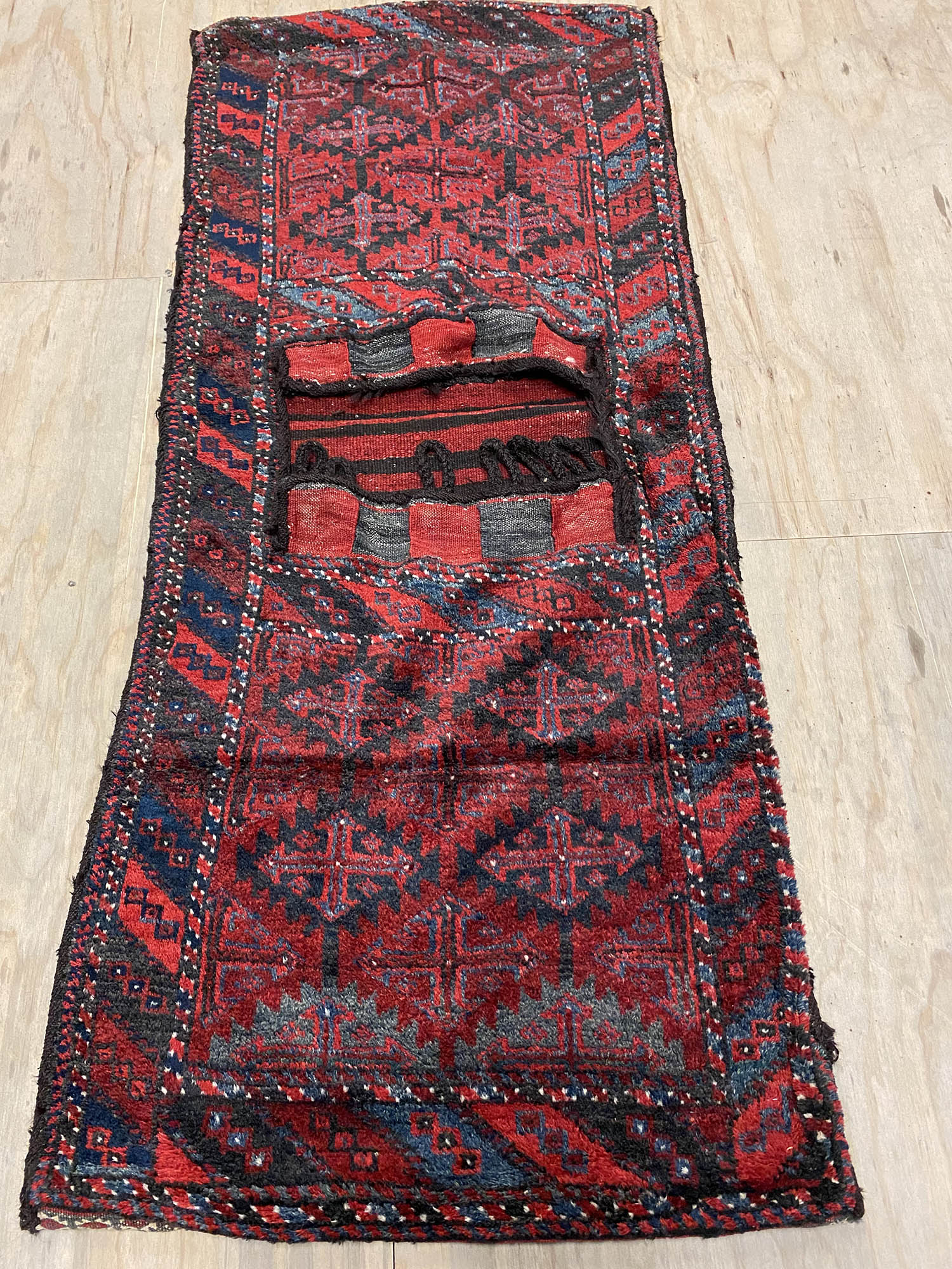 – Tribal Balouchi Saddle bag: A versatile piece that can be used as both a rug and a wall hanging, featuring pure hand-spun wool on cotton construction.