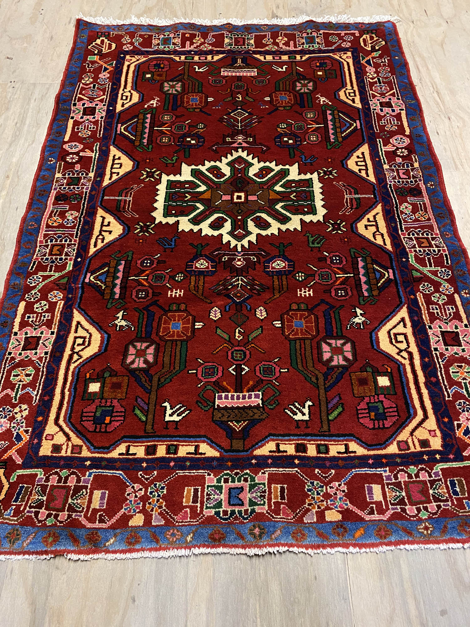 Elevate your space with the warmth and charm of the Certified Hand Knotted Persian Hamadan Rug, exclusively available from RugMaster, your trusted source for handmade Persian Rugs and Runners.