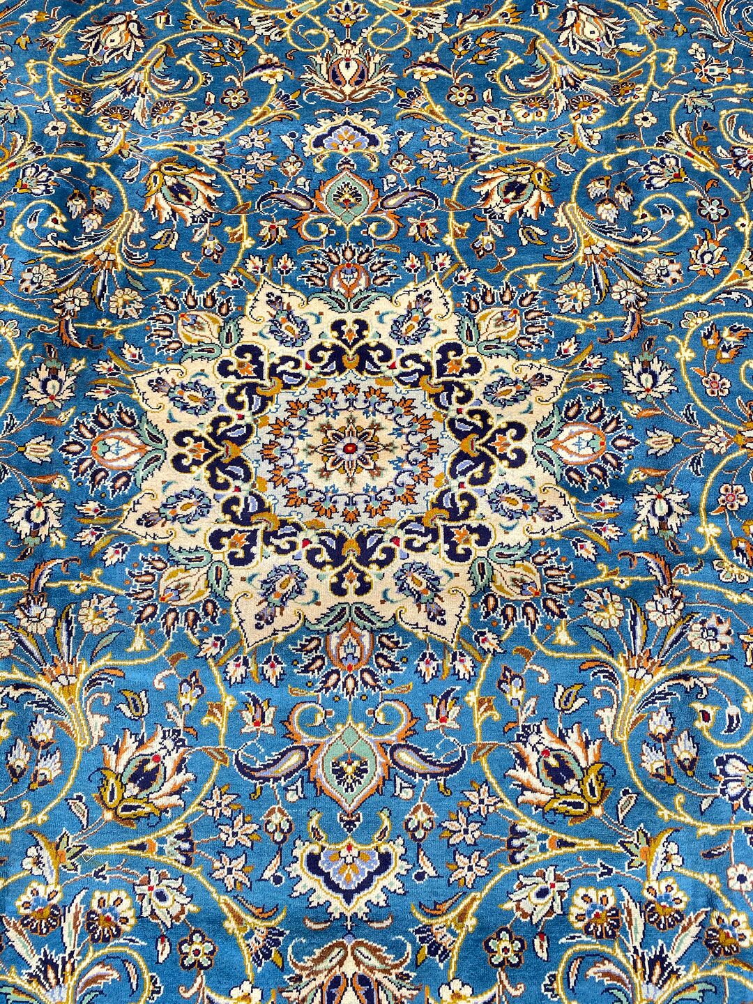 – Origin: Transform your living space with this amazing large room size authentic handmade Persian Kashan rug, a rare gem known for its quality and craftsmanship.