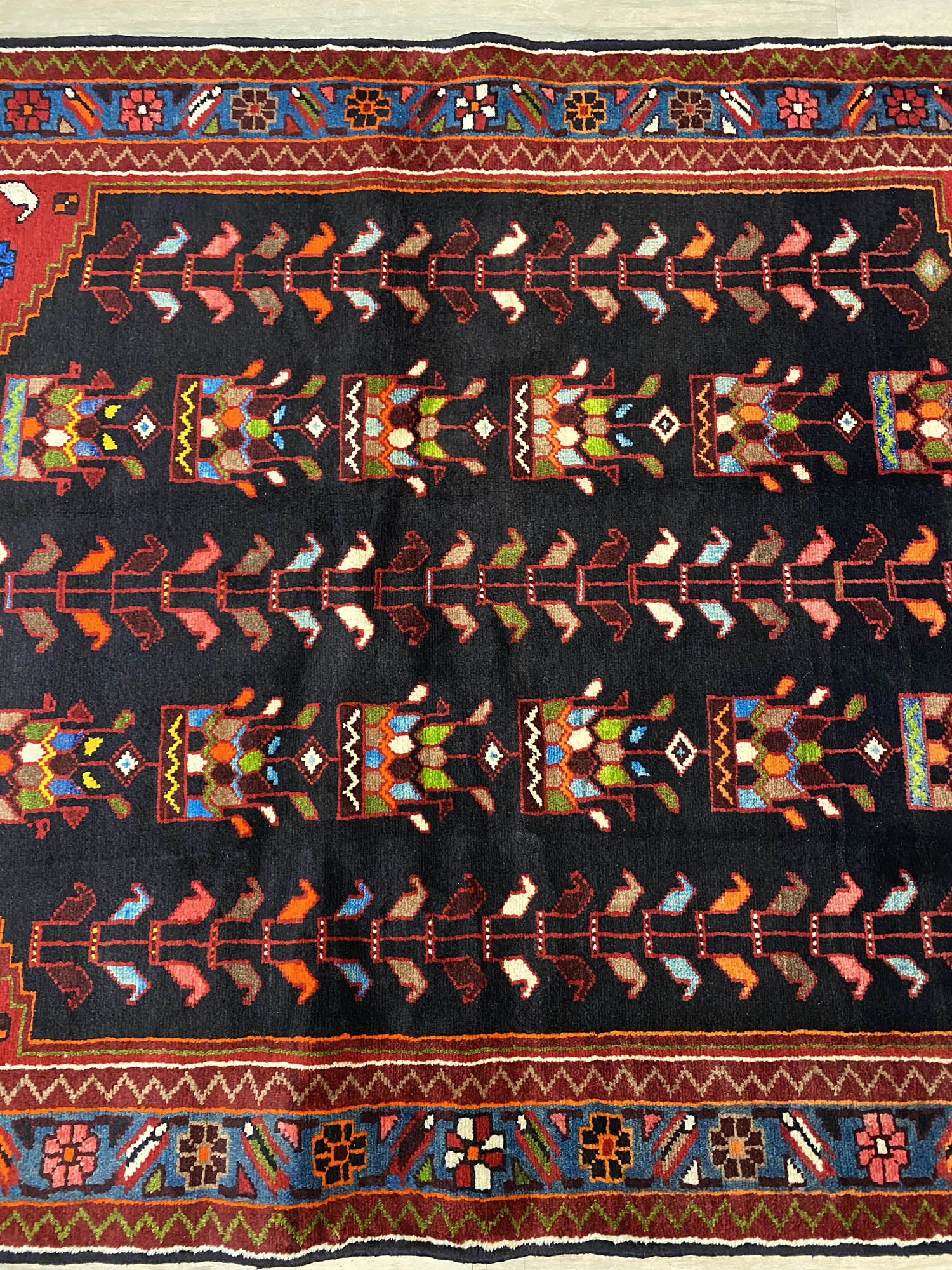 – Artistic Origin: Handwoven in Iran by nomadic Saveh weavers, this rug represents a unique blend of artistry and tradition.