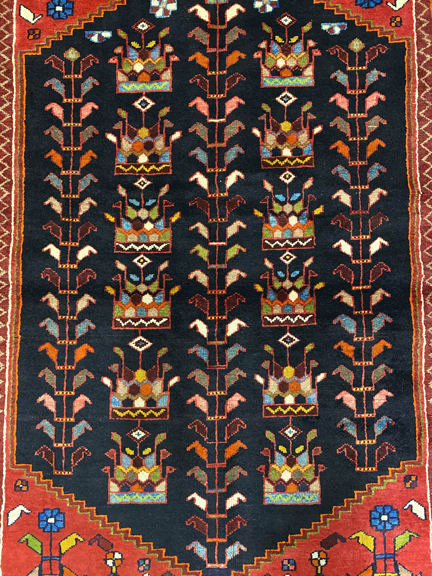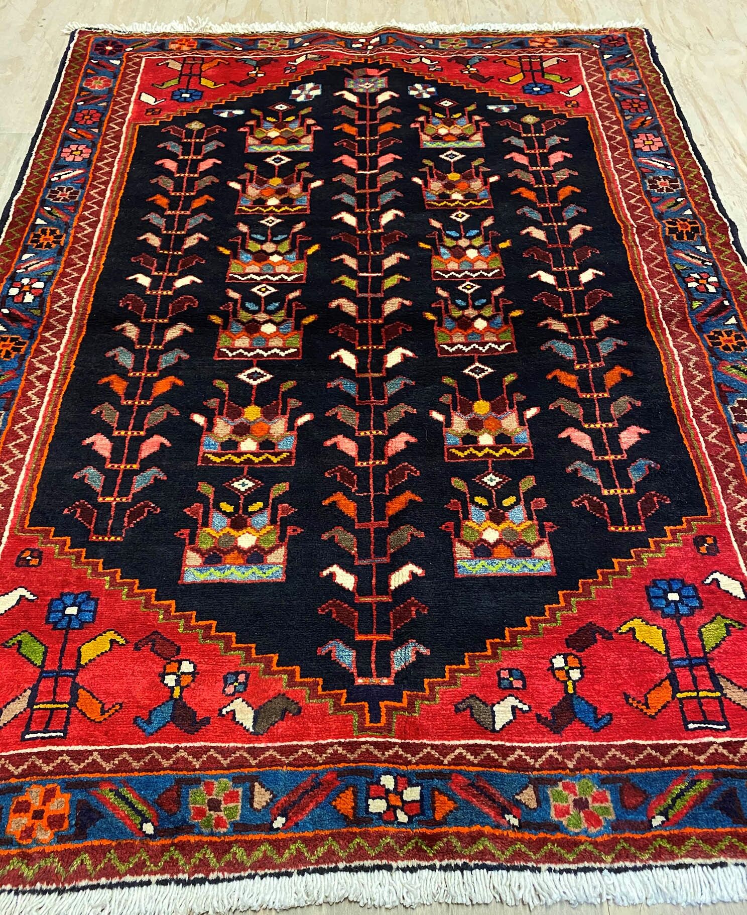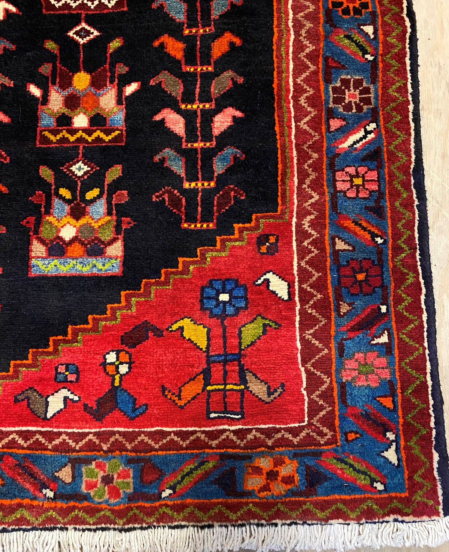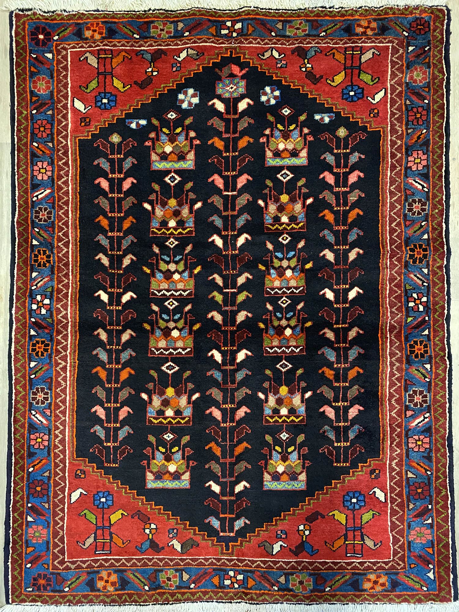 Hand Knotted Tribal Persian Saveh rug. Above All It Is Hard Wearing & Durable Piece Which Would Last You A Life Time. Pure Hand Spun Wool Pile On Cotton Base. It Also Has Am Indigo Blue Tone Dyed Using Traditional Methods.