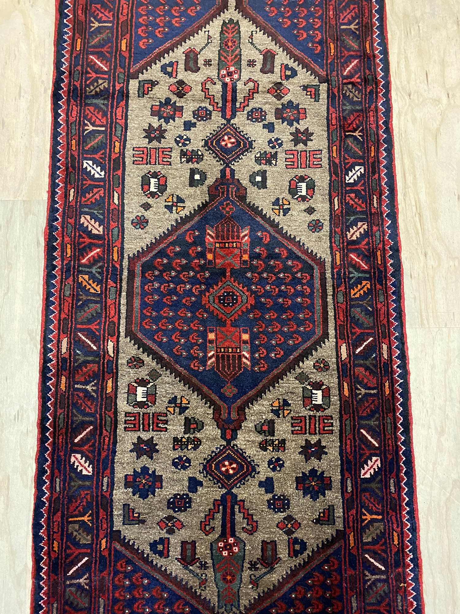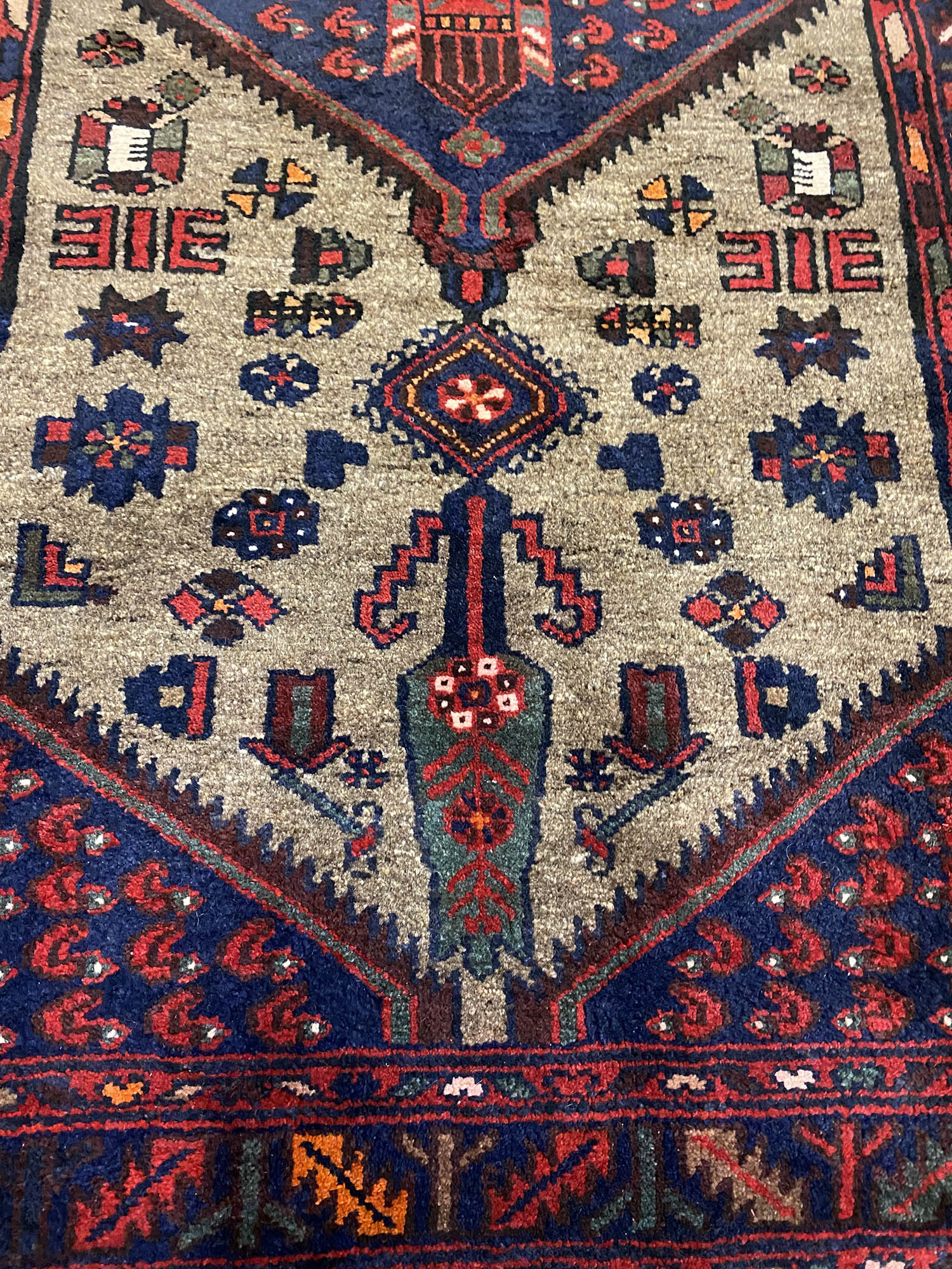 – Origin: This old hand-knotted tribal Hamedan rug, featuring a Geometric tribal design, is a masterpiece of fine workmanship. Crafted in Central Persia, it reflects the rich heritage of tribal Hamedan weaving.