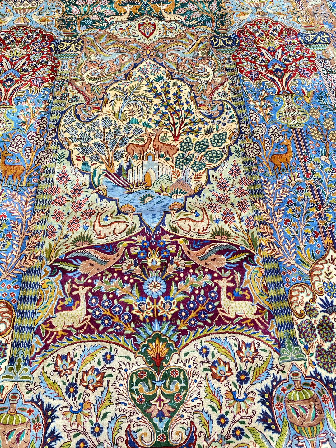 High Quality Massive Room Size Garden Of Eden Authentic Persian Kashmar Rug. Above All This Rug Would Look Like a Painting on Your Floor. It Also Has a Pure Lamb’s Wool Pile on Cotton Base. Multi-Color Tones Dyed Using Traditional Methods. It Is Fine Quality Piece Which Would Last A Life Time.