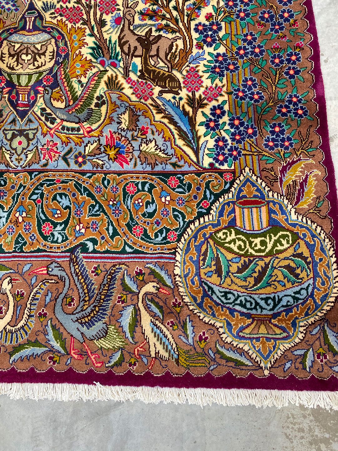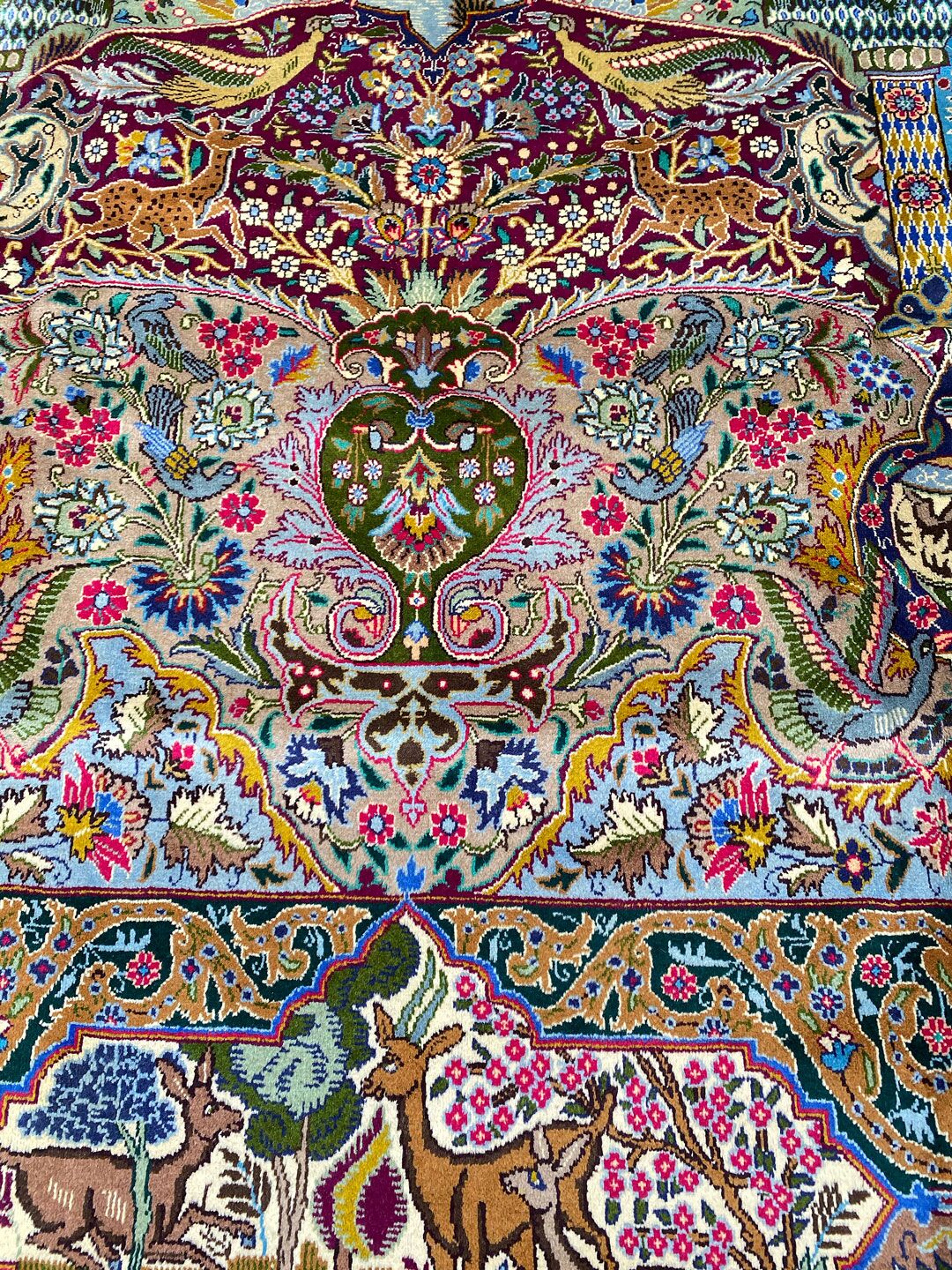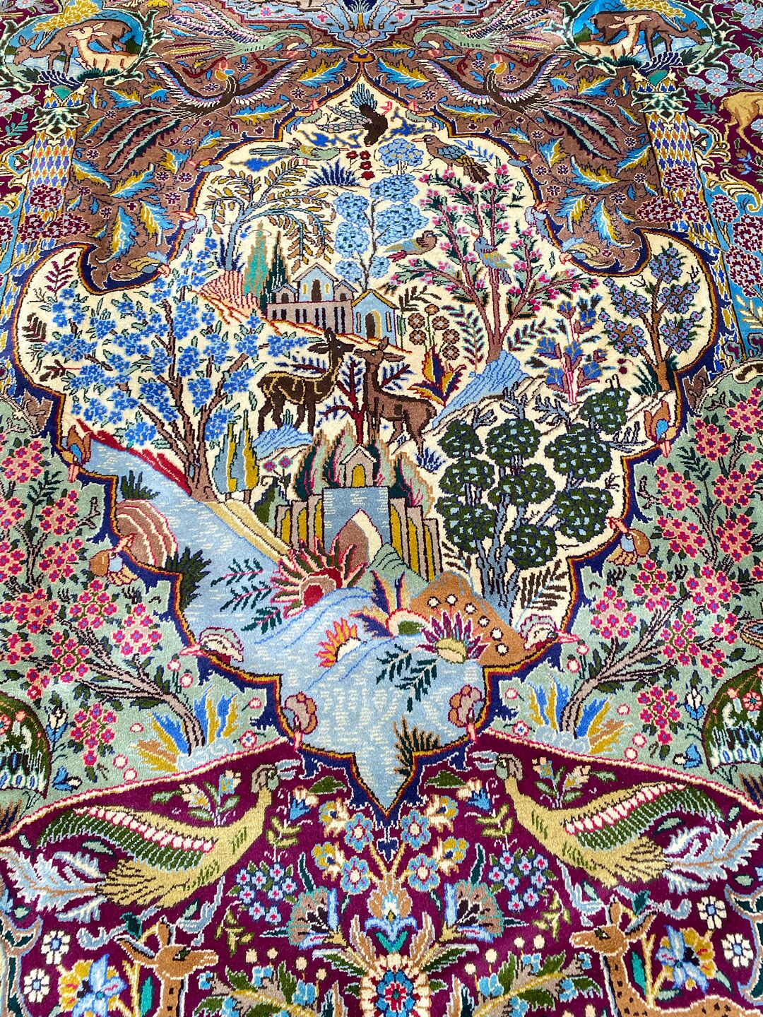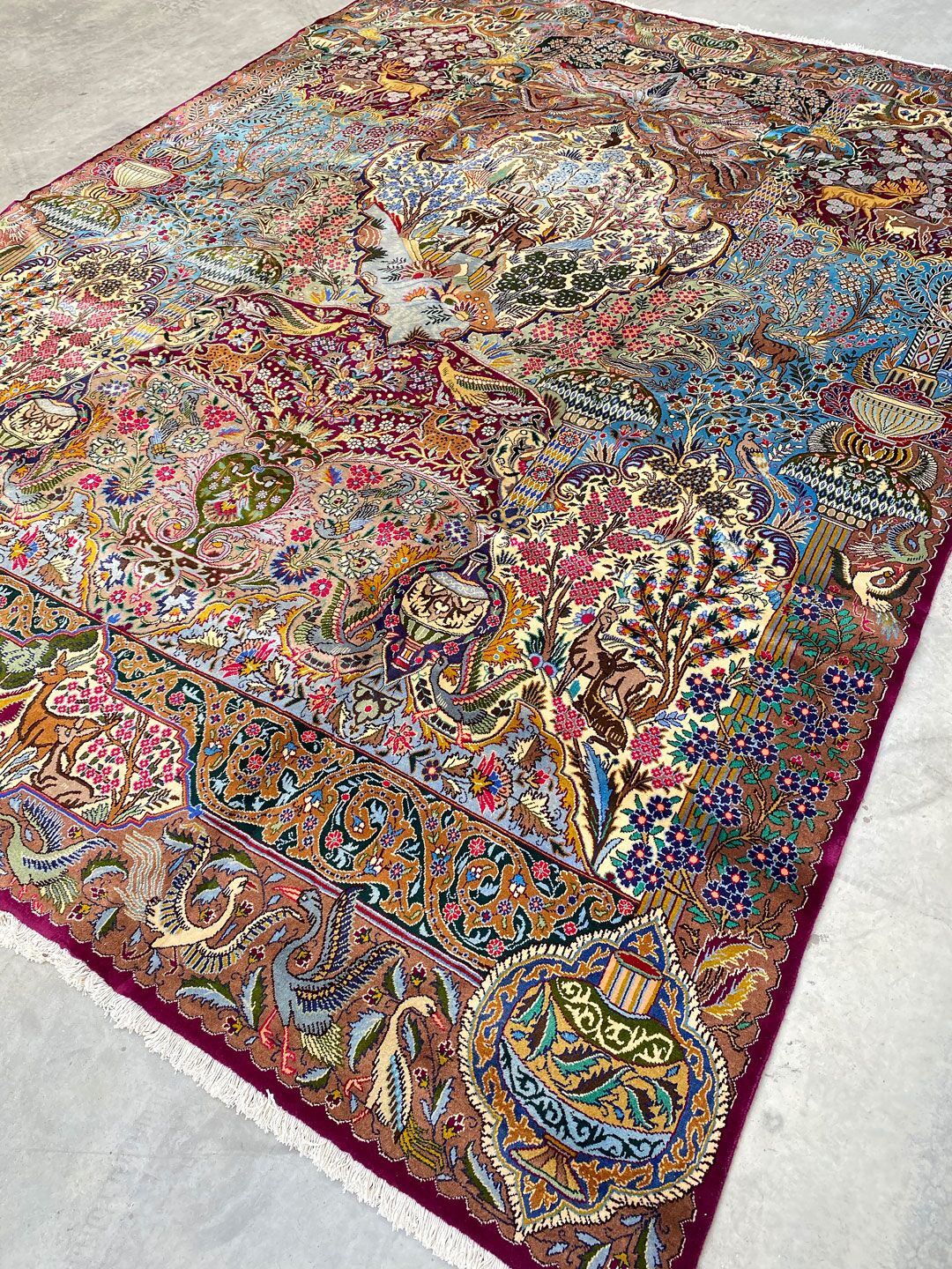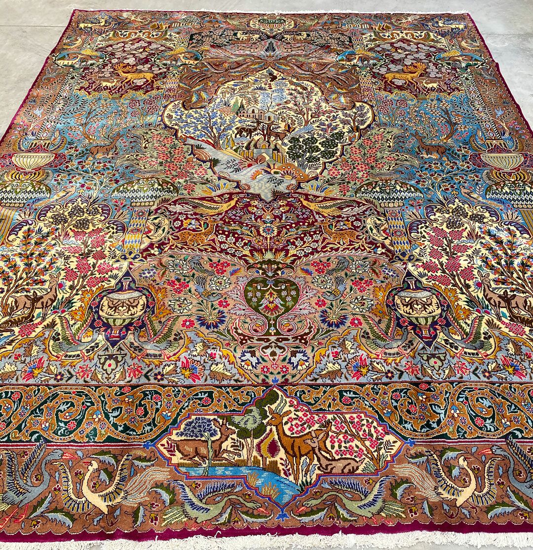 High Quality Massive Room Size Garden Of Eden Authentic Persian Kashmar Rug. Above All This Rug Would Look Like a Painting on Your Floor. It Also Has a Pure Lamb’s Wool Pile on Cotton Base. Multi-Color Tones Dyed Using Traditional Methods. It Is Fine Quality Piece Which Would Last A Life Time.