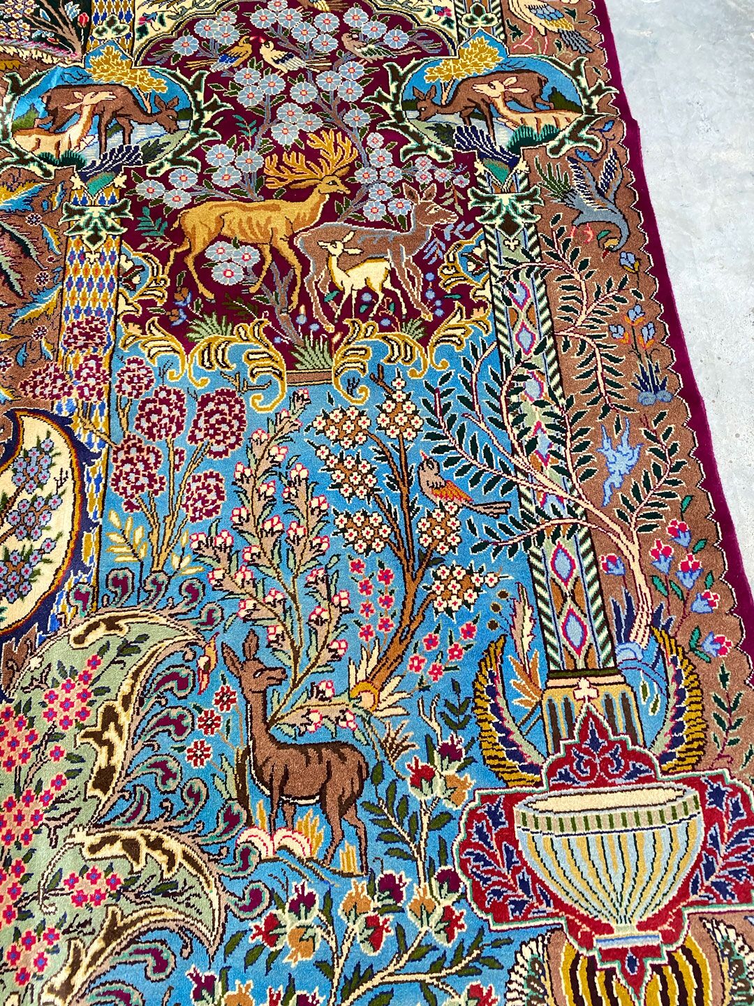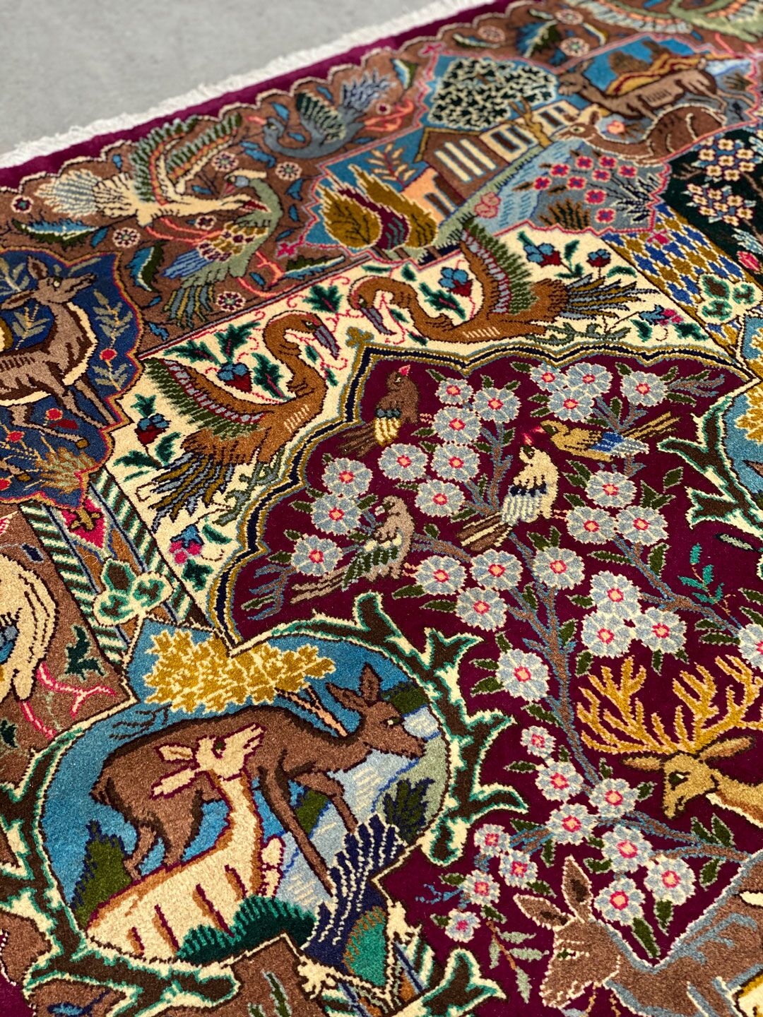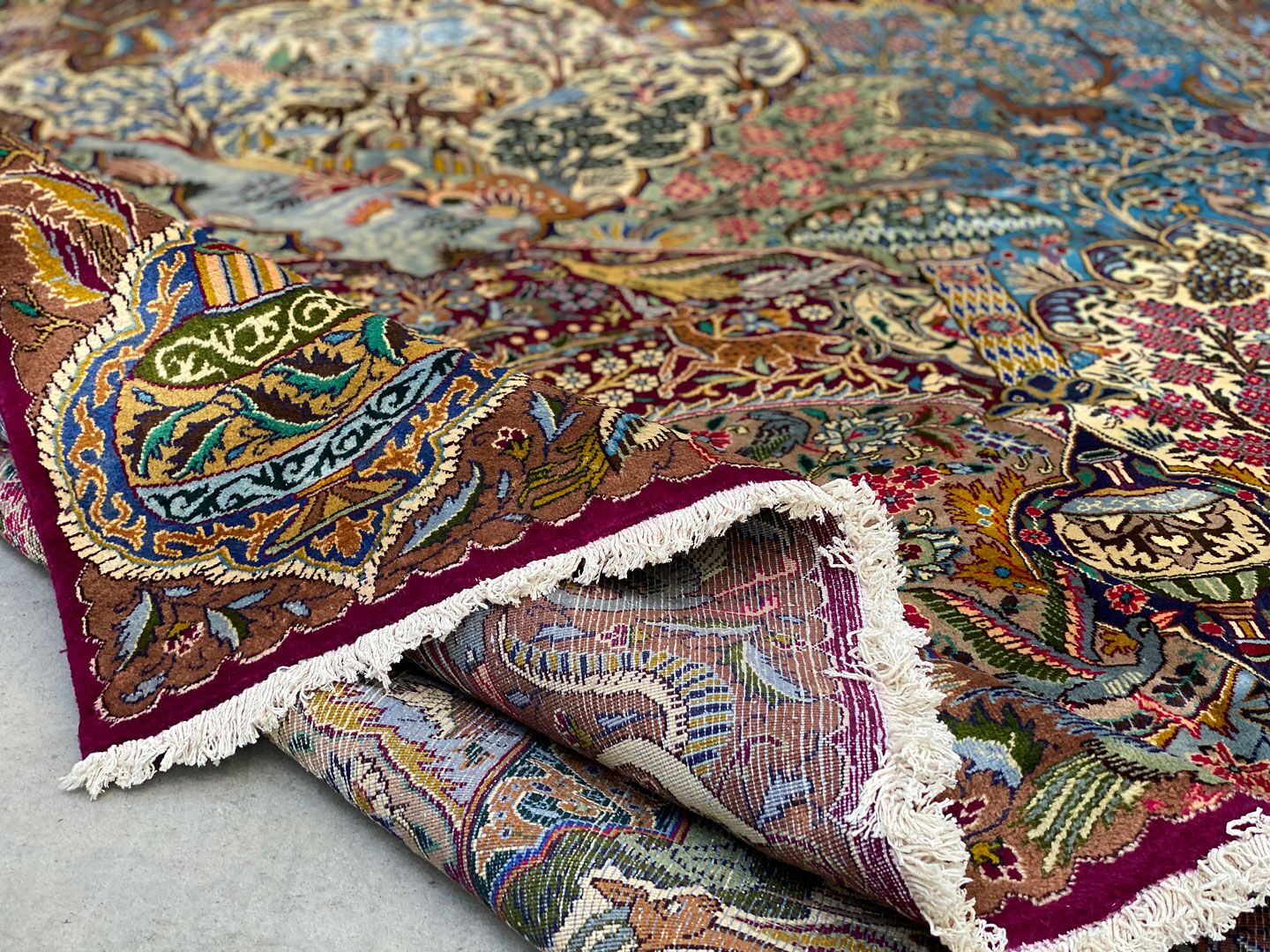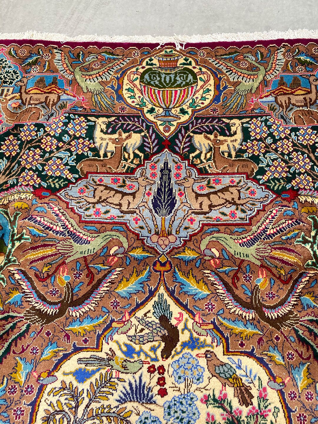 High Quality Massive Room Size Garden Of Eden Authentic Persian Kashmar Rug. Above All This Rug Would Look Like a Painting on Your Floor. It Also Has a Pure Lamb’s Wool Pile on Cotton Base. Multi-Color Tones Dyed Using Traditional Methods. It Is Fine Quality Piece Which Would Last A Life Time.