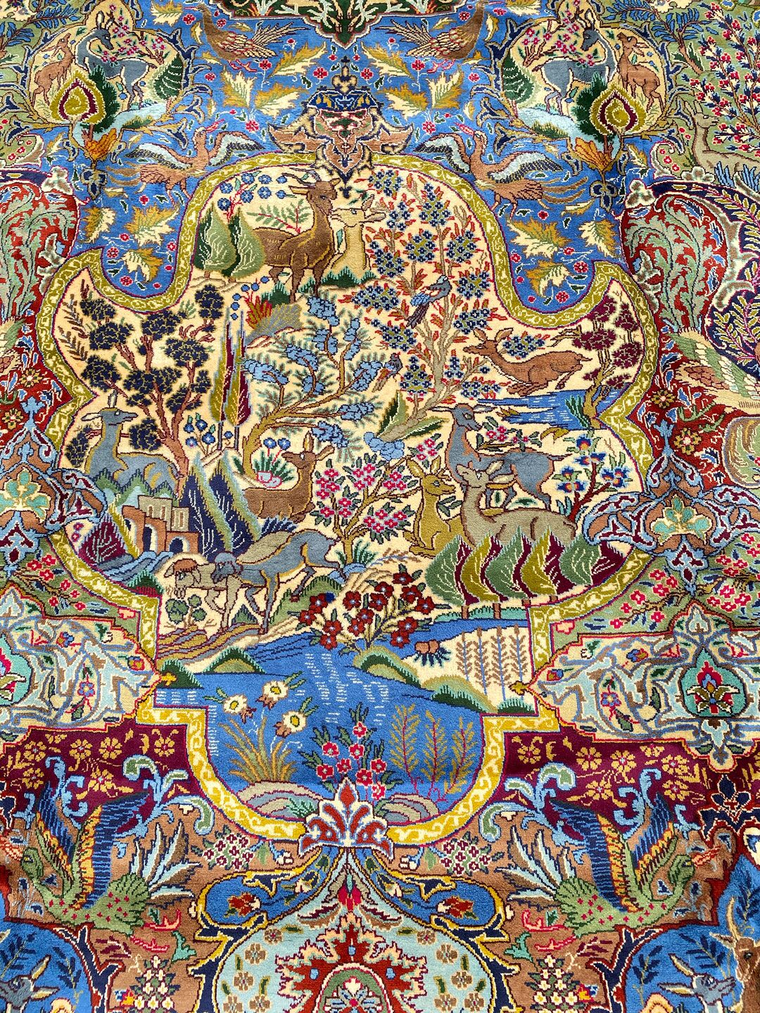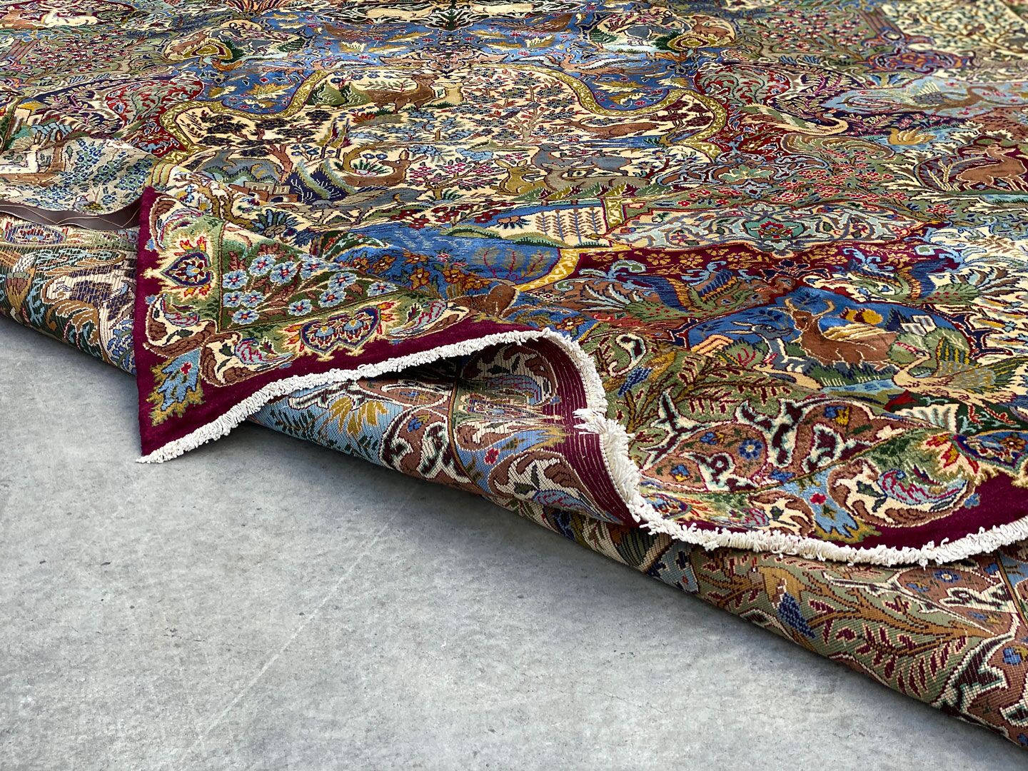 High Quality Massive Room Size Garden Of Eden Authentic Persian Kashmar Rug. Above All This Rug Would Look Like a Painting on Your Floor. It Also Has a Pure Lamb’s Wool Pile on Cotton Base. Multi-Color Tones Dyed Using Traditional Methods. It Is Fine Quality Piece Which Would Last A Life Time.