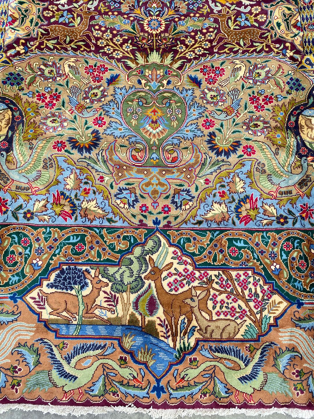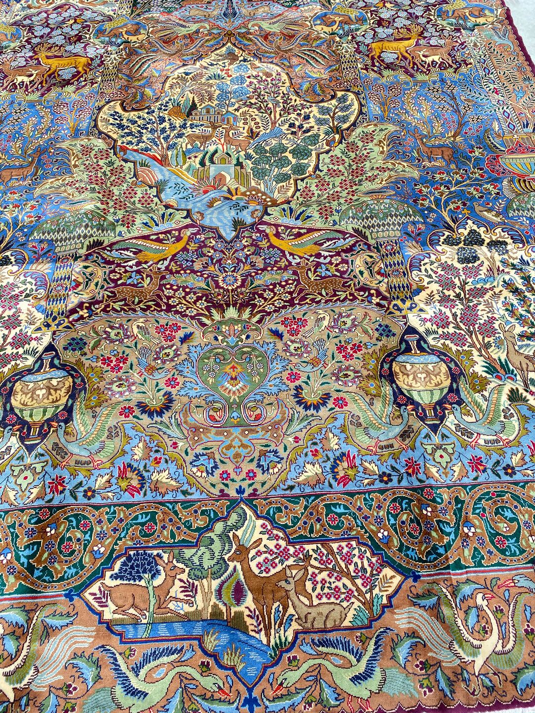 High Quality Massive Room Size Garden Of Eden Authentic Persian Kashmar Rug. Above All This Rug Would Look Like a Painting on Your Floor. It Also Has a Pure Lamb’s Wool Pile on Cotton Base. Multi-Color Tones Dyed Using Traditional Methods. It Is Fine Quality Piece Which Would Last A Life Time.