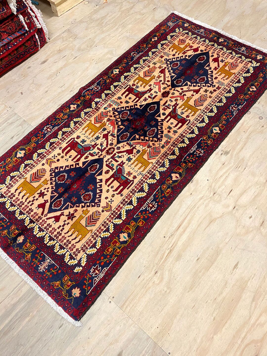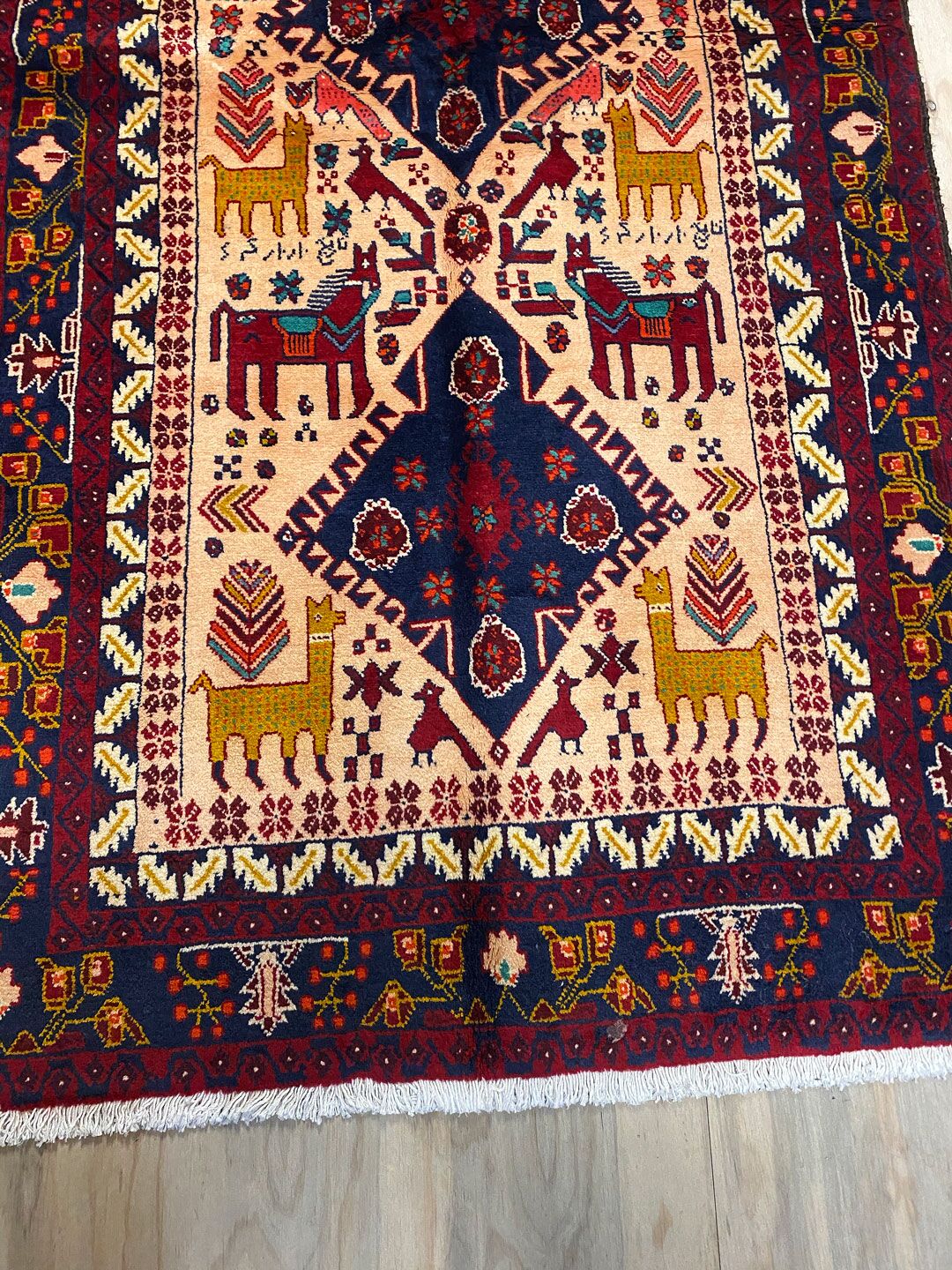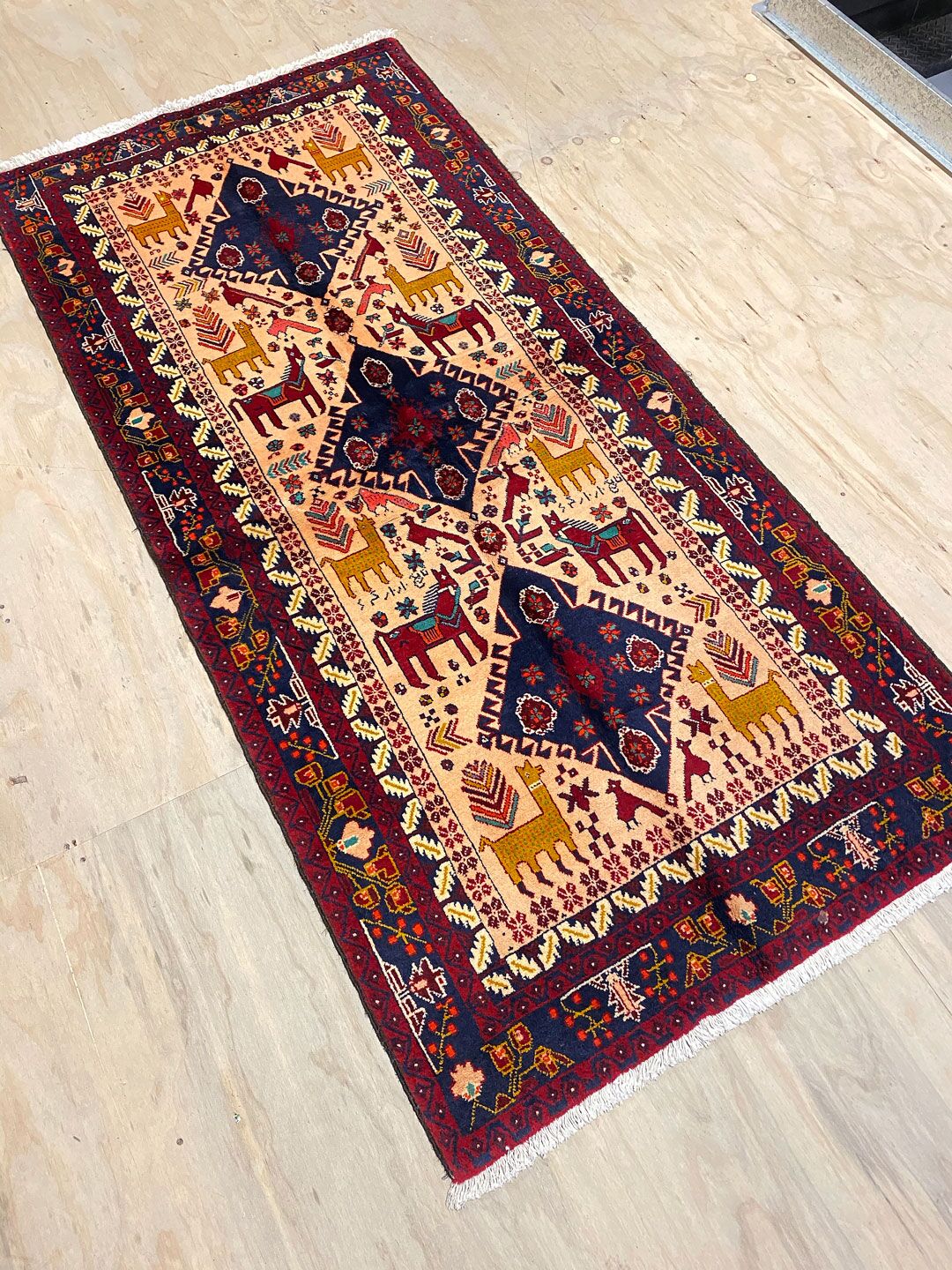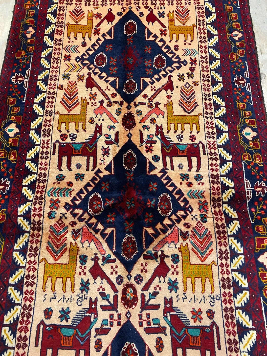 – Imaginative Pattern: The Geometric design with lots of animal motifs is a one-off tribal art work, originating from the weaver’s imagination.