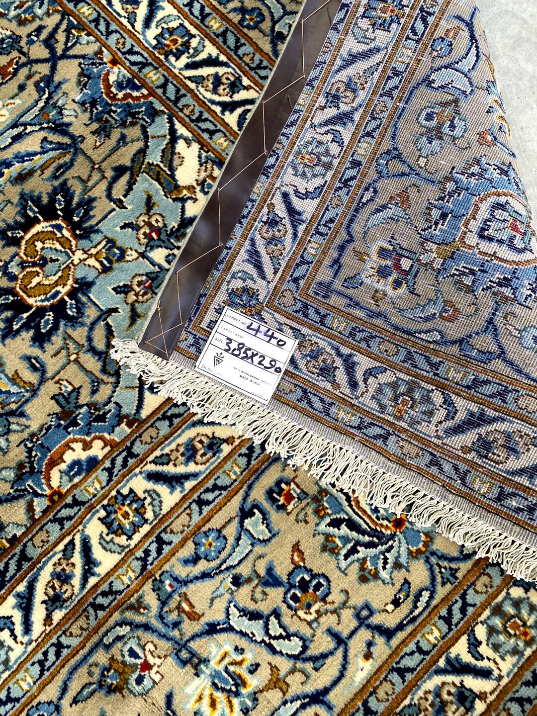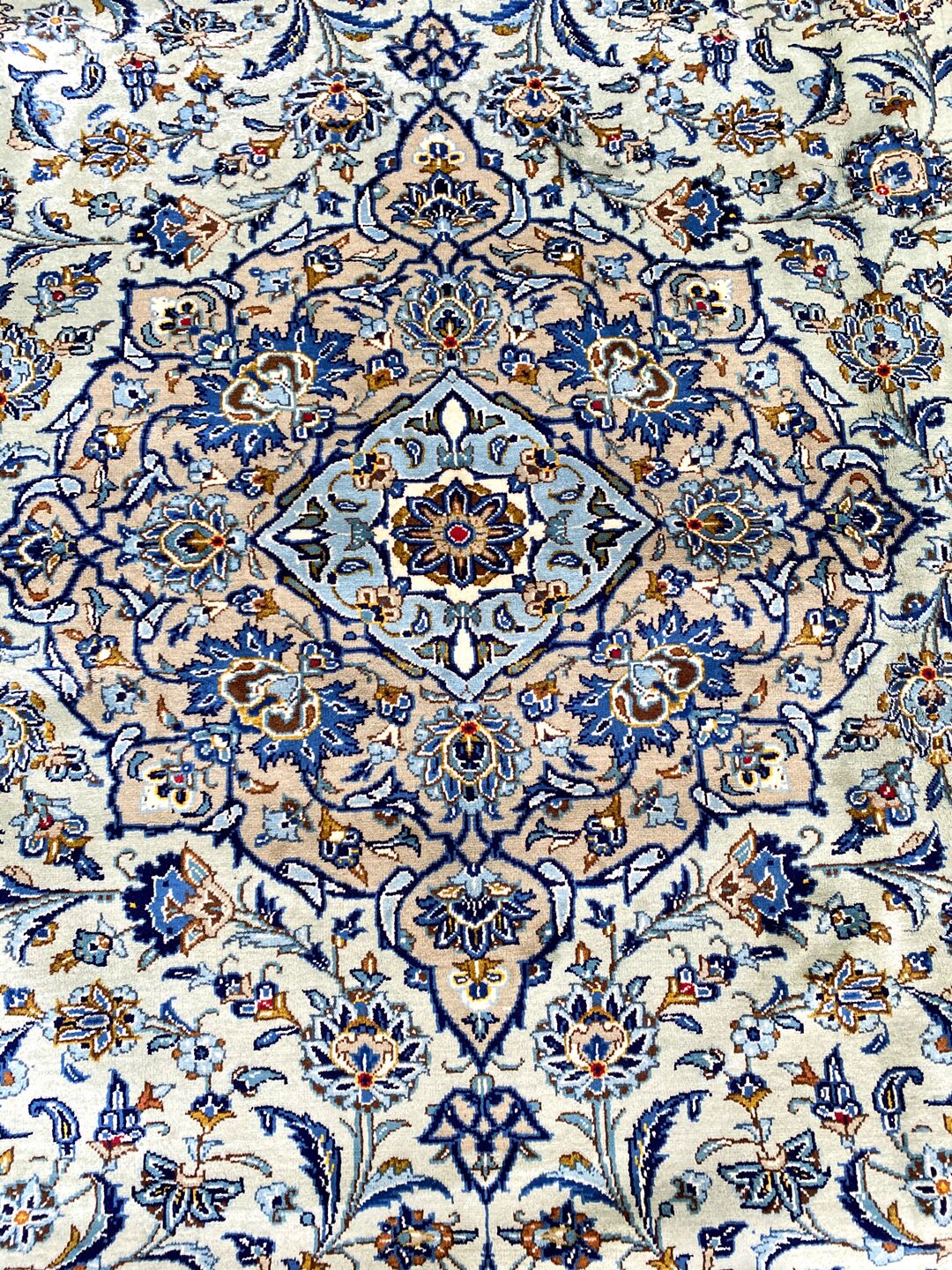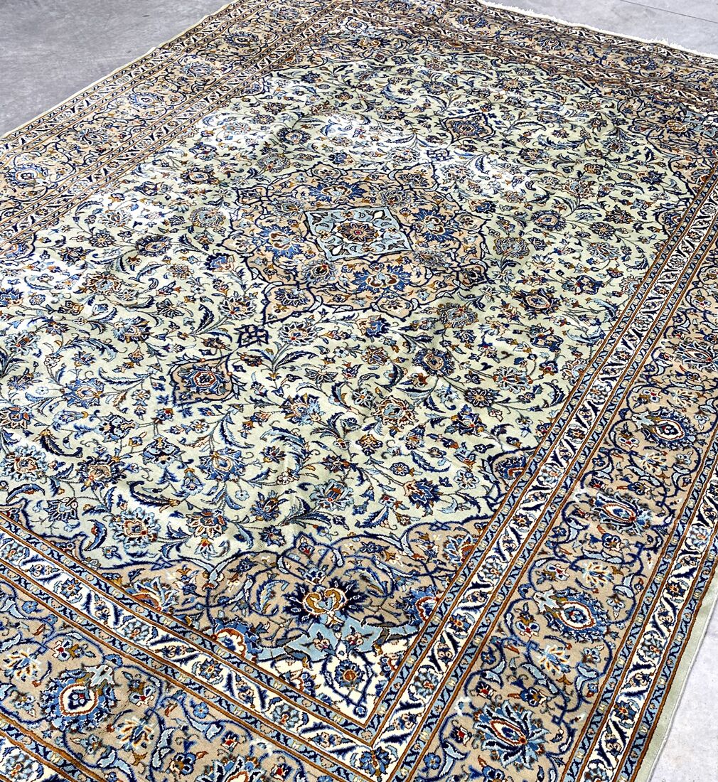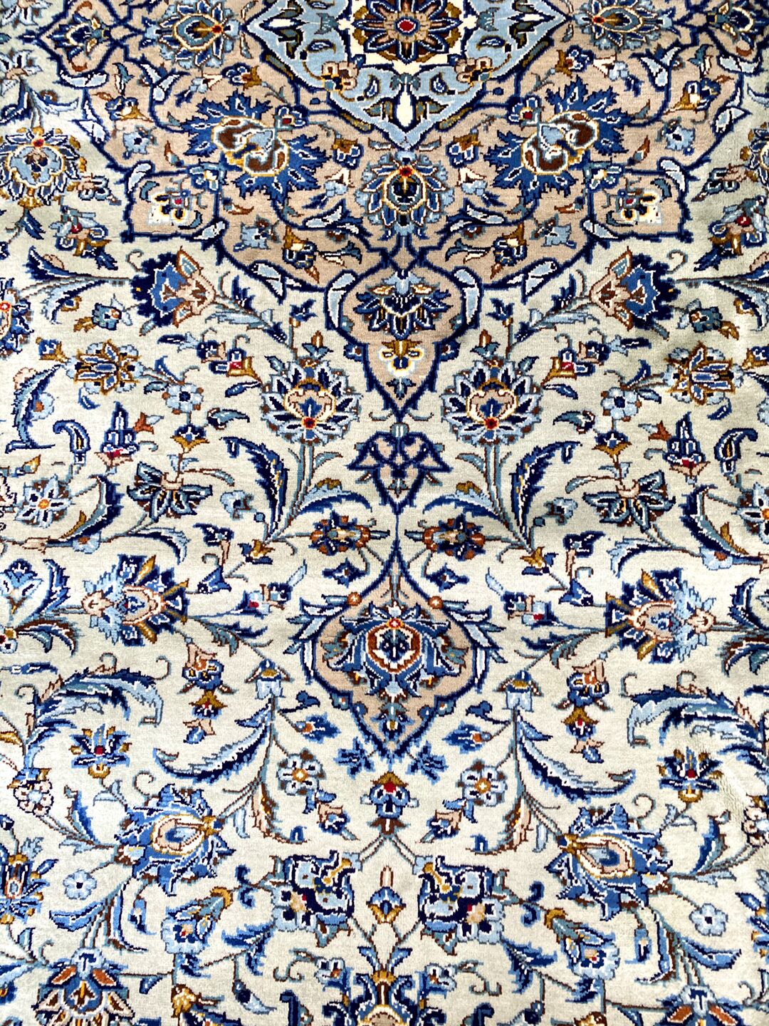 Large Room Size Authentic Persian Kashan Rug. Above All It Is Hard To Get This Quality Hand Made Rug In This Color. Pure Lamb’s Wool Pile On Cotton Base. Rare Pistachio Tones Dyed Using Traditional Methods. It Is Also Fine Quality Piece Which Would Last A Life Time.