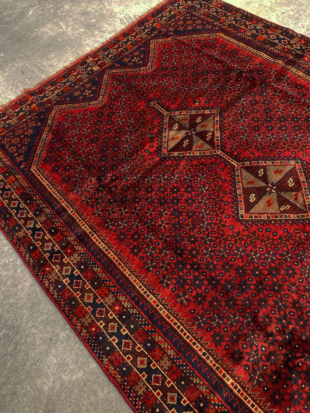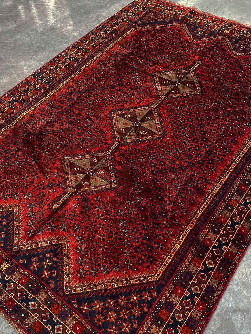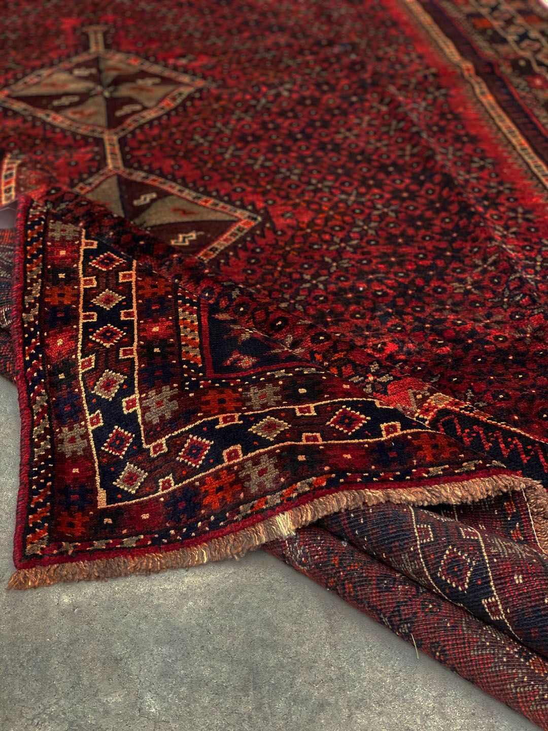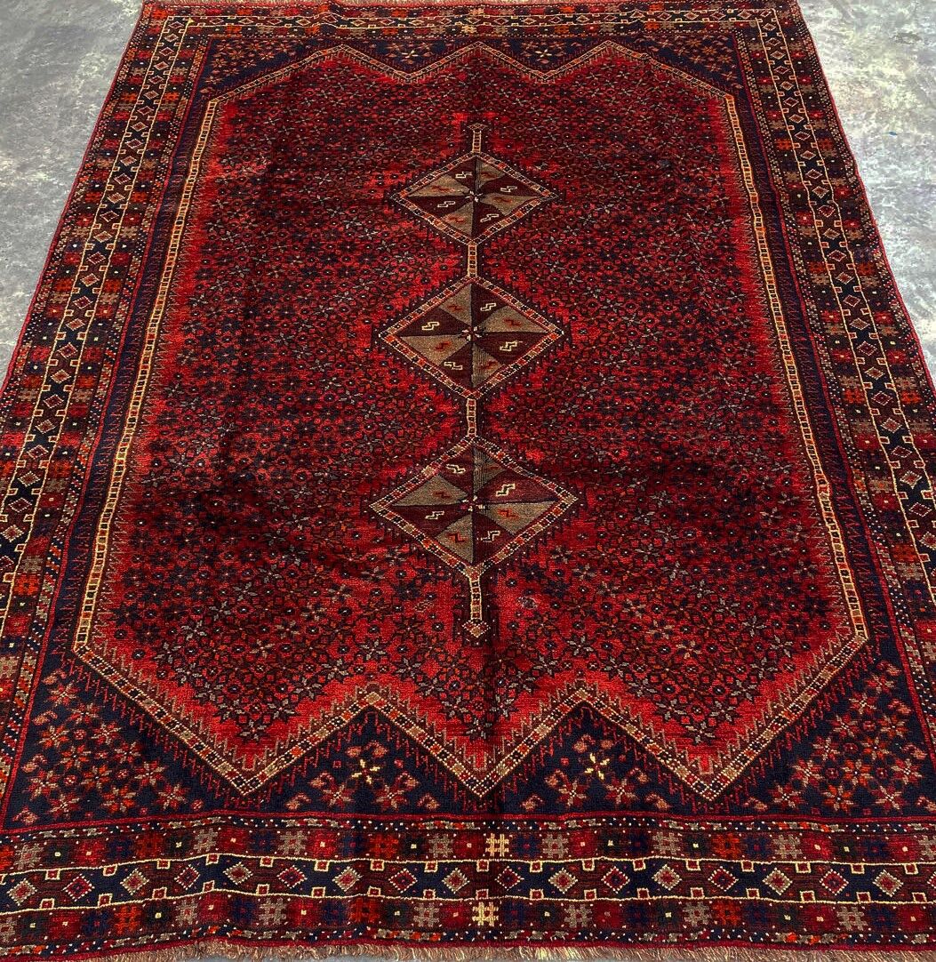 Heavy Quality Wide Persian Shiraz Rug. It Has A Dense Pile Which Will Last For Generations And Will Become The Antique Of Tomorrow. Pure Hand Spun Wool Pile On Wool Base Deep Red Tone Dyed Using Traditional Methods.