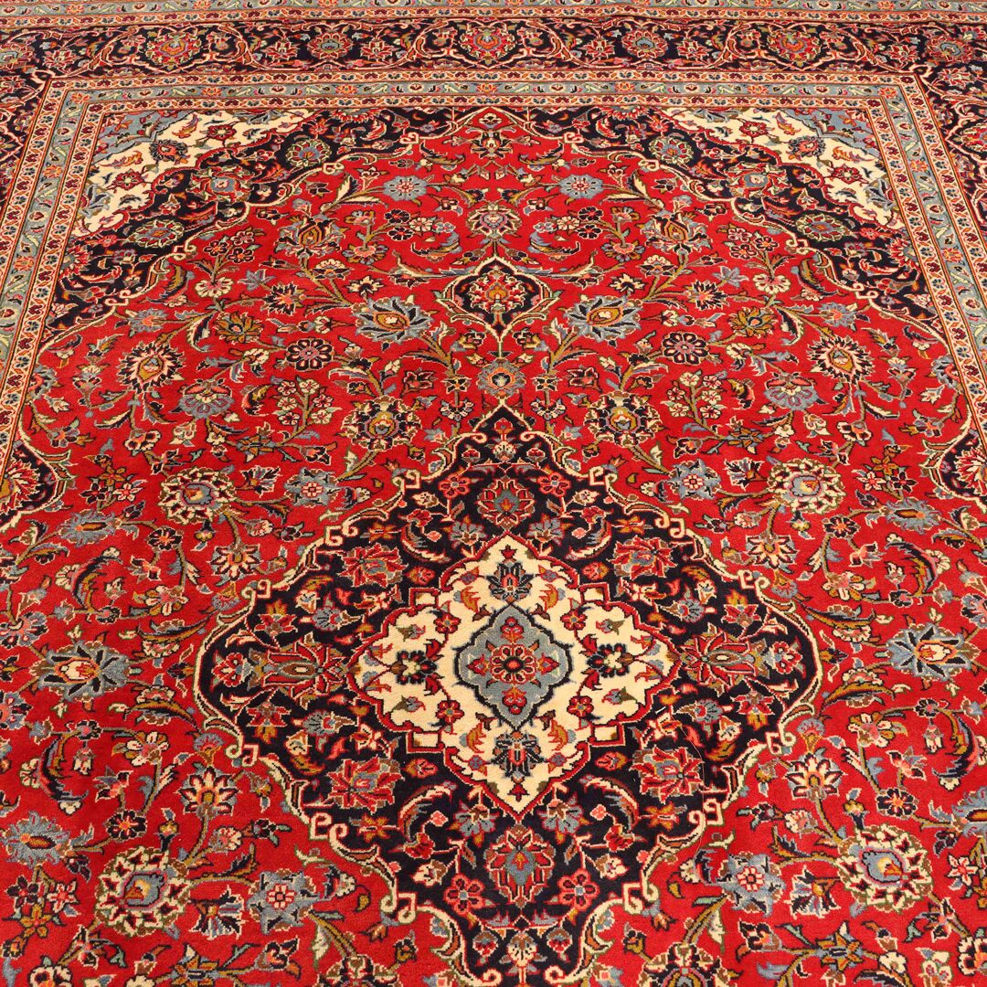 – Historic Origin: Originating from Kashan, Iran, this large room size Persian Kashan rug holds a rich history dating back to the 17th century.