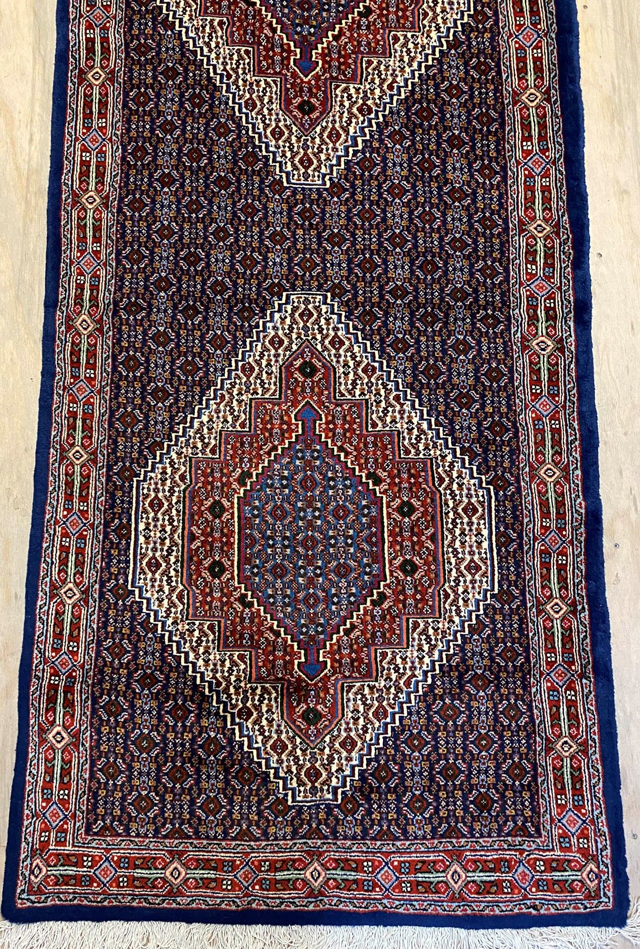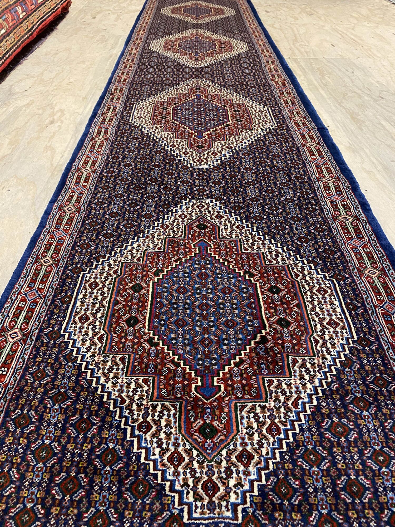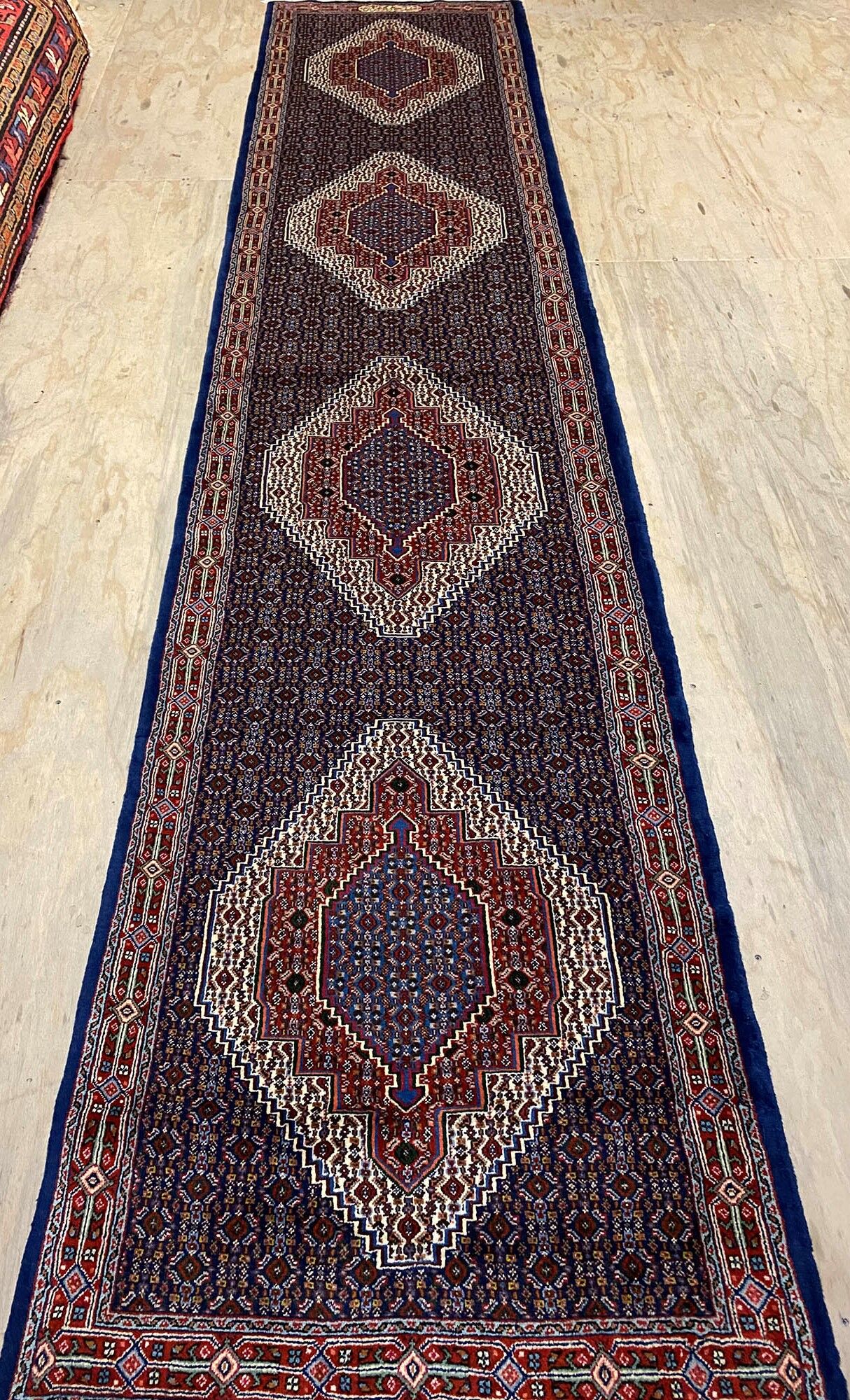 – Superb Craftsmanship: Discover the quality of a superb hand-knotted Senneh Bijar runner, a rare find from the Kurdish Province. Crafted with pure lamb’s wool pile on fine cotton, it offers a dense and luxurious feel.