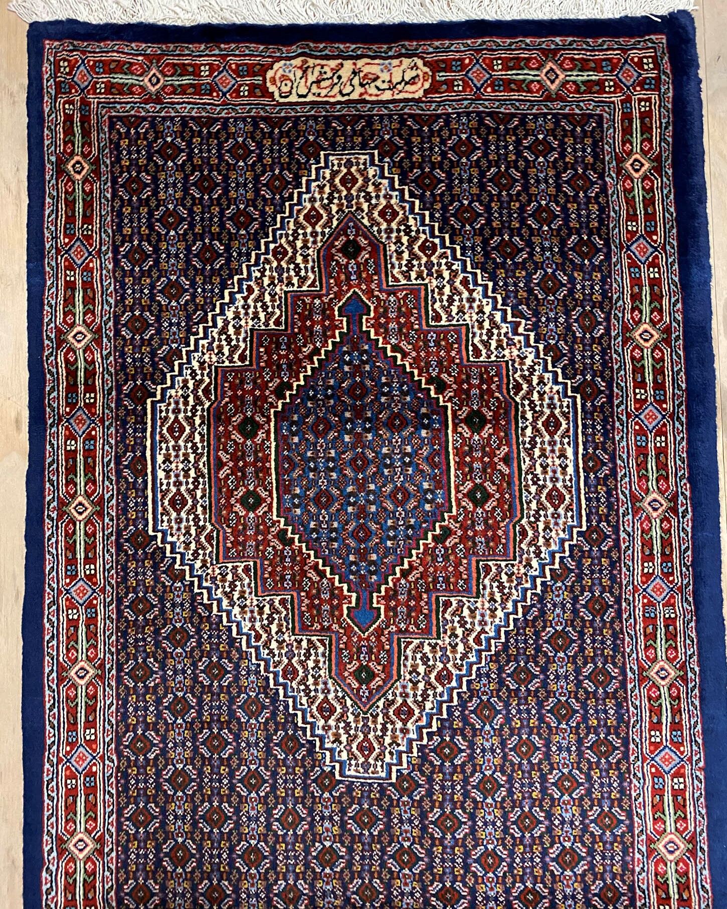Signed and Certified Hand-Knotted Kurdish Senneh Bijar Runner