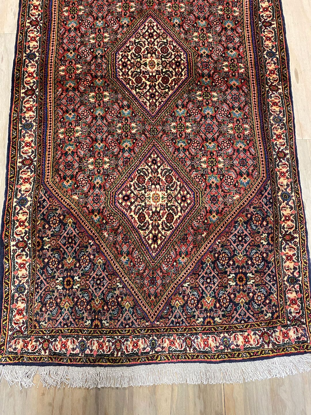 Rare 4m Hand Knotted Persian Senneh Bijar Runner. Above All It Is Hard To Find This Quality Original Handmade Hall Runners. It Has a Pure Lamb’s Wool Pile on Fine Cotton. Indigo Blue Tone Dyed Using Traditional Methods. Dense Quality from Sanandaj.