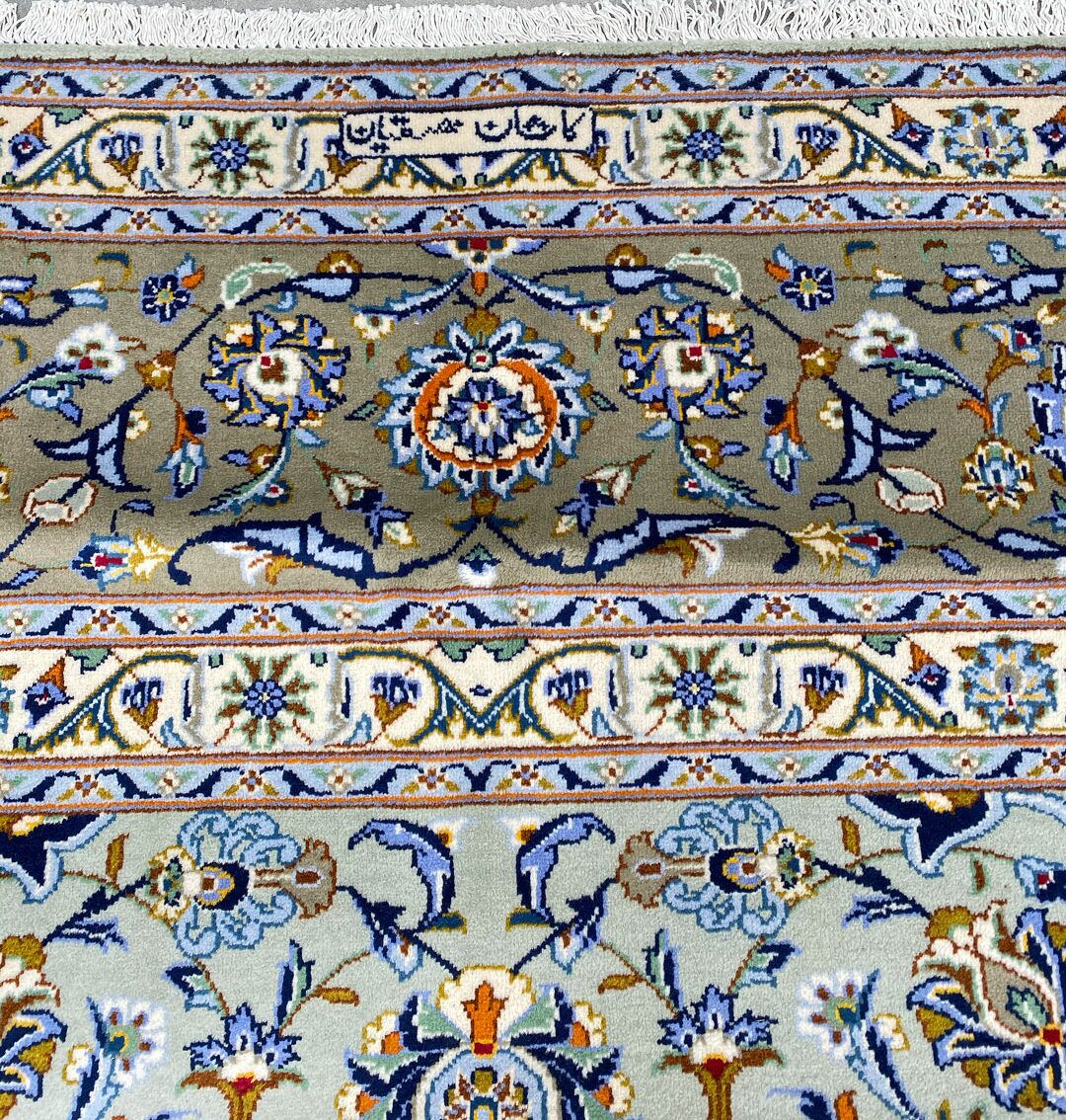 Signed Certified Hand Knotted Pistachio Tone Persian Kashan Rug