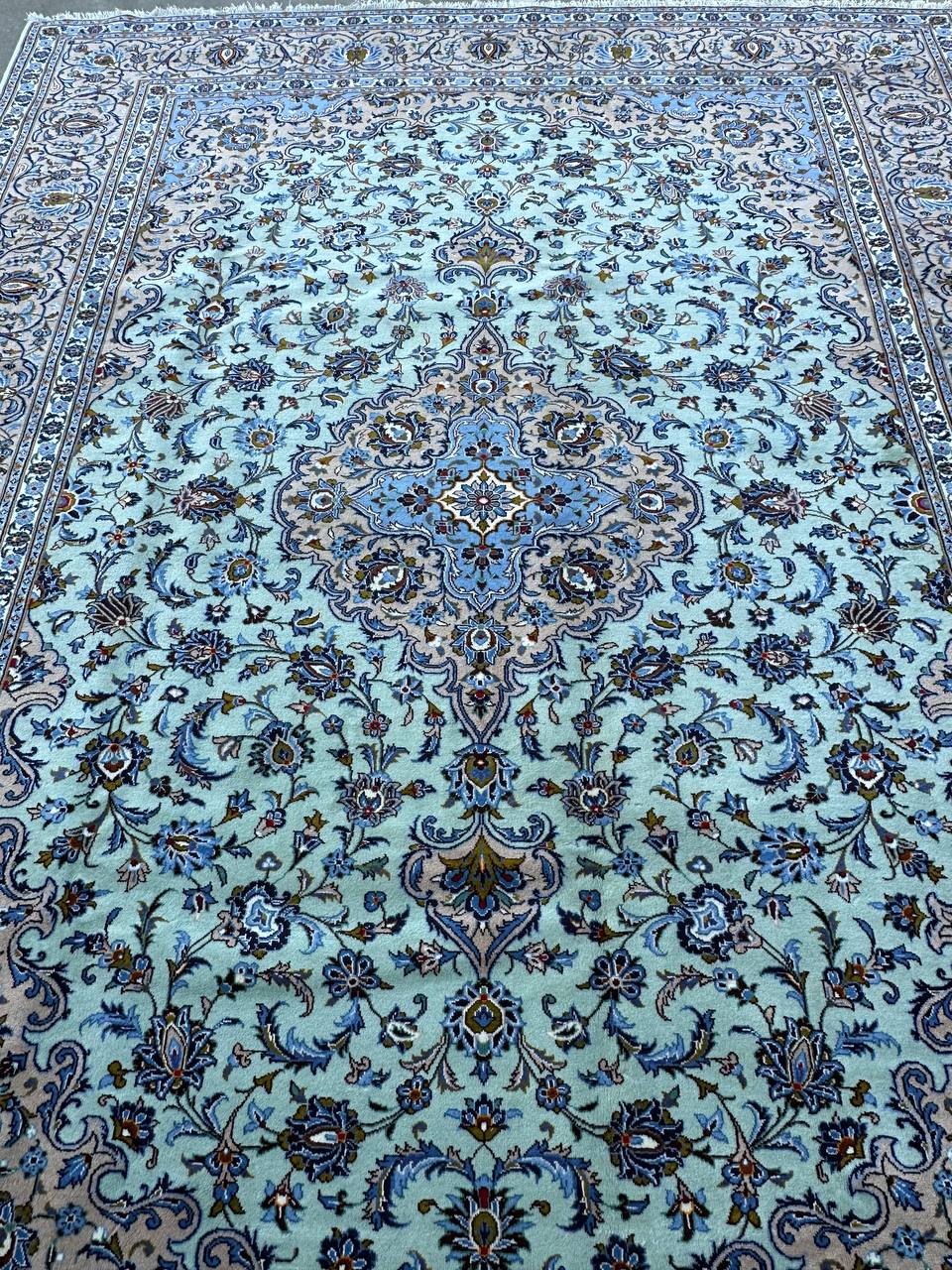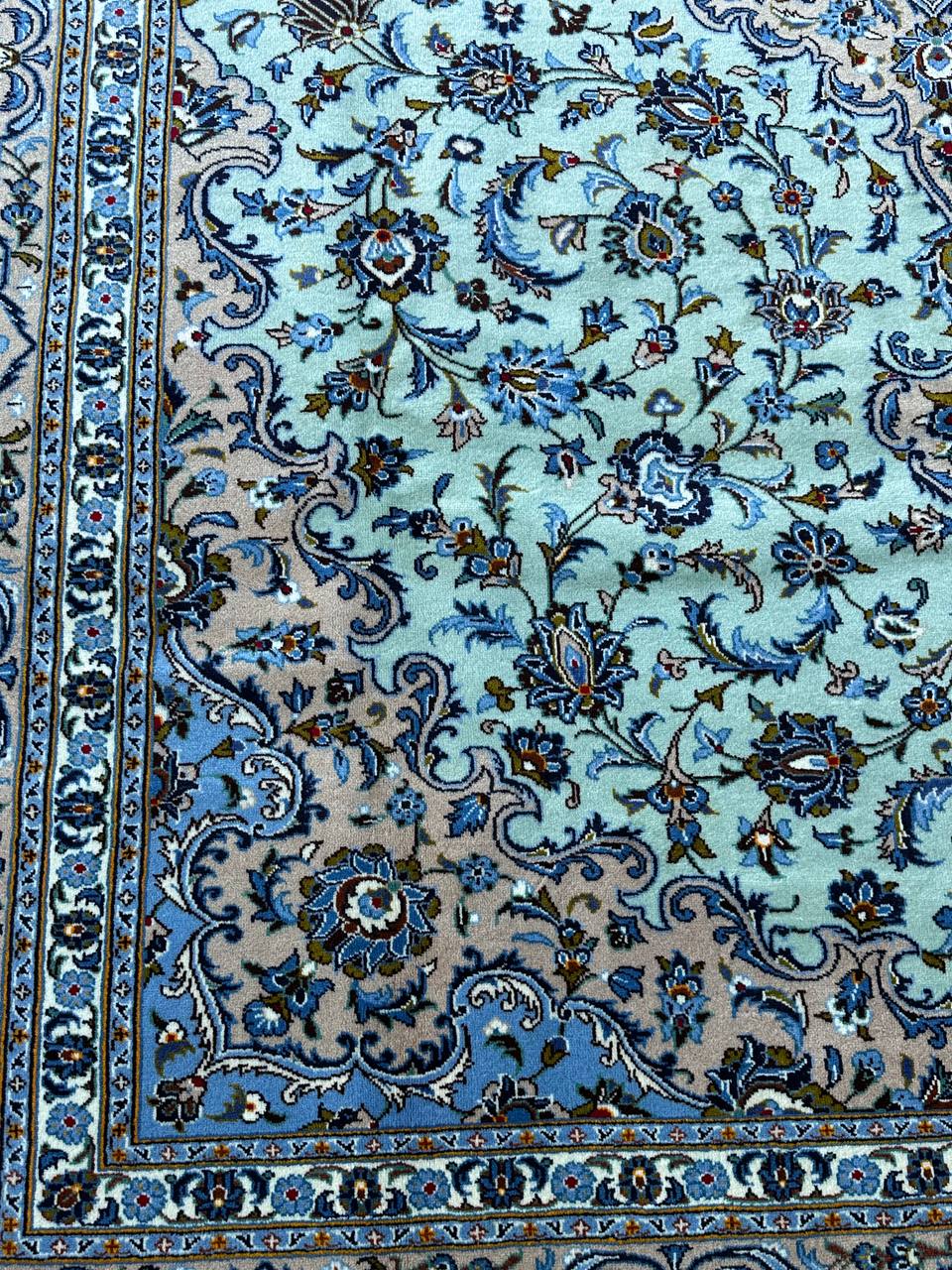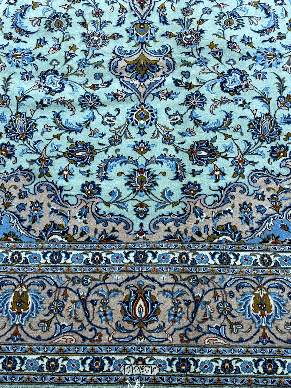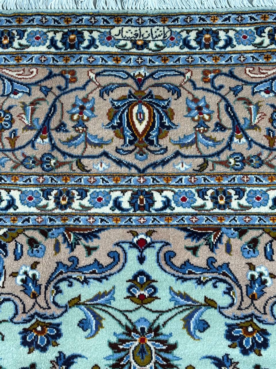 Be the first to review “4x3M Signed Pistachio Tone Persian Kashan Rug”