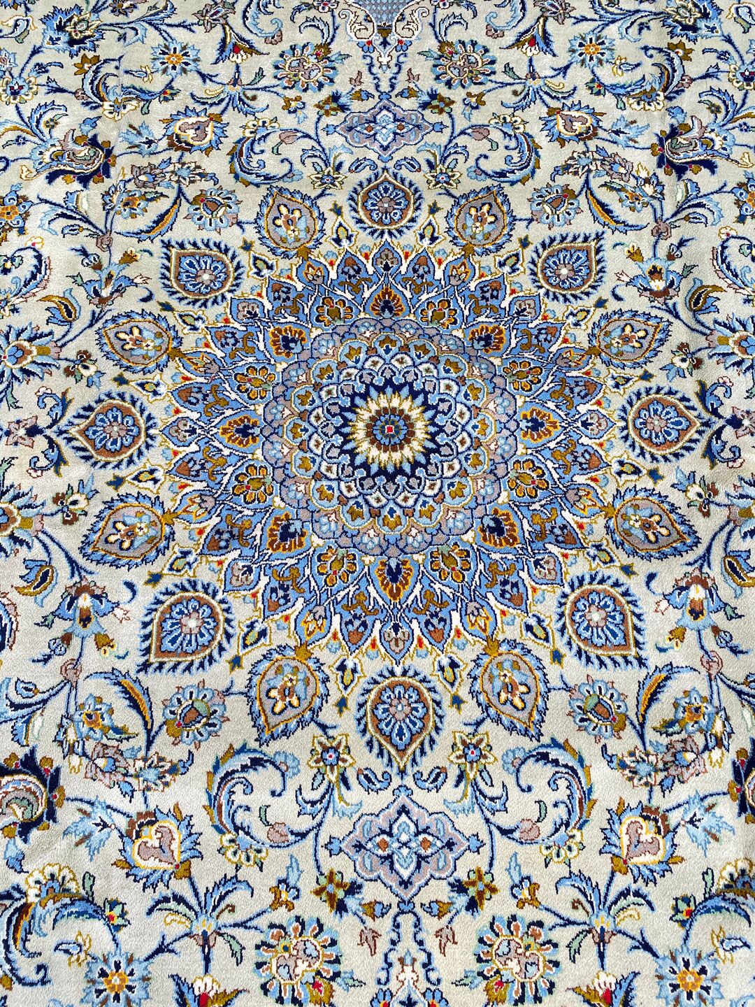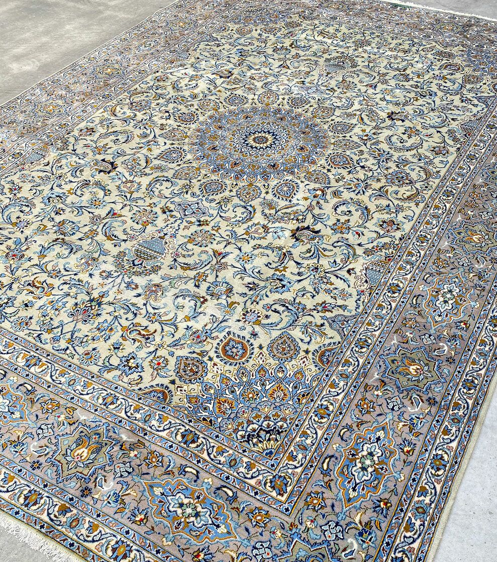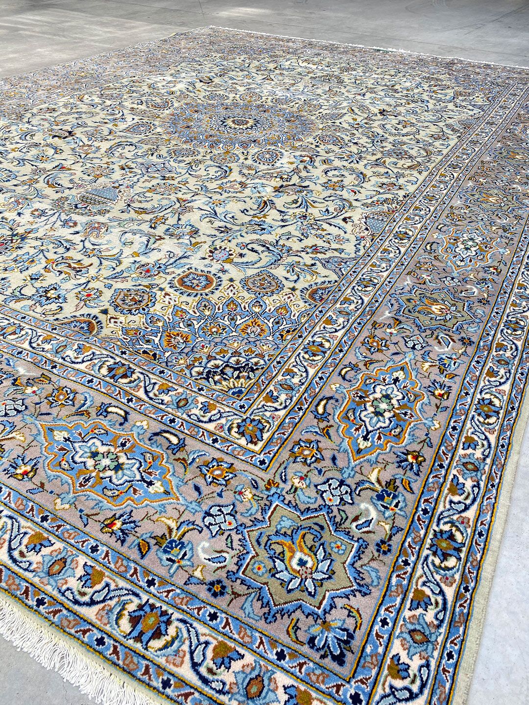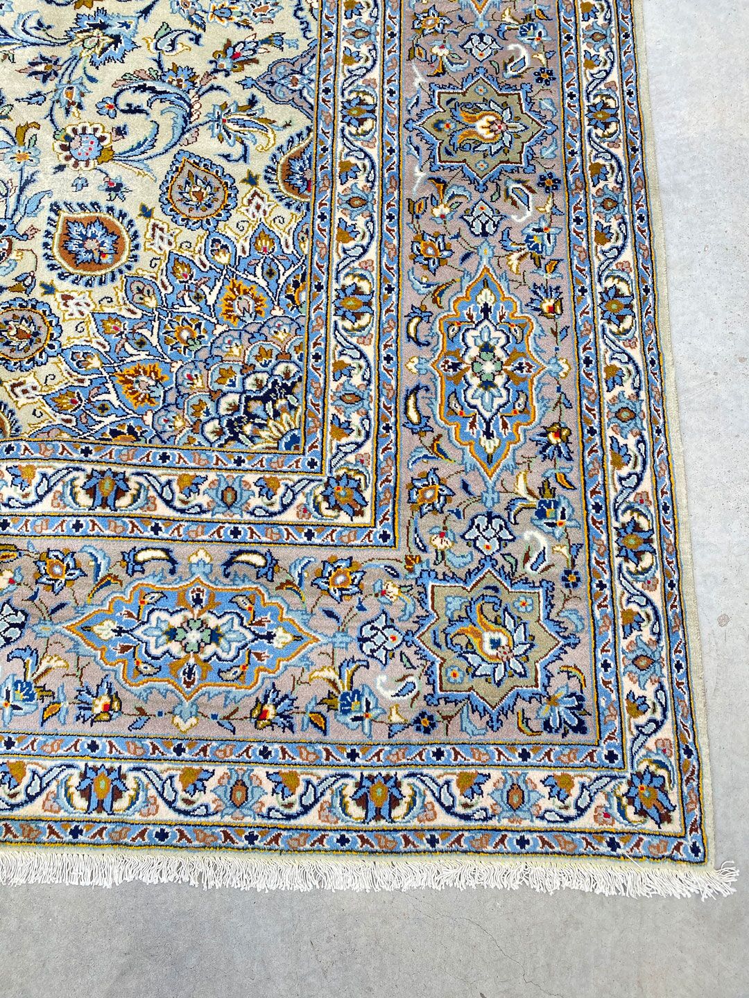 Large Room Size Authentic Persian Kashan Rug. Above All It Is Hard To Get This Quality Hand Made Rug In This Color. Pure Lamb’s Wool Pile On Cotton Base. Rare Pistachio Tones Dyed Using Traditional Methods. It Is Also Fine Quality Piece Which Would Last A Life Time.