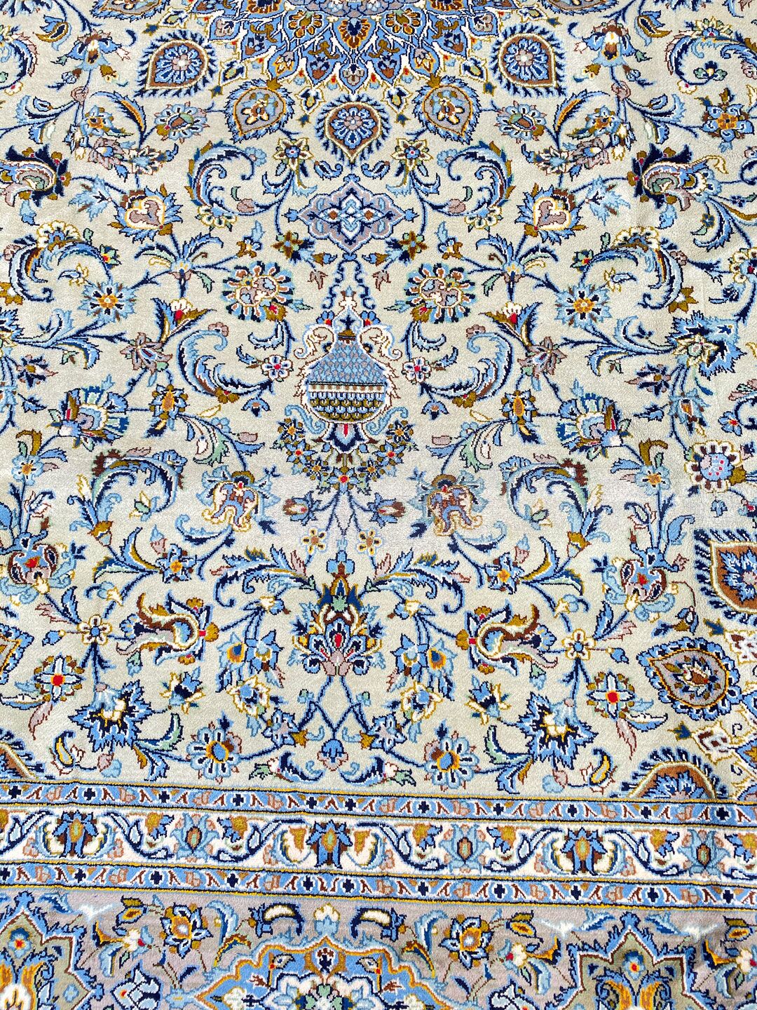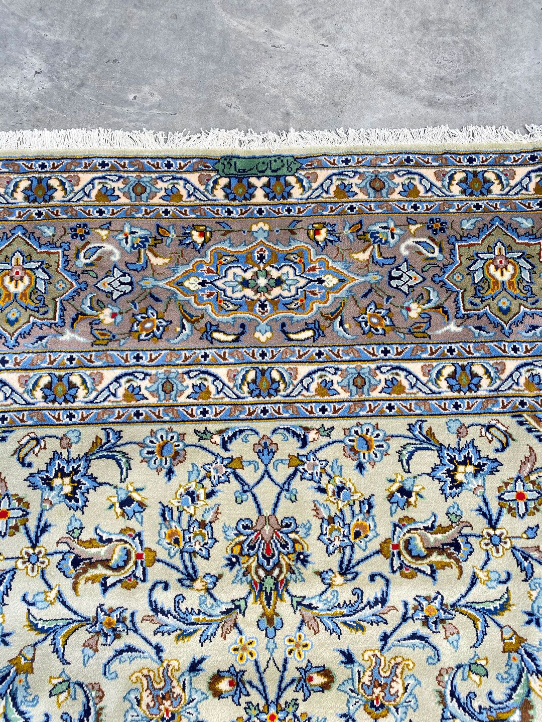SIGNED Certified Hand Knotted Pistachio Tone Persian Kashan Rug