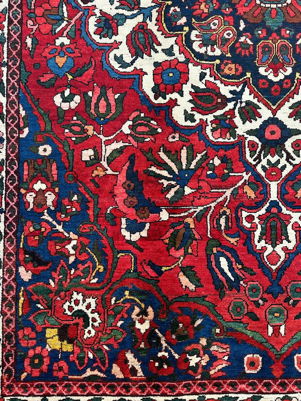 – Origin: Immerse yourself in the beauty of this amazing full room size Garden Design Handmade Persian Bakhtiari Rug, handwoven in South Persia by the Tribe of Bakhtiari.