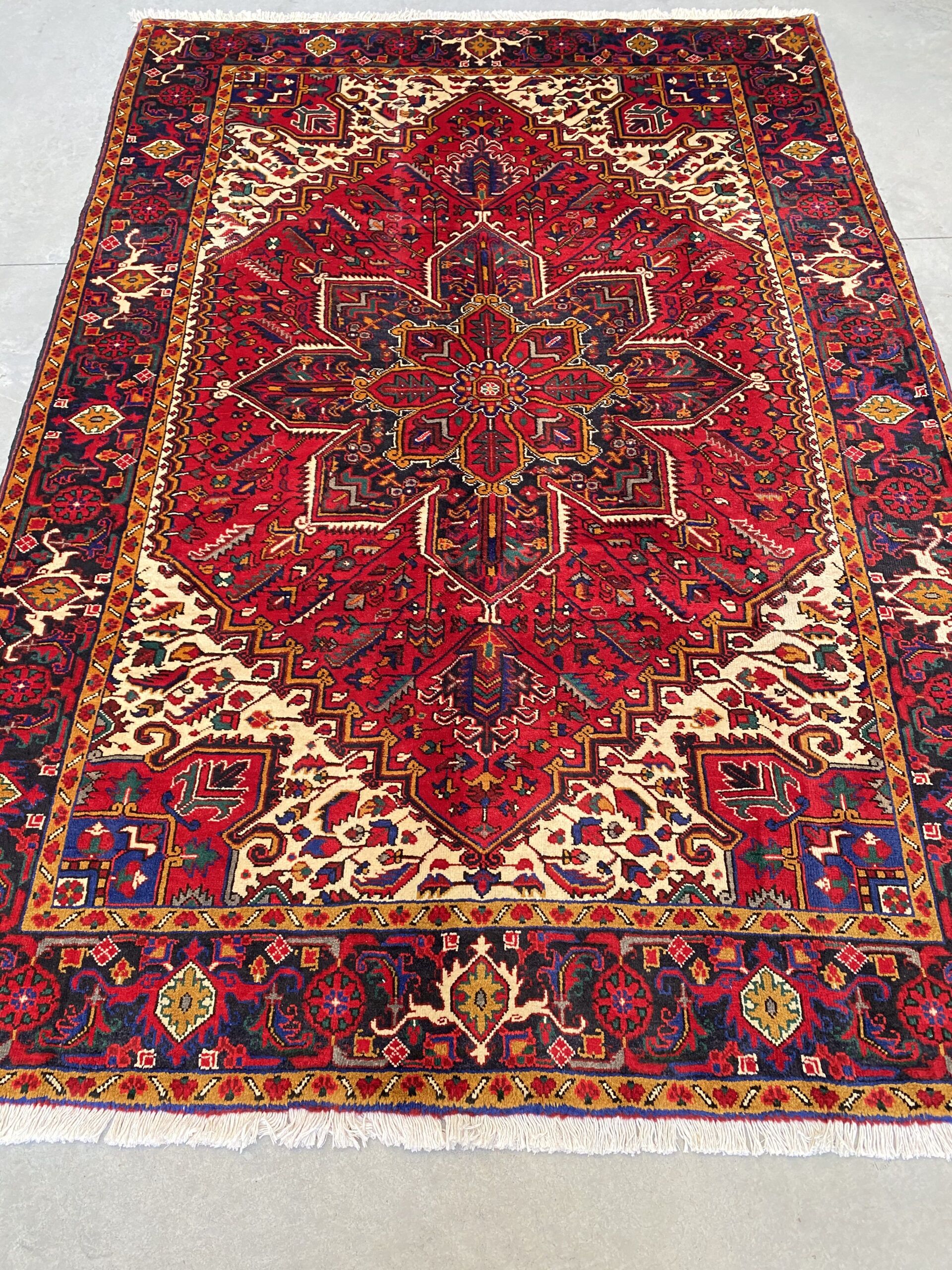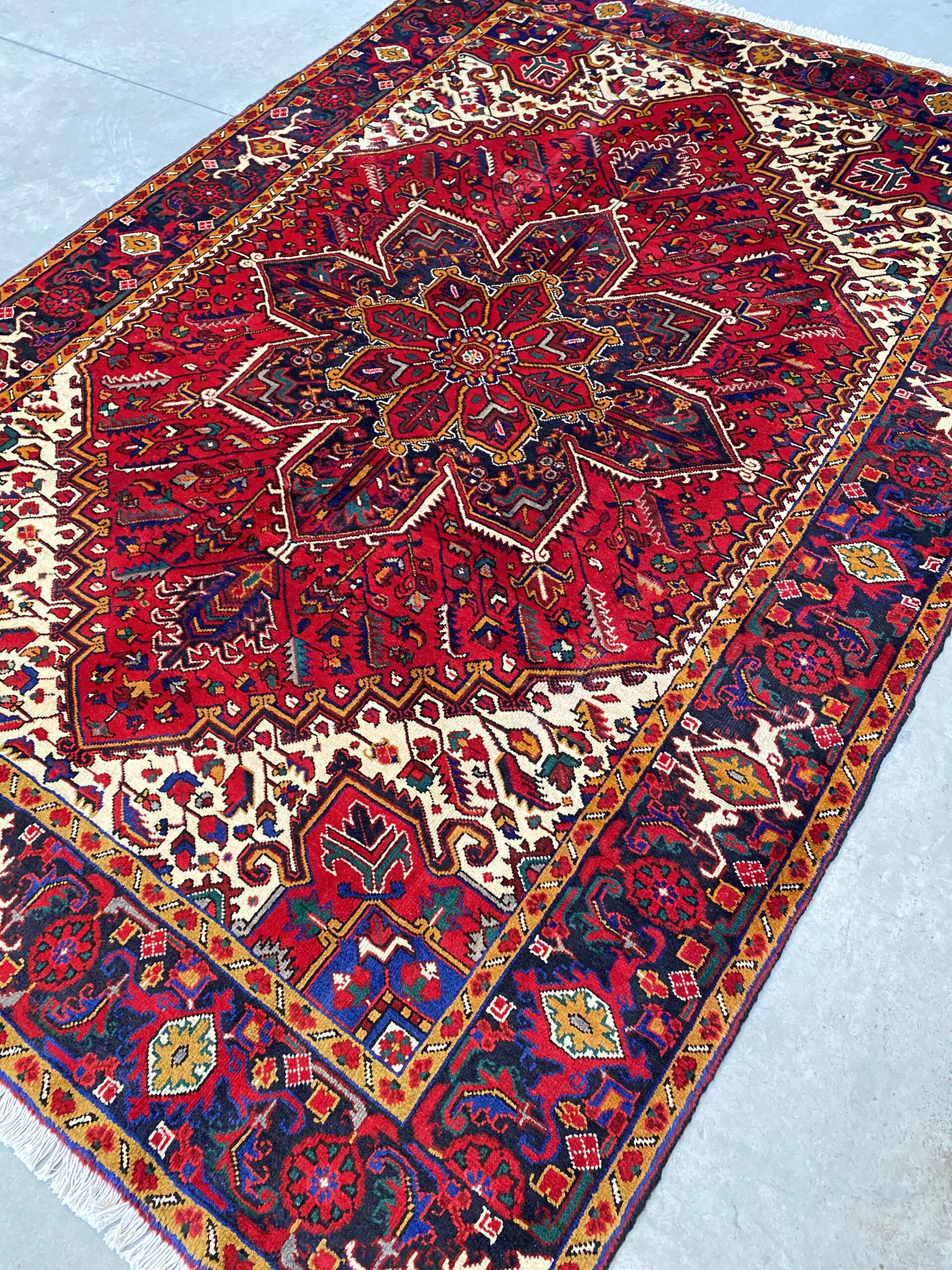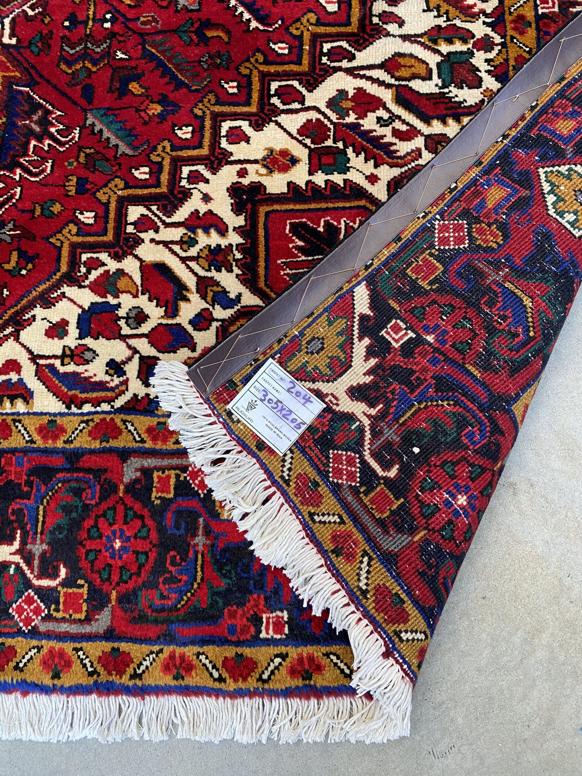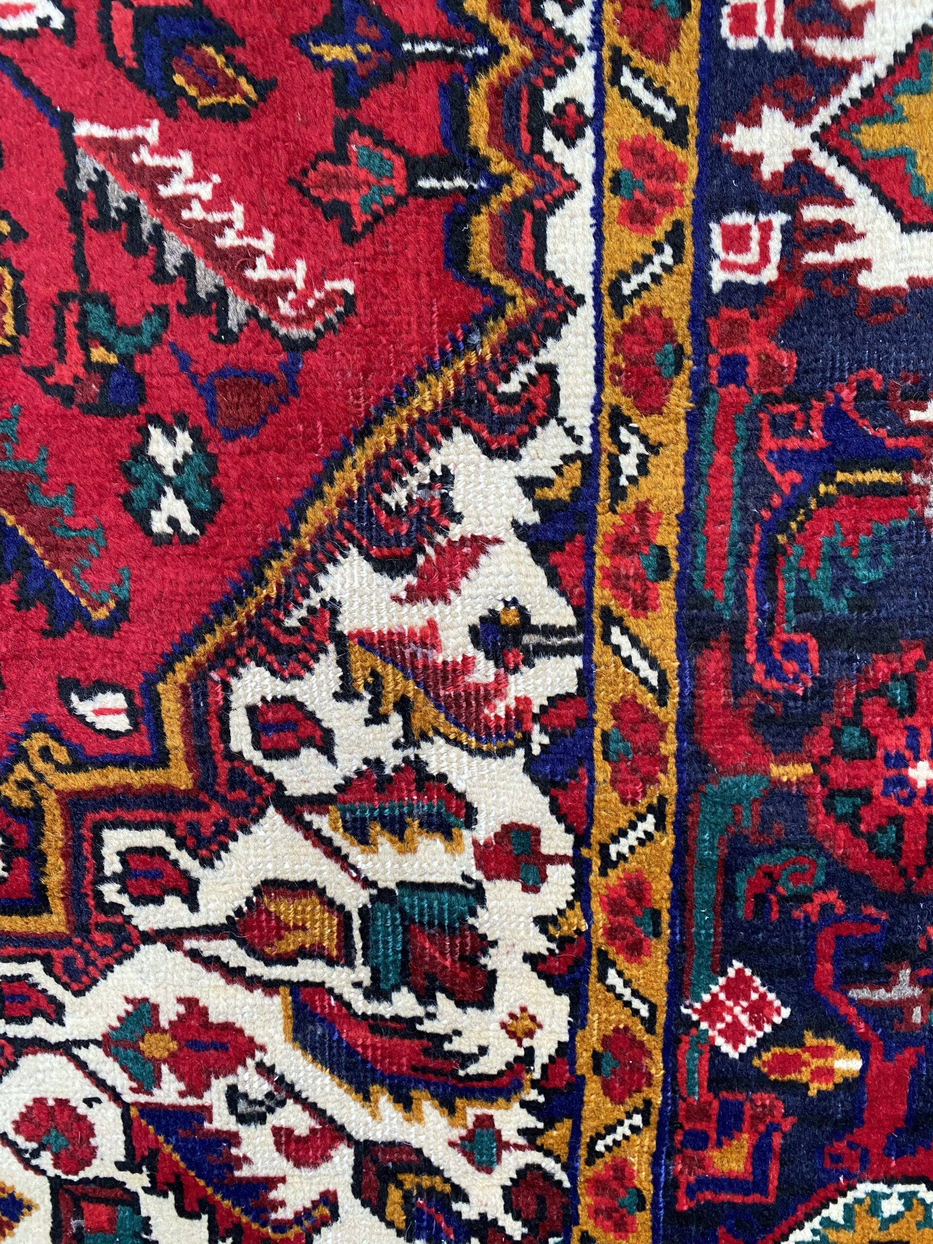 Rare Vintage Full Room Size Double Knotted Persian Heriz Rug. Above All It Is Hard To Find This Quality Hand Made Carpet From This Region. It Also Has A Pure Wool Pile On Cotton Base. Vibrant Tones Dyed Using Traditional Methods.