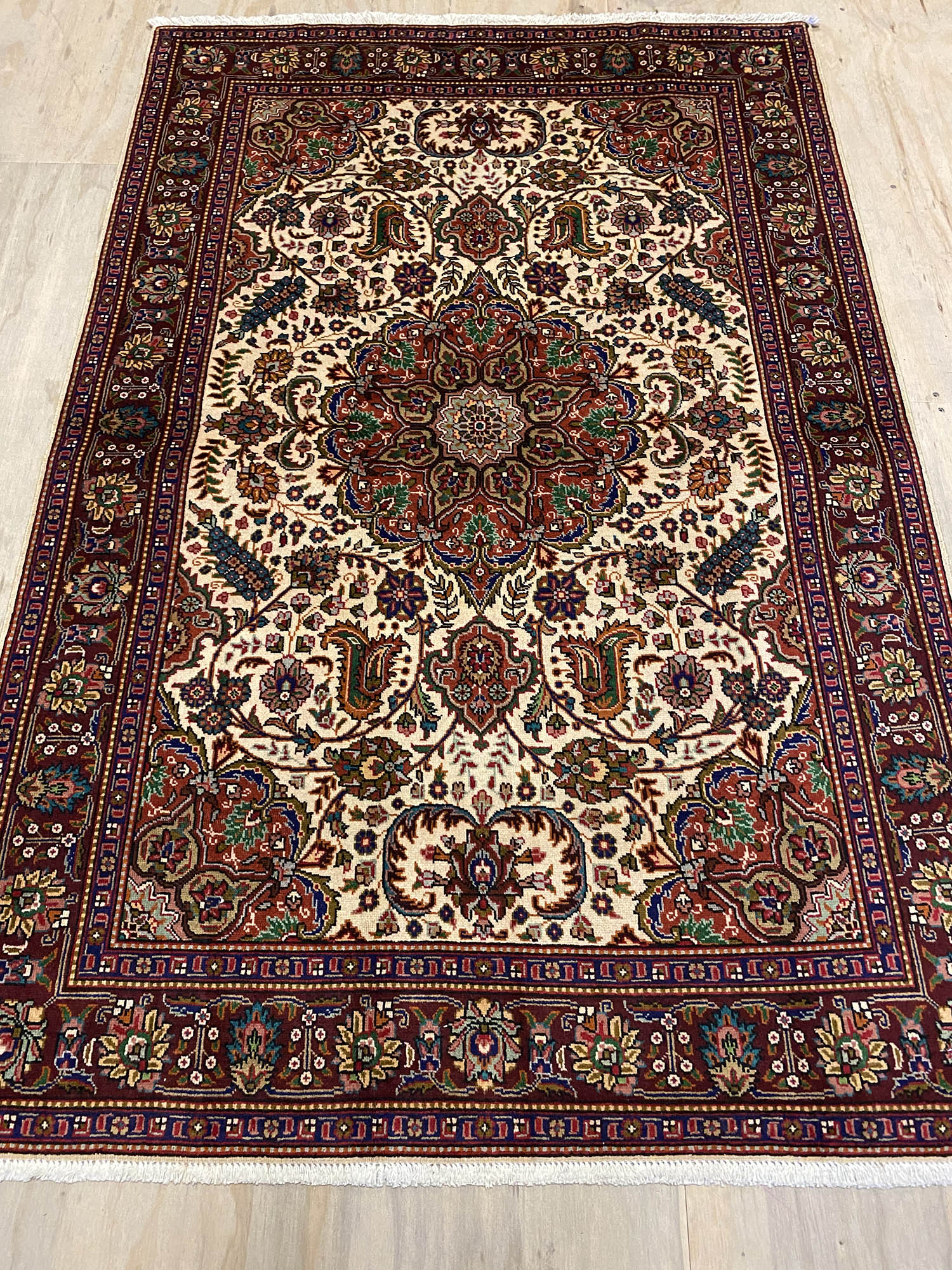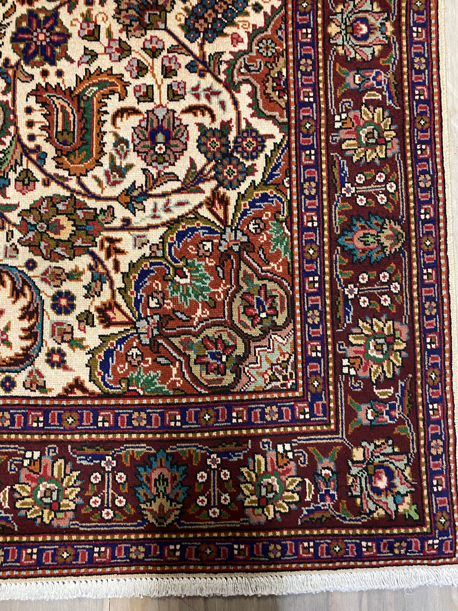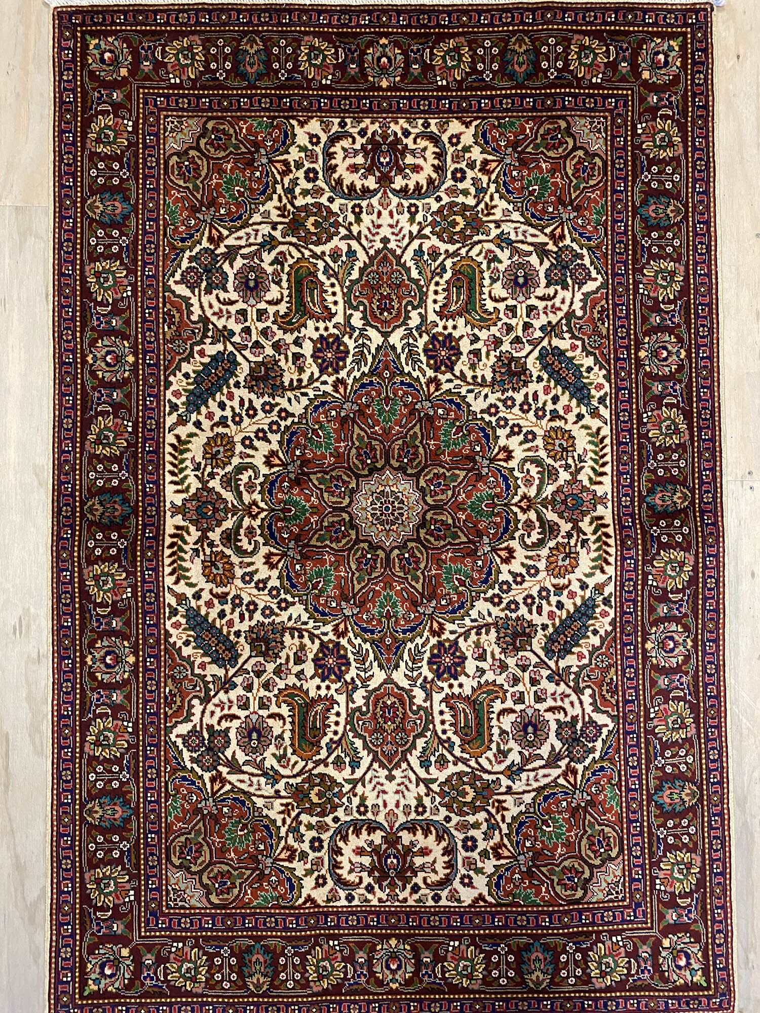 – Origin: Discover the charm of this vintage Persian Tabriz Rug with a rare and traditional floral design, woven in North West Persia, Azerbaijan Province.